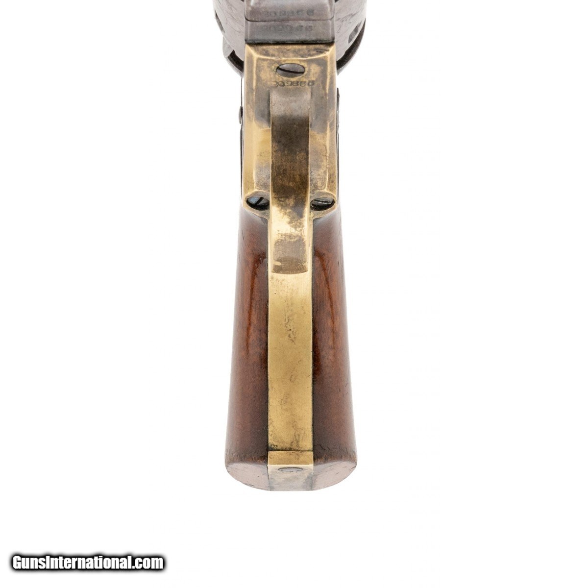 SN: 209866. Made in 1862. .31 cal percussion with a 6"" barrel. Civil war era percussion revolver with properly functioning action. Has about 80% blue on the barrel with case colors on the lever. The frame has mostly a silvery patina with traces of colors. The cylinder scene has most of the scene visible. The grips are very good with some edge wear. Consignment