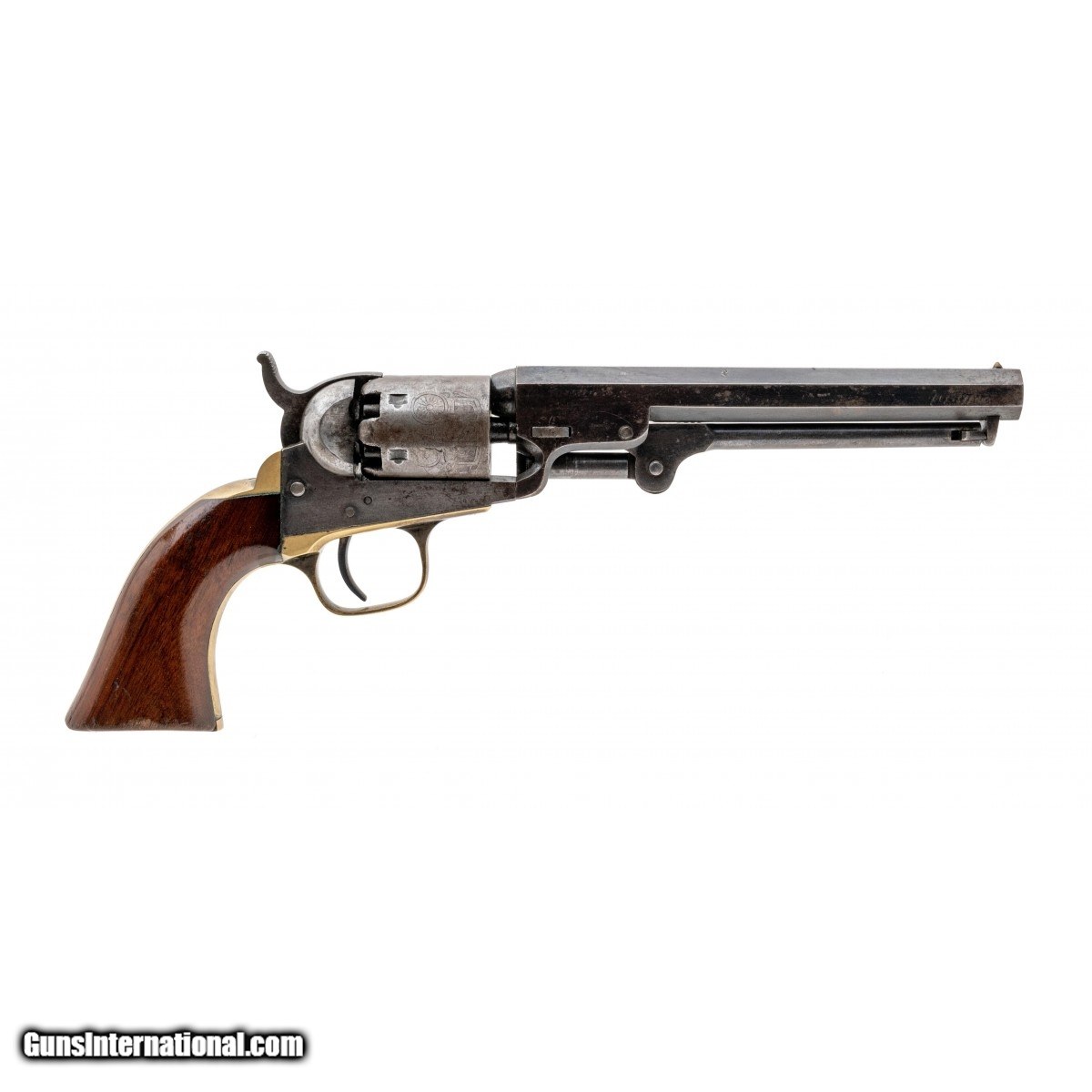Description: " SN: 209866. Made in 1862. .31 cal percussion with a 6"" barrel. Civil war era percussion revolver with properly functioning action. Has about 80% blue on the barrel with case colors on the lever. The frame has mostly a silvery patina with traces of colors. The cylinder scene has most of the scene visible. The grips are very good with some edge wear. Consignment SOLD Antique: Yes |