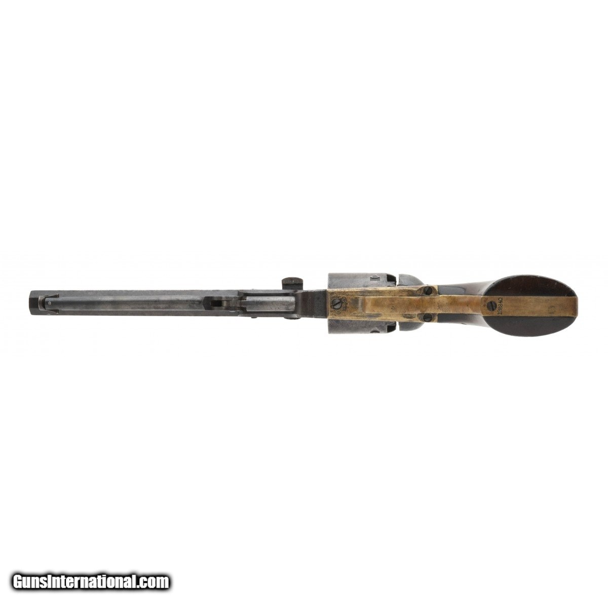 Description: "Serial number 132840. Made in 1863. 36 caliber with a 7 ½" barrel. Very sharp gun with some of the original blue remaining in protected areas. Cylinder scene is partially visible. Grips are very good and have had a coat of varnish added. SOLD Antique: Yes |