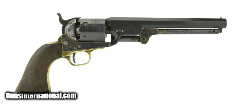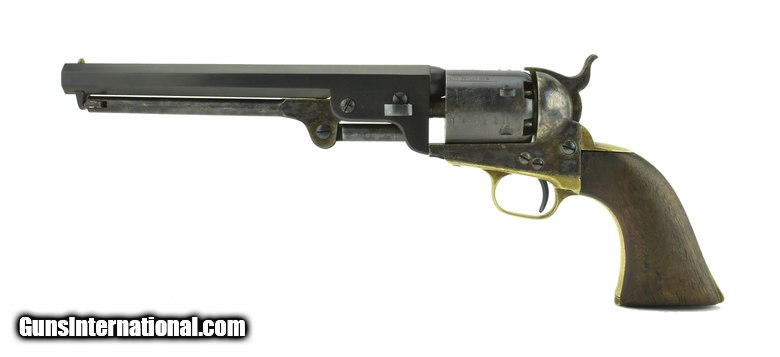 Description: " Colt 1851 Navy .36 Caliber revolver. This is a U.S Navy, marked U.S on frame and ""A"" sub-inspected on Brass parts. This revolver was put together by Stokes Kirk Co of Philadelphia after the Civil war from surplus parts. (same type of post war operation as Francis Bannerman in New York.) This gun is serial #6 and so marked on the frame, backstrap, trigger guard and cylinder and barrel. Frame and loading lever have 98-99% of their case colors. Cylinder has original blue. The barrels were not available to Stokes Kirk and were made after the war. This is a U.S. Navy 1851 Colt with excellent colors and blue except barrel as noted above. SOLD Antique: Yes |