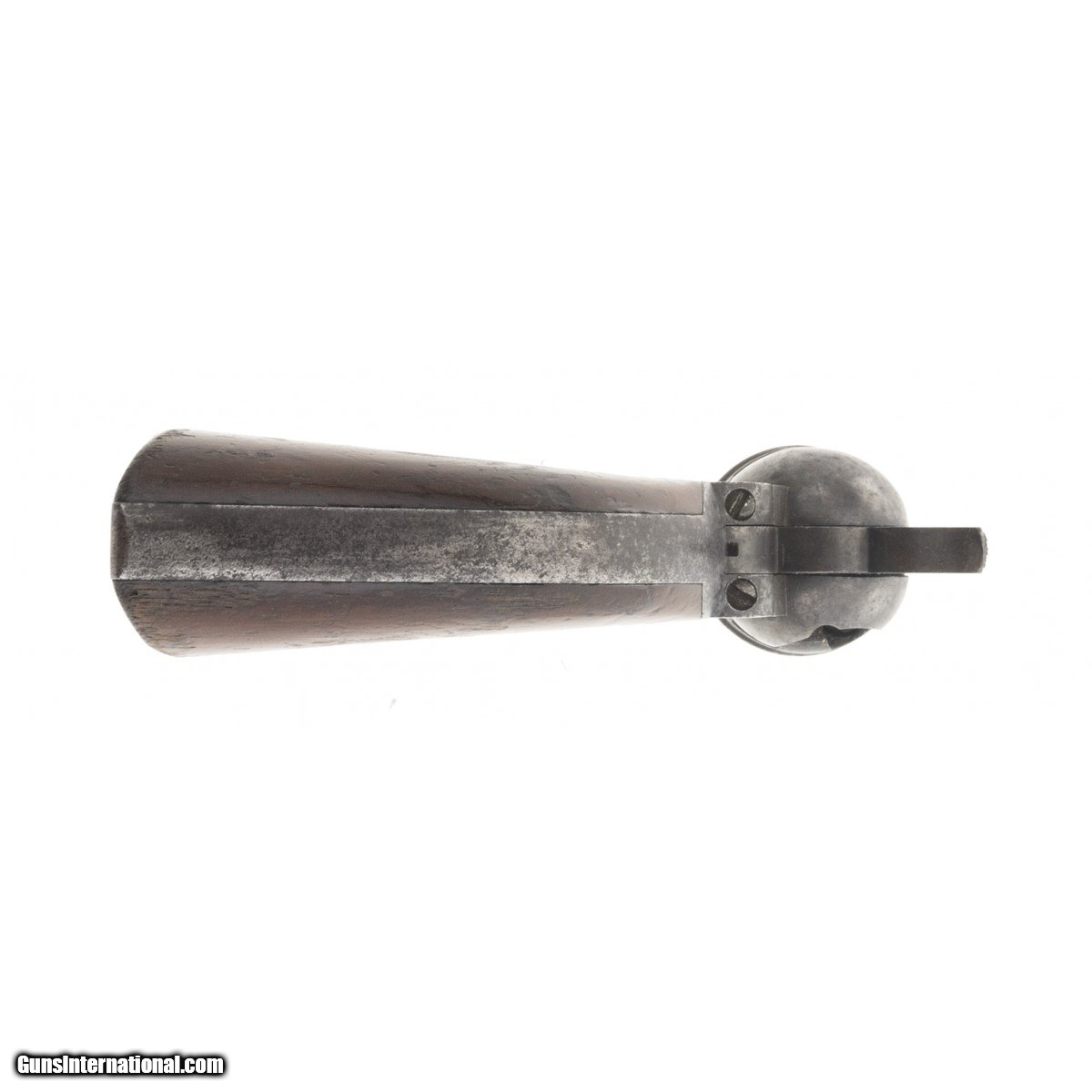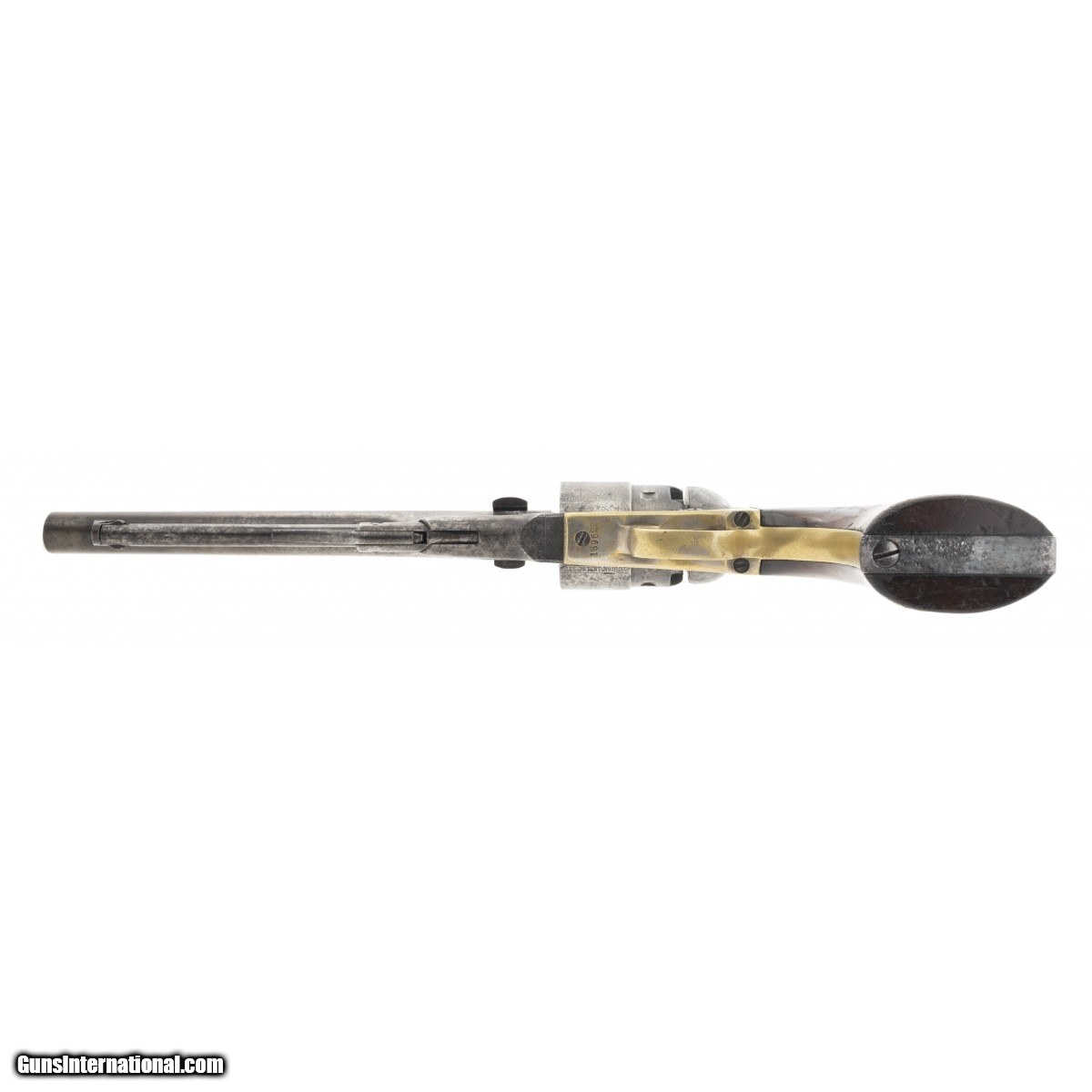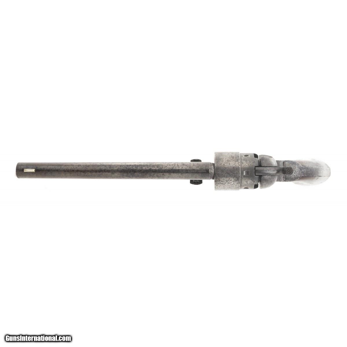 Description: "Made in 1870. 44 caliber with an 8" barrel. Metal has a smooth gray patina . Nice sharp gun with a very fine cylinder scene. Gun is all matching. Grips are original with most of the varnish. Action works perfectly. SOLD Antique: Yes |