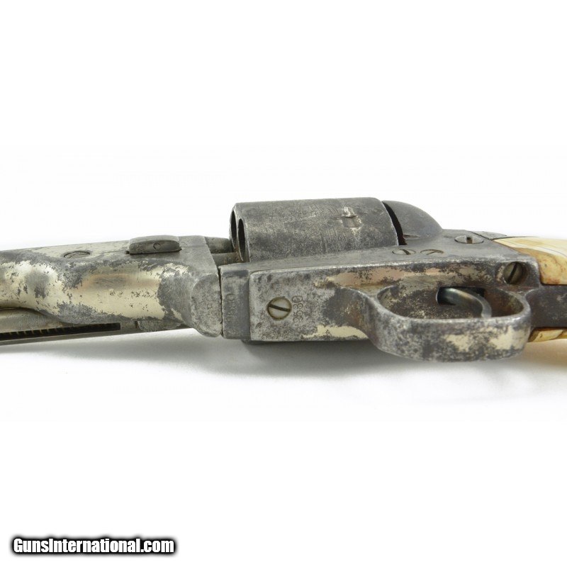 Description: "Colt 1871-72 Open Top revolver. Open Top with excellent old grips. This gun has a great old west feel to it. Traces of nickel remain on the metal. Excellent old grips. Barrel has expertly been lengthened the last 3". Great looking and has a good “Old West" feel! SOLD Antique: Yes |