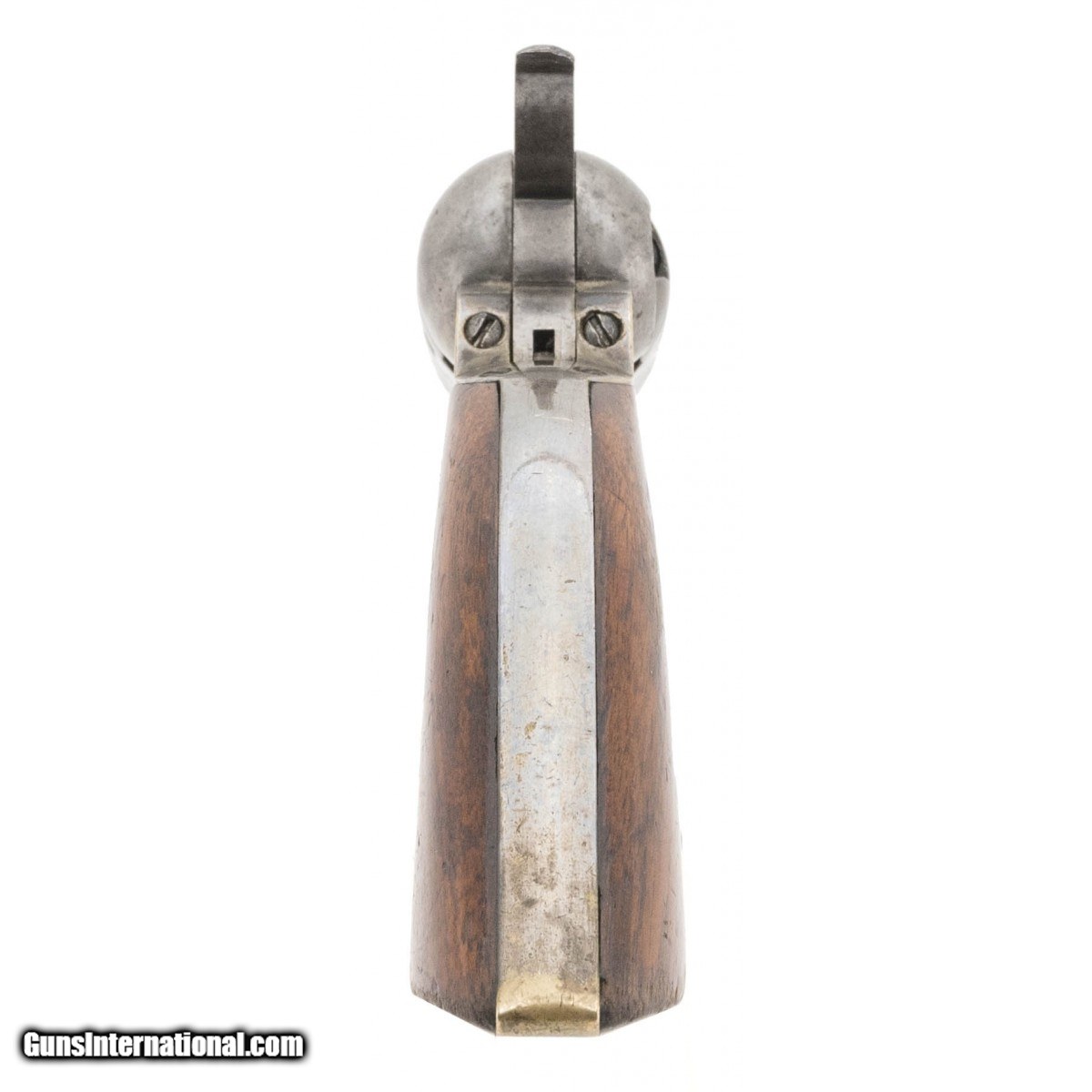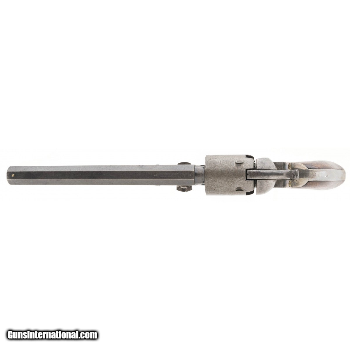 Description: "Serial number 13250. Made in 1850. 31 caliber with a 6" barrel. Very fine gun with 50% of the original blue. Very strong cylinder scene is present. Grips retain most of their varnish. SOLD |