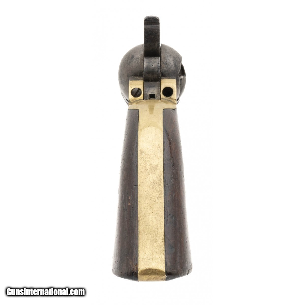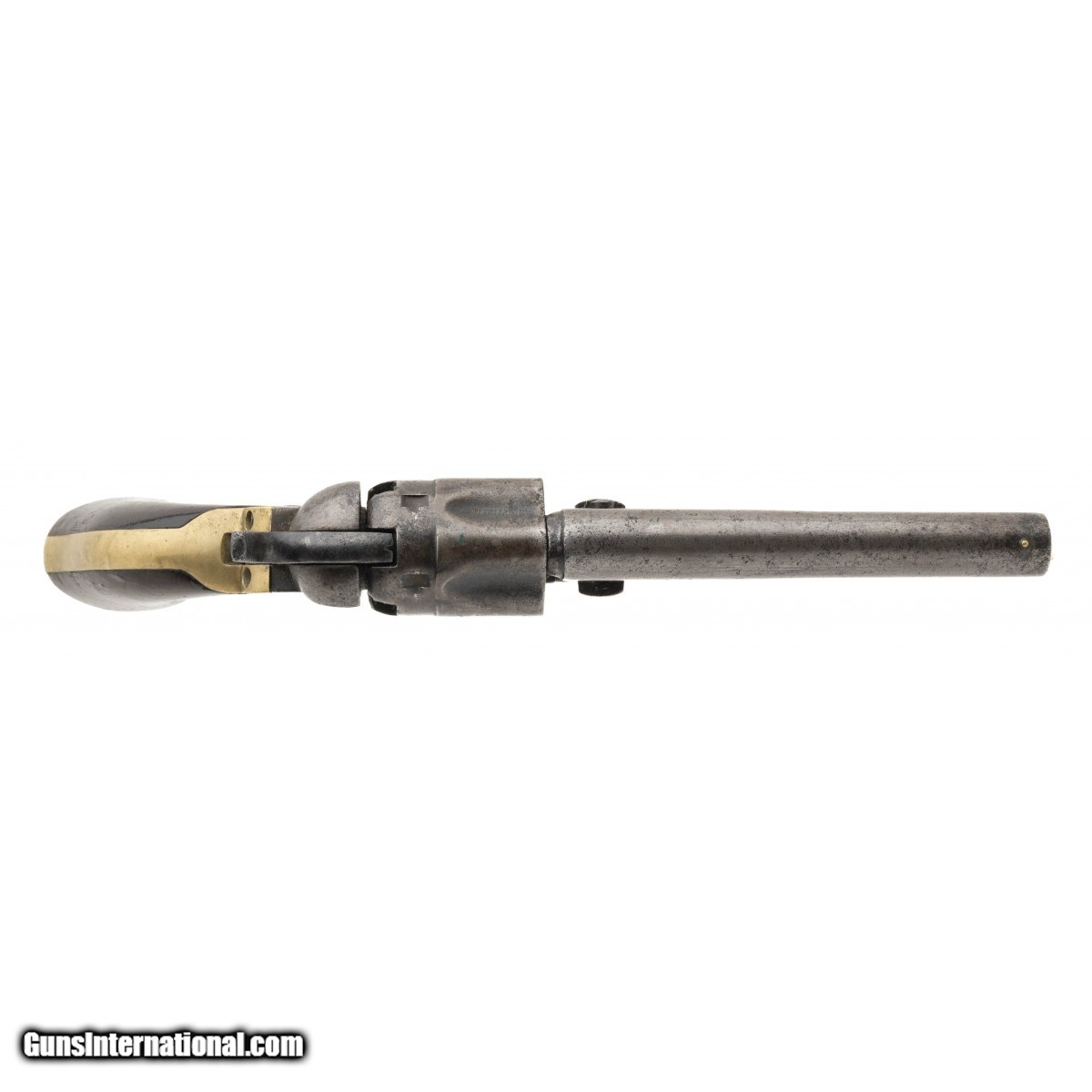 Description: " Serial No. 17942, made in 1863, .36 caliber , 4.5"" round barrel. Metal is smooth grey patina with scattered oxidation. Serial numbers are matching, factory markings are faint. Grips have light surface scratches, a chip is visible left side at the toe. Action indexes correctly with a tight lock up. Consignment SOLD Antique: Yes |