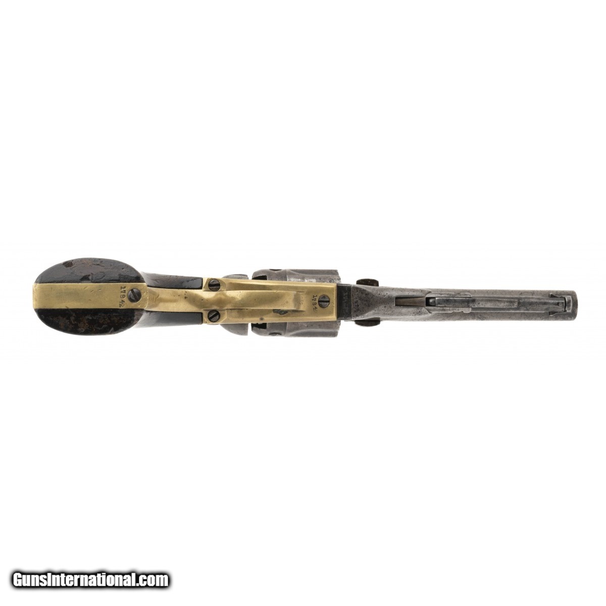 Serial No. 17942, made in 1863, .36 caliber , 4.5"" round barrel. Metal is smooth grey patina with scattered oxidation. Serial numbers are matching, factory markings are faint. Grips have light surface scratches, a chip is visible left side at the toe. Action indexes correctly with a tight lock up. Consignment