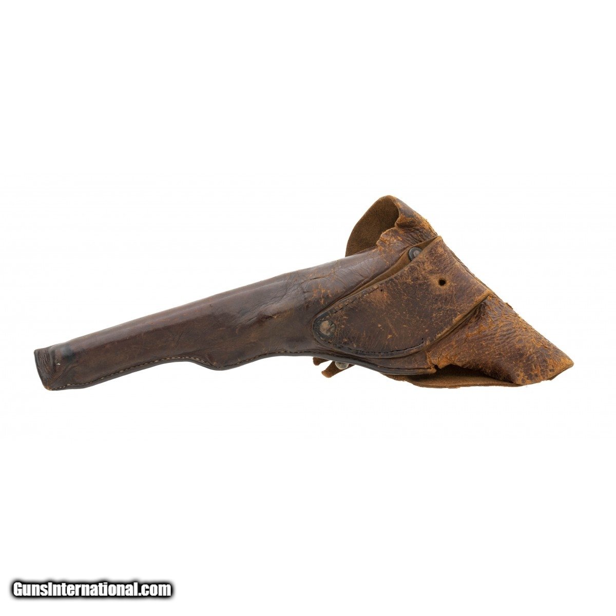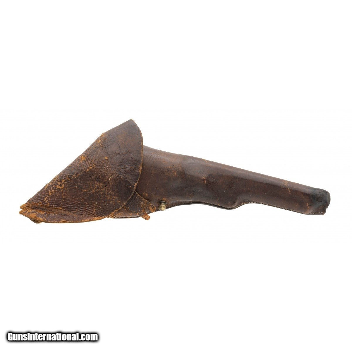 Description: "Serial number 17396. 44 caliber with a 7 ½" barrel. This gun has a gray patina with pitting on the metal. The Barrel has a mismatched barrel and the butt strapped is unnumbered. Grips have been checkered. This gun comes with a form fitting flap leather holster. This gun comes with a letter from Antique Road Show Appraiser Rafael Eledge where he makes a convincing argument that this gun was a Confederate used and altered gun and the holster is confederate made. This gun was found in North Carolina and formerly in the Hank Williams Jr Collection! SOLD Antique: Yes |