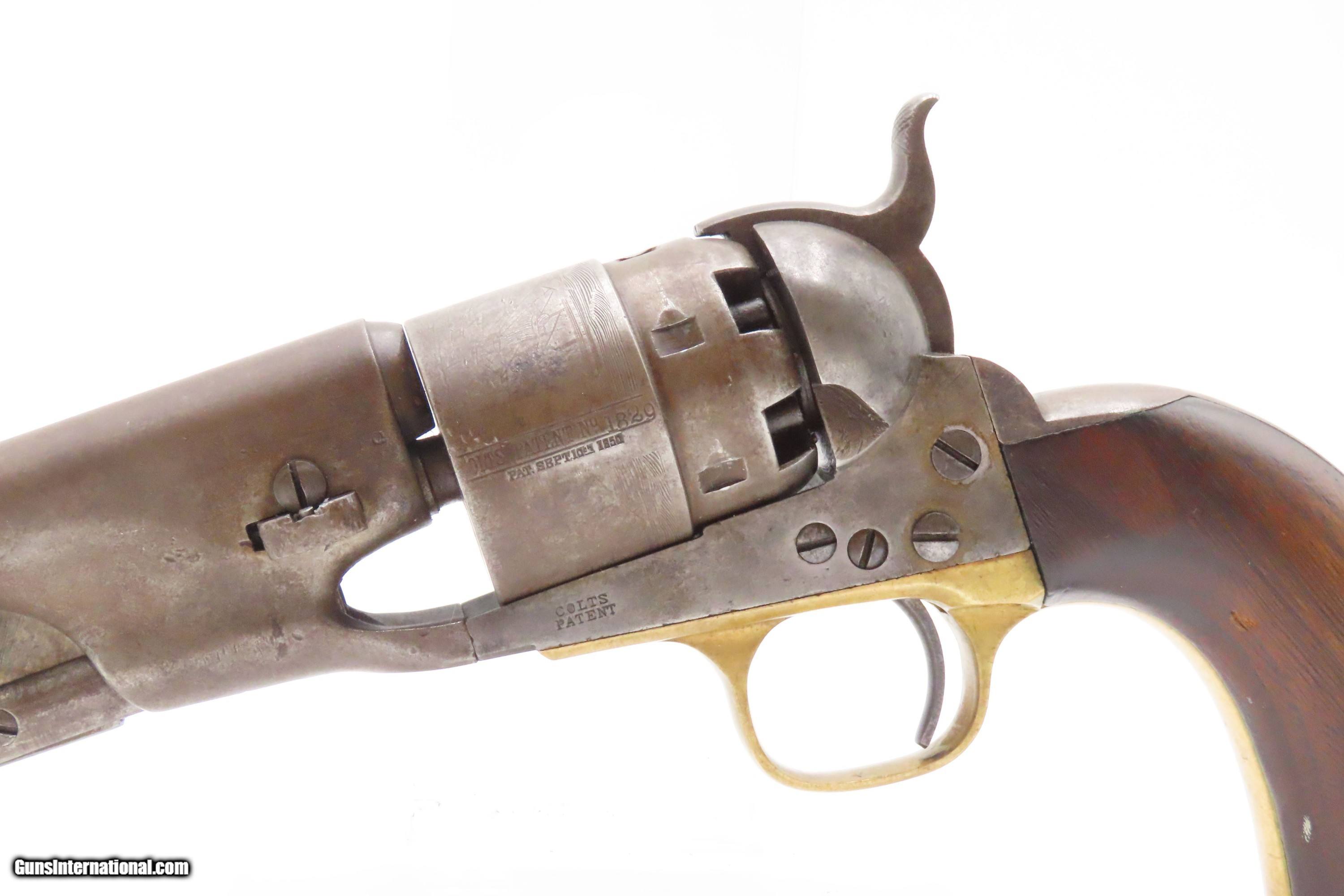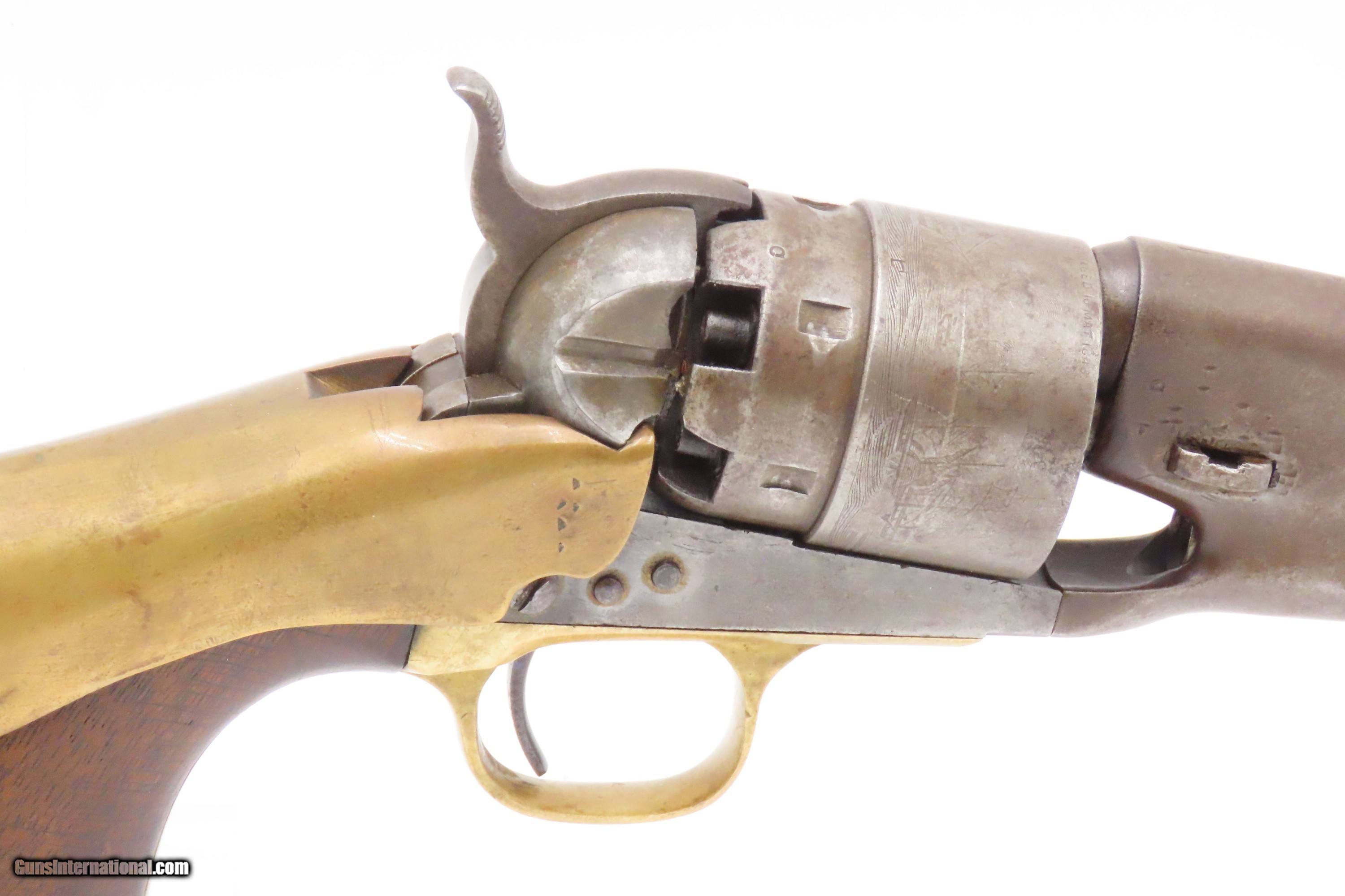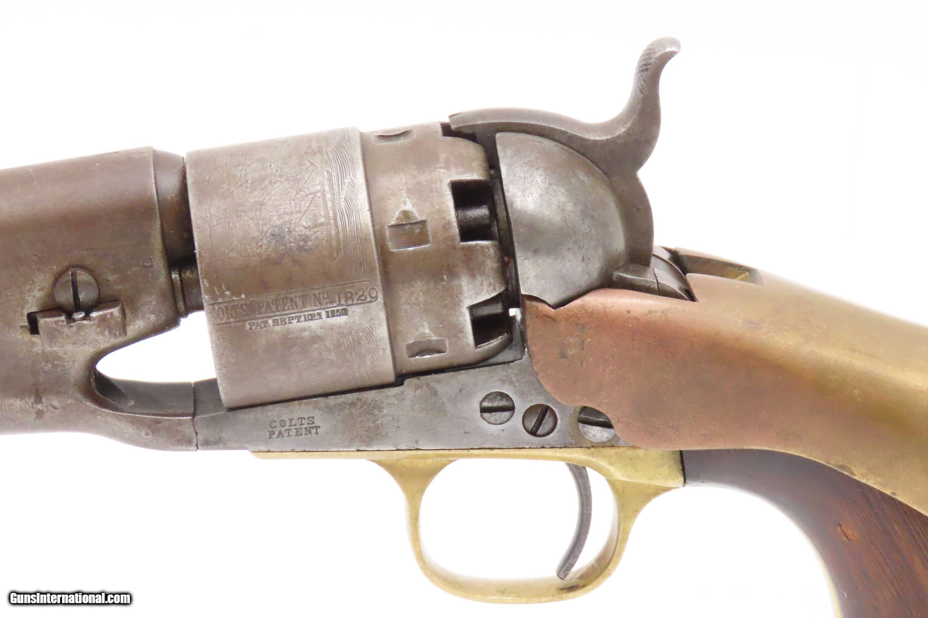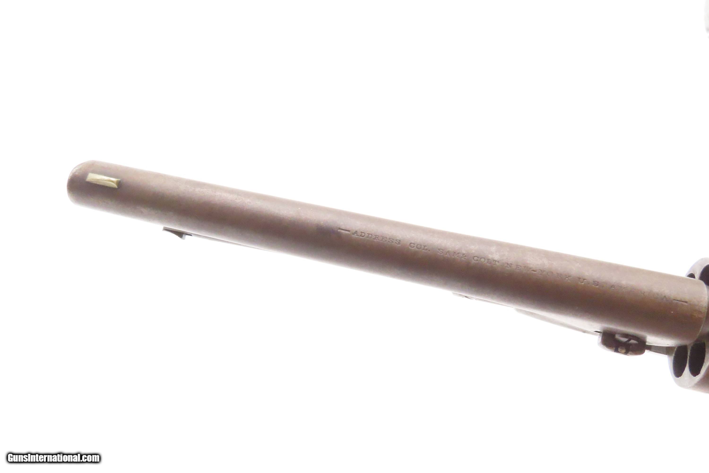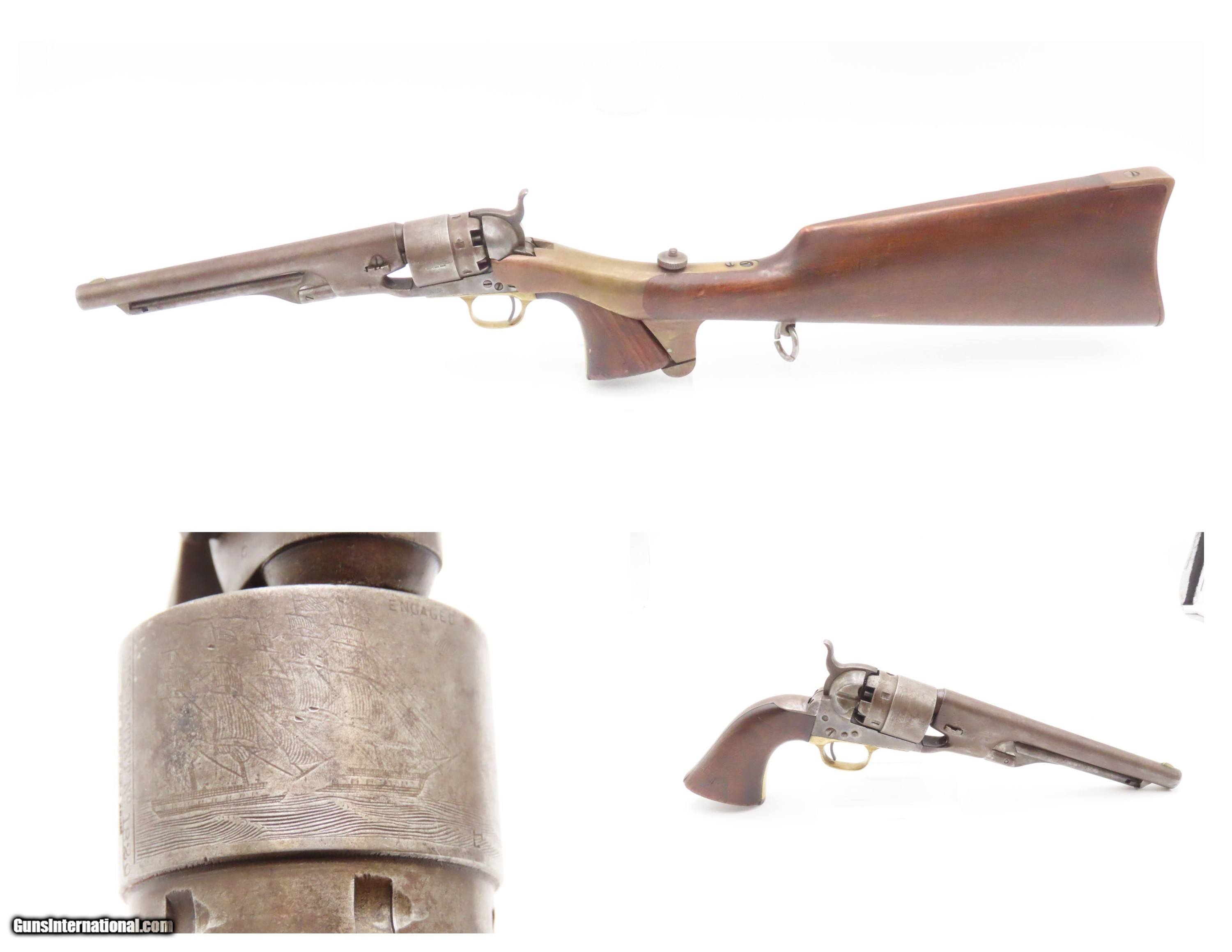 Description: 1862 Early-CIVIL WAR/WILD WEST Antique U.S. COLT M1860 .44 Percussion ARMY Revolver Used Past the Civil War into the WILD WEST Here we present an antique Colt U.S. Model 1860 Army Percussion Revolver, made in 1862 in Hartford, Connecticut. The 1860 Army was the single most used pistol of the American Civil War. Over 200,000 were made from 1860 to 1873, and 156,000 of those were made by the end of the war in 1865. These were excellent sidearms for officers, cavalry, infantry, and artillery troops. The 1860 Army was Samuel Colt’s finest achievement to that point, having finally developed a large caliber revolver that weighed about 2 lbs. 10 oz. to the famous Dragoon’s 4 lbs. 4 oz., and was adopted en masse by the U.S. government with huge contracts. The revolver was well balanced in hand and had a long enough barrel to be effective when utilized as a carbine with the attachable shoulder stock. This revolver represented unprecedented firepower from a handgun in the field at the time and was especially suited to Cavalry. The Confederacy, lacking in manufacturing capabilities though they were, managed to produce limited numbers of copies, and battlefield pickups of the 1860 Army were highly coveted. The 1860 Army went on to serve the U.S. military even after the Civil War and into the Indian Wars, until production of Colt’s 1873 Single Action Army created new waves in the revolver market, and again achieved great success in the military and commercial markets. The overall condition is very good. Patina throughout. Still visible Battle of Campeche cylinder scene. Inspector markings throughout, including a cartouche on the left side of the grip. The action is excellent. The bore is dim with strong rifling. The grip has initials carved into the bottom as well as a place whittled out for a lanyard. Numbers match throughout on the gun. The detachable stock remains solid throughout. Own the original! This is a legitimate antique and not a reproduction. Barrel is 8 inches. Caliber: .44 Percussion Overall condition as seen in photos. Very Fast. Very Safe. FREE SHIPPING WORLDWIDE. Delivered directly to your door by express mail! Guaranteed AUTHENTIC & Includes CERTIFICATE OF AUTHENTICITY. ancestryguns $3200 #247335 SOLD Antique: Yes |