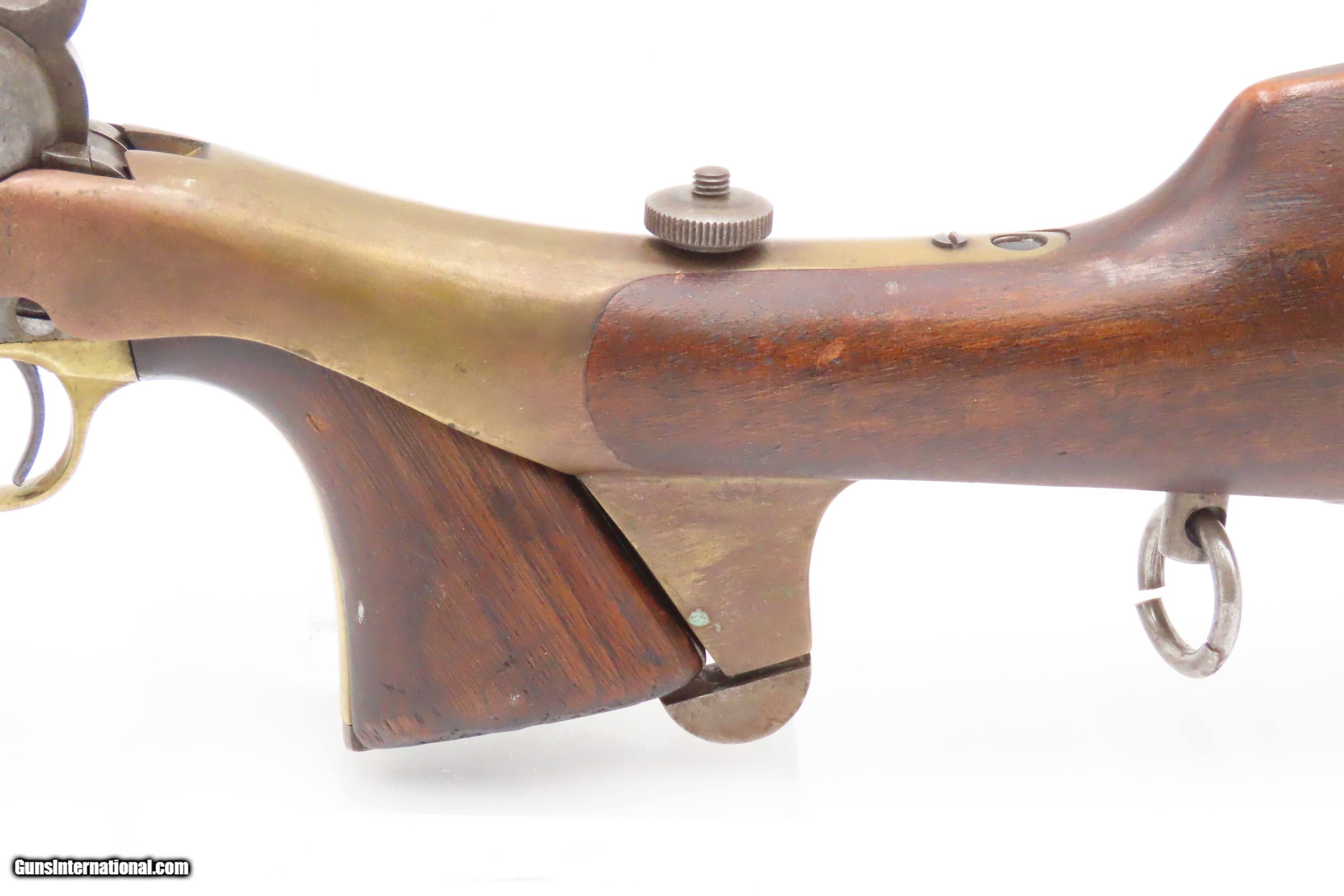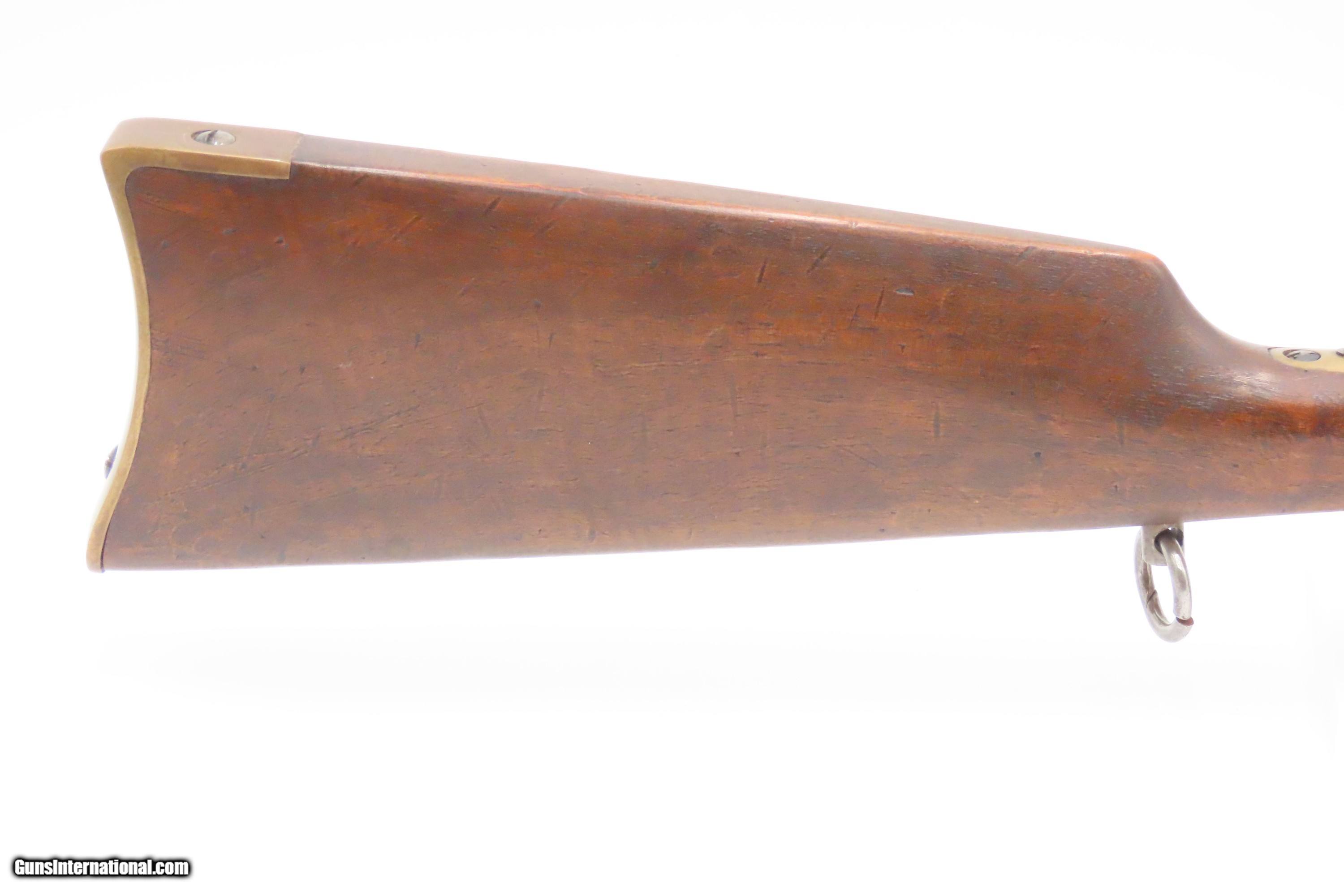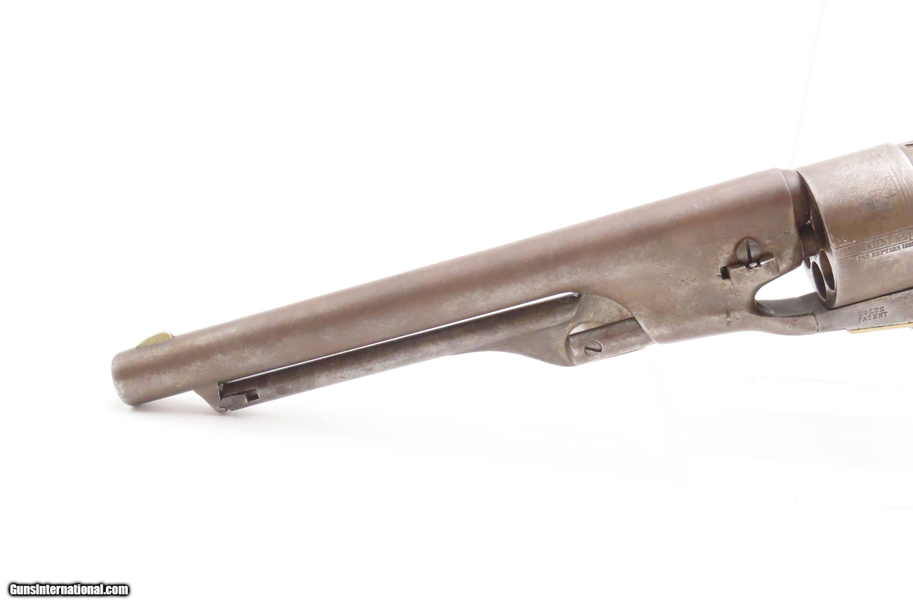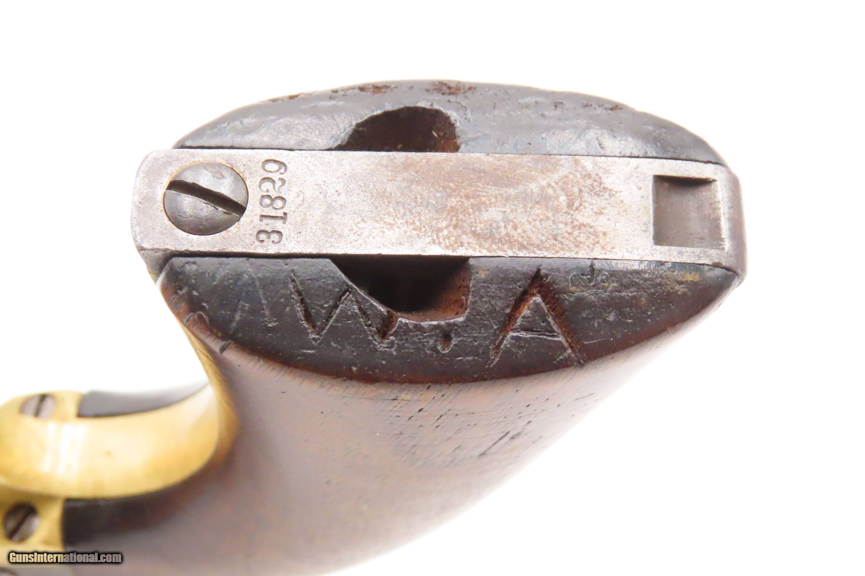 Description: 1862 Early-CIVIL WAR/WILD WEST Antique U.S. COLT M1860 .44 Percussion ARMY Revolver Used Past the Civil War into the WILD WEST Here we present an antique Colt U.S. Model 1860 Army Percussion Revolver, made in 1862 in Hartford, Connecticut. The 1860 Army was the single most used pistol of the American Civil War. Over 200,000 were made from 1860 to 1873, and 156,000 of those were made by the end of the war in 1865. These were excellent sidearms for officers, cavalry, infantry, and artillery troops. The 1860 Army was Samuel Colt’s finest achievement to that point, having finally developed a large caliber revolver that weighed about 2 lbs. 10 oz. to the famous Dragoon’s 4 lbs. 4 oz., and was adopted en masse by the U.S. government with huge contracts. The revolver was well balanced in hand and had a long enough barrel to be effective when utilized as a carbine with the attachable shoulder stock. This revolver represented unprecedented firepower from a handgun in the field at the time and was especially suited to Cavalry. The Confederacy, lacking in manufacturing capabilities though they were, managed to produce limited numbers of copies, and battlefield pickups of the 1860 Army were highly coveted. The 1860 Army went on to serve the U.S. military even after the Civil War and into the Indian Wars, until production of Colt’s 1873 Single Action Army created new waves in the revolver market, and again achieved great success in the military and commercial markets. The overall condition is very good. Patina throughout. Still visible Battle of Campeche cylinder scene. Inspector markings throughout, including a cartouche on the left side of the grip. The action is excellent. The bore is dim with strong rifling. The grip has initials carved into the bottom as well as a place whittled out for a lanyard. Numbers match throughout on the gun. The detachable stock remains solid throughout. Own the original! This is a legitimate antique and not a reproduction. Barrel is 8 inches. Caliber: .44 Percussion Overall condition as seen in photos. Very Fast. Very Safe. FREE SHIPPING WORLDWIDE. Delivered directly to your door by express mail! Guaranteed AUTHENTIC & Includes CERTIFICATE OF AUTHENTICITY. ancestryguns $3200 #247335 SOLD Antique: Yes |
