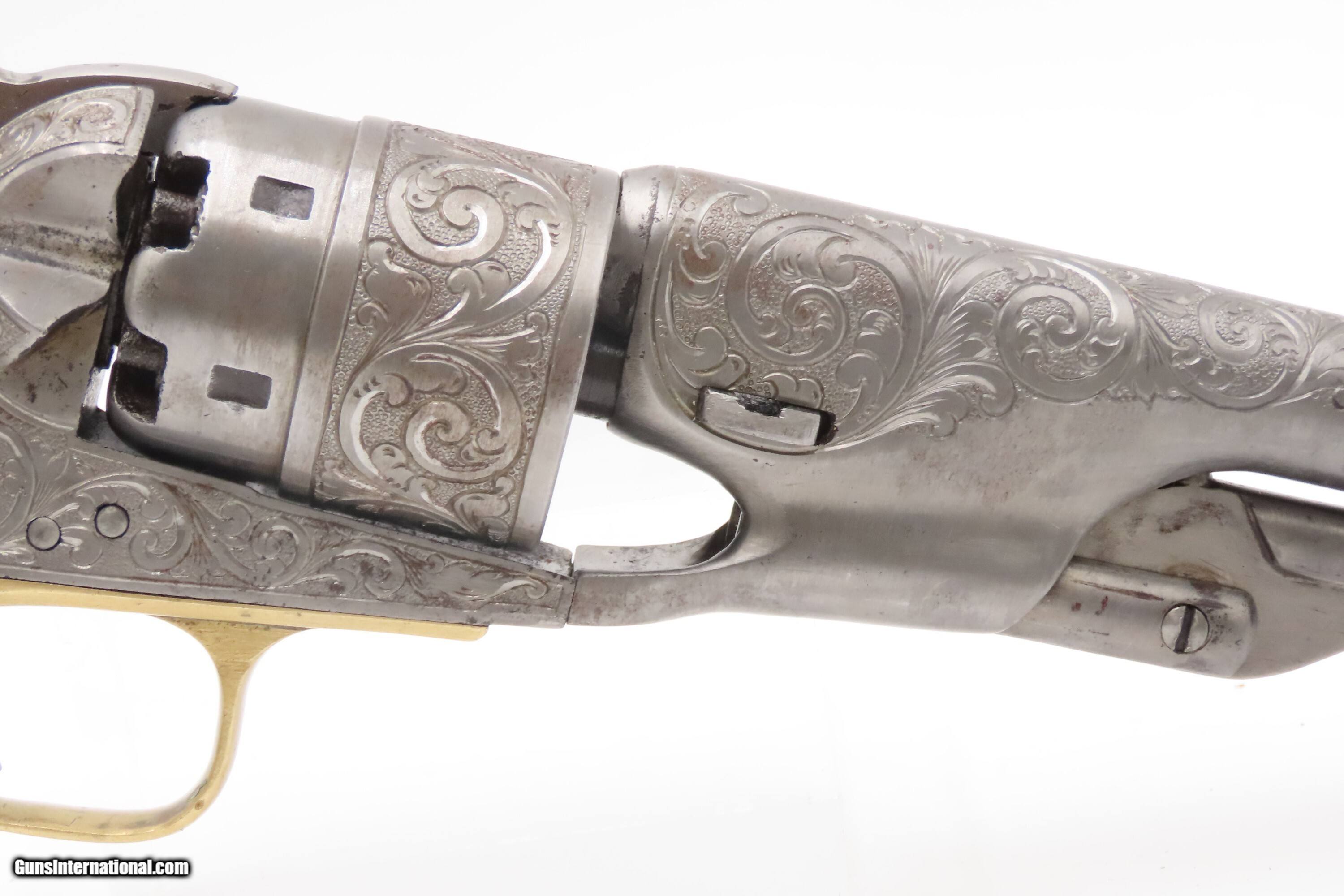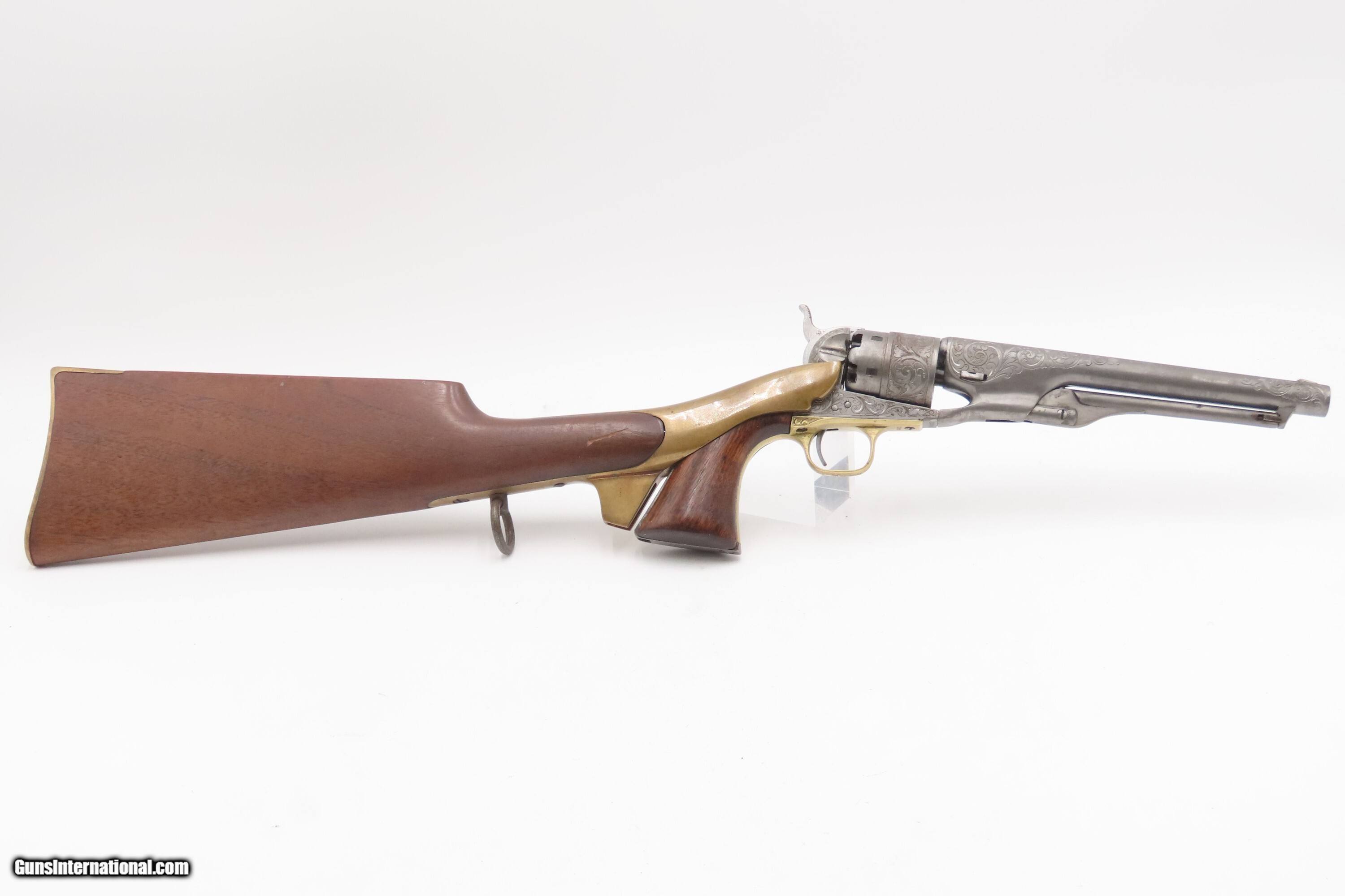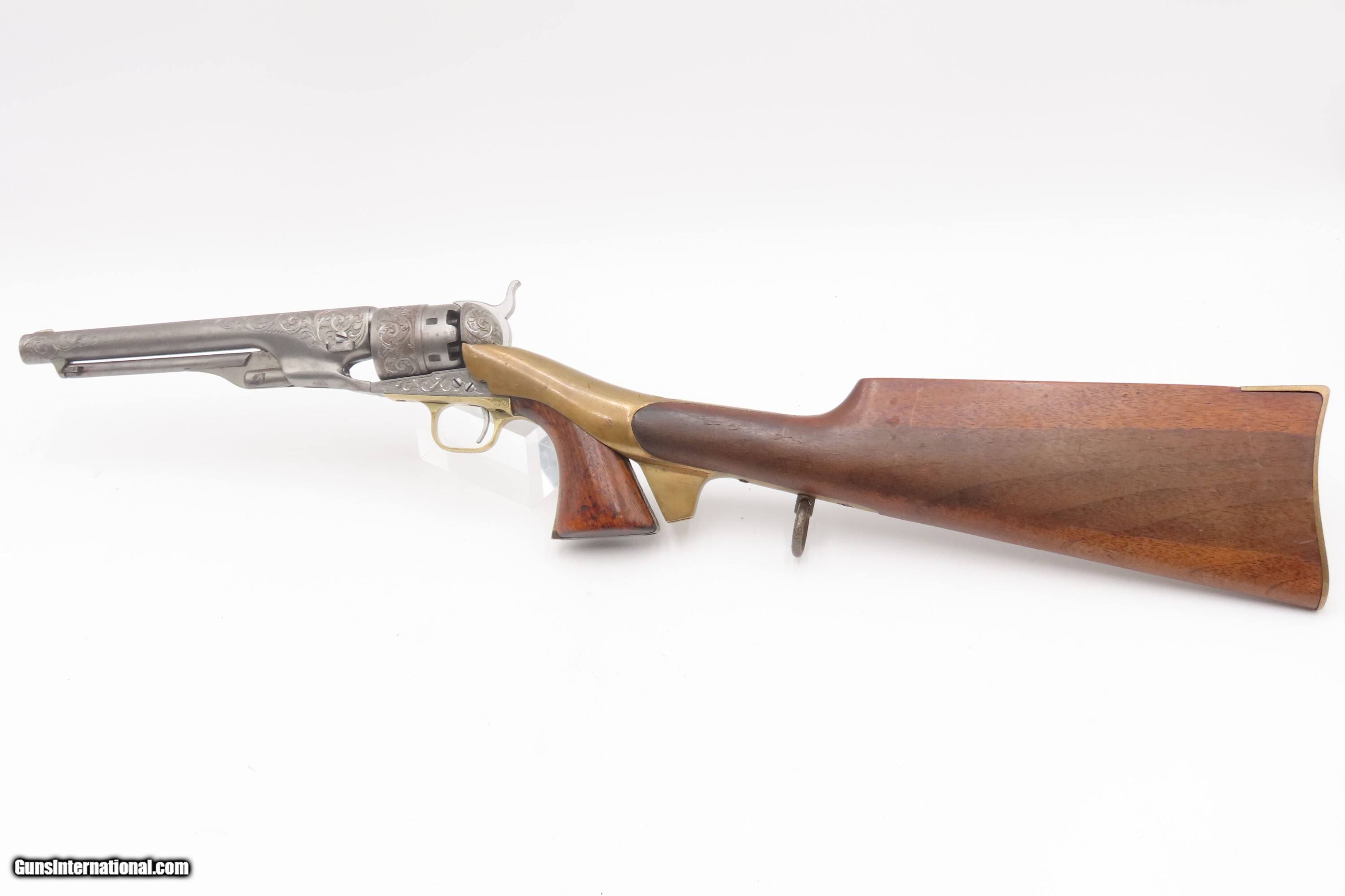 1863 mfr. ENGRAVED Antique CIVIL WAR Antique COLT M1860 .44 Percussion ARMY ENGRAVER RACHEL WELLS w/ SHOULDER STOCK