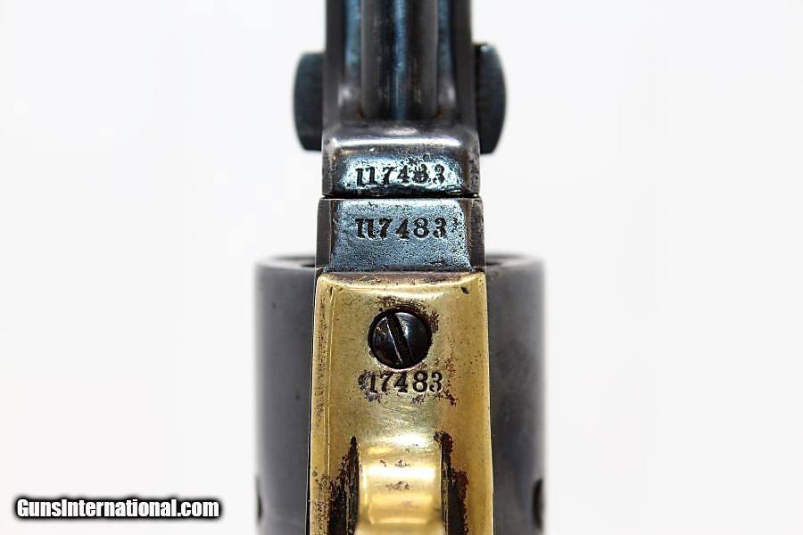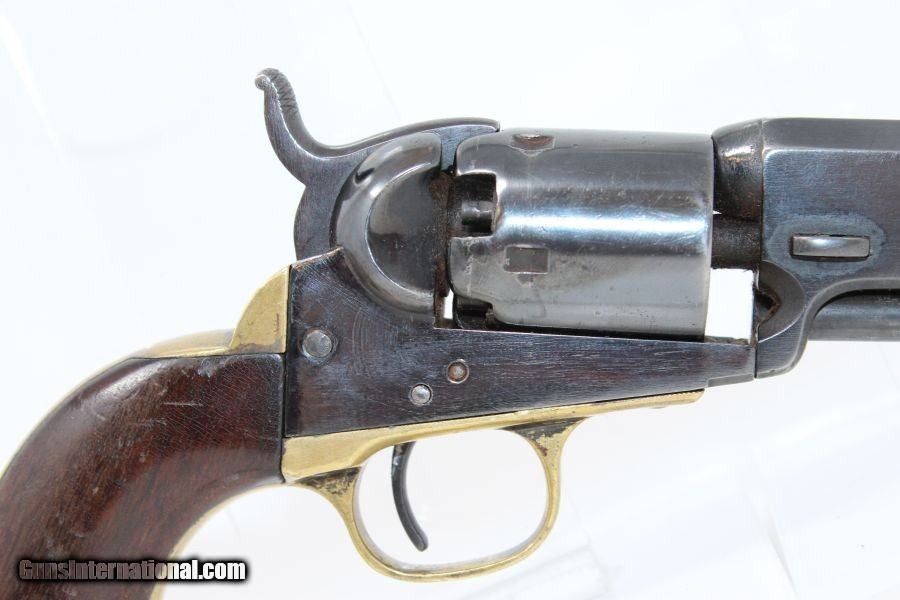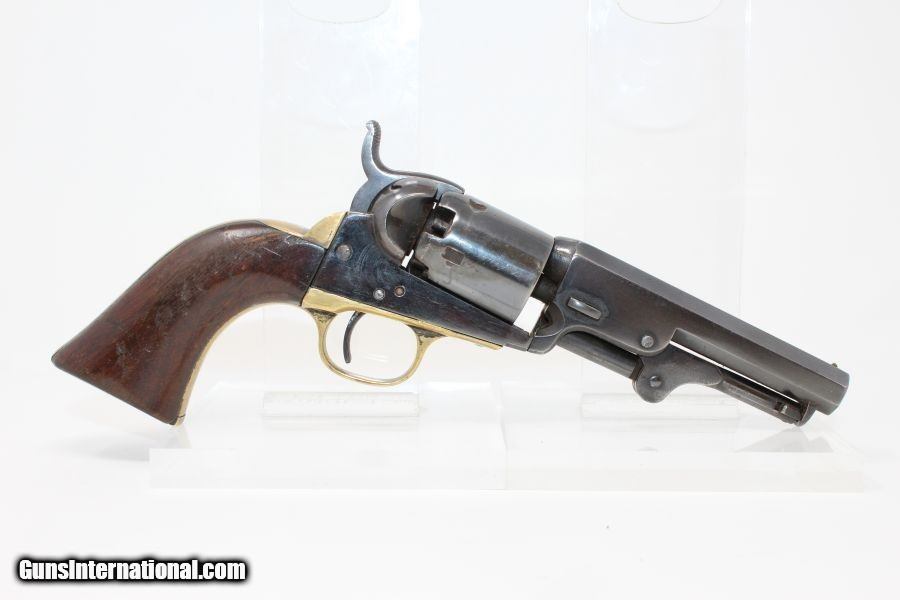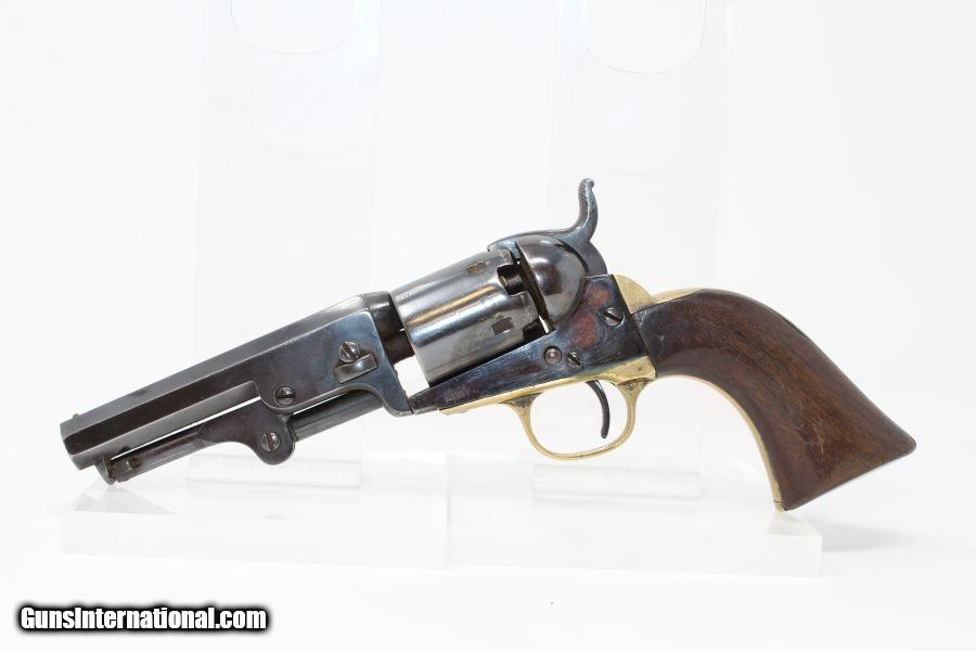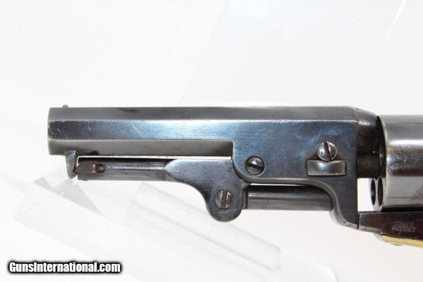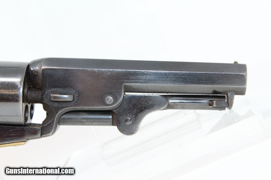 Description: ANTEBELLUM Antique COLT 1849 POCKET .31 Revolver Made In 1856 in Hartford, Connecticut Here we present an antique percussion Colt 1849 Pocket Revolver, made in 1856 in Hartford, Connecticut. Over 280,000 of these were produced by Colt’s factory at Hartford by the end of the American Civil War in 1865. These were very popular and saw a lot of use on the battlefield, on the home front and in the West. These were some of the smallest, handiest pocket revolvers of the time. The overall condition is good. The steel has been re-blued and is virtually complete. The markings are legible. The numbers match. The walnut grip is in good shape. The bore is clean with strong rifling. The action function is intermittent. This would have made a great little carry piece prior to, during and after the war. Own the original! This is a legitimate antique and not a reproduction. Barrel is 4 inch octagon. Caliber: .31 percussion Overall condition as seen in photos. Very Fast. Very Safe. FREE SHIPPING WORLDWIDE. Delivered directly to your door by express mail! Guaranteed AUTHENTIC & Includes CERTIFICATE OF AUTHENTICITY. ancestryguns $975 #8219 SOLD Antique: Yes |