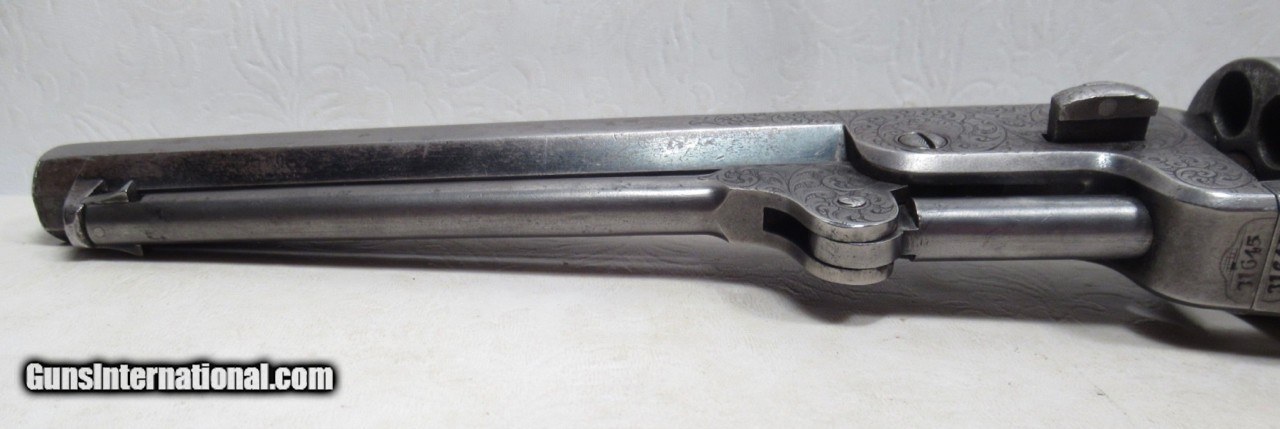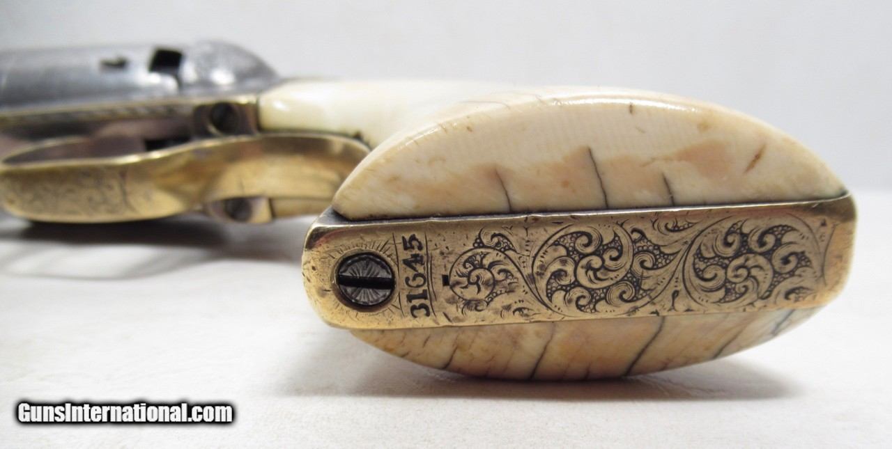 Description: Colt Model 1851 Navy Revolver; Serial No. 31645; .36 Caliber; Made 1853 – Gold Rush Era; Deluxe Factory Engraved (even the Screw Heads); Fantastic Ivory Grips that are Numbered to Gun; 100% Cylinder Scene; All Matching Numbers Including Wedge; Gun Retains Original Factory Blue on Bottom Three Barrel Flats; Some Original Silver Present on Trigger Guard; Perfect Action and Excellent Bore; Great 172 Year-Old Gold Rush Era Colt Navy Revolver; See All Photos for Condition; No Texts; Call (254)541-5765 or Email Only; PERSONAL PROPERTY of Harold Wieser; NOTICE: We Do Not Do Any Consignments - All Items Listed are Owned by Us - NO SALES to New Jersey or New York City - Antiques Only to Massachusetts and California; NOTE: All Modern Firearms Must Go to FFL Dealer who will Accept From Individual with Texas Driver License; Price: $8,975 + $45 S&H Via USPS Priority Mail; Payment Address: Harold Wieser - 1466 U.S. Hwy 77 - Rosebud, TX 76570; SEND PAYMENTS VIA USPS PRIORITY MAIL; BEWARE of SCAMS!!! - DO NOT SEND MONEY or CORRESPONDENTS ELECTRONICALLY UNLESS YOU HAVE SPOKEN to HAROLD WIESER FIRST! (254)541-5765 SOLD Antique: Yes Manufacturer: Colt Model: 1851 Navy Serial Number: 31645 |