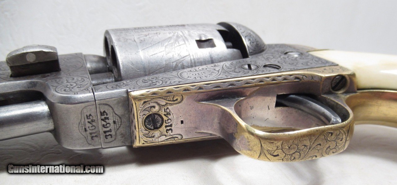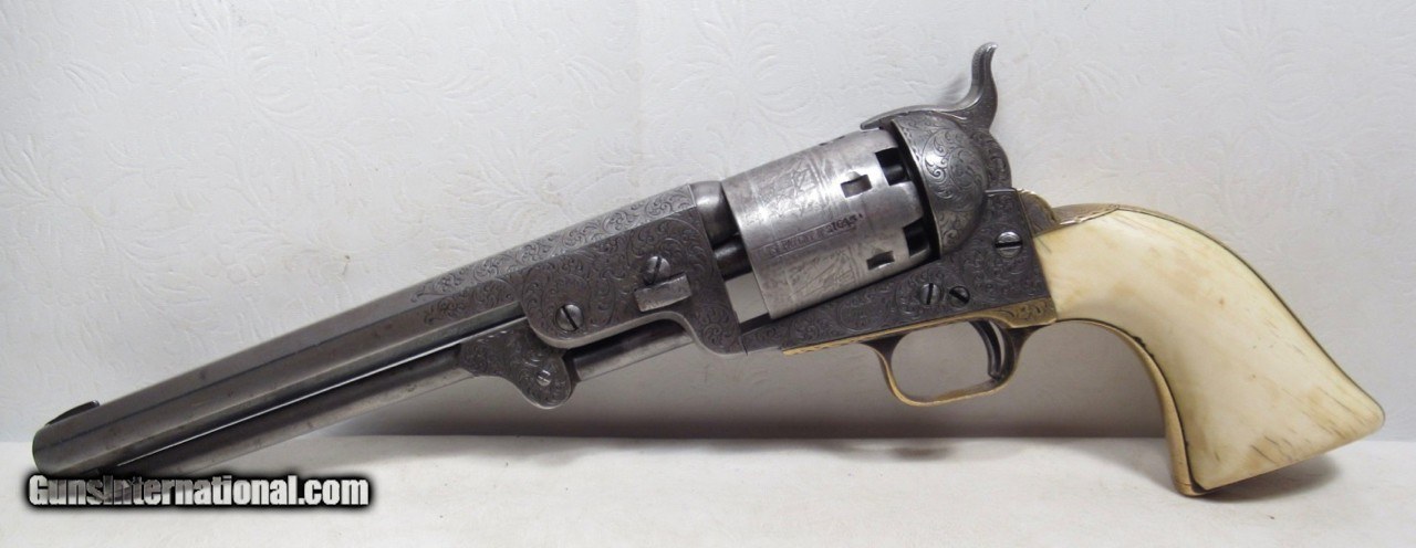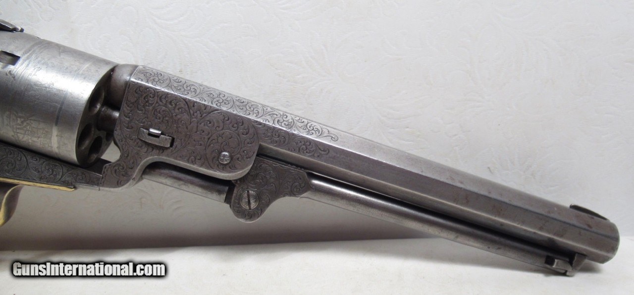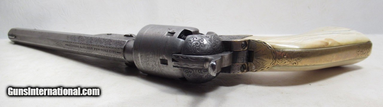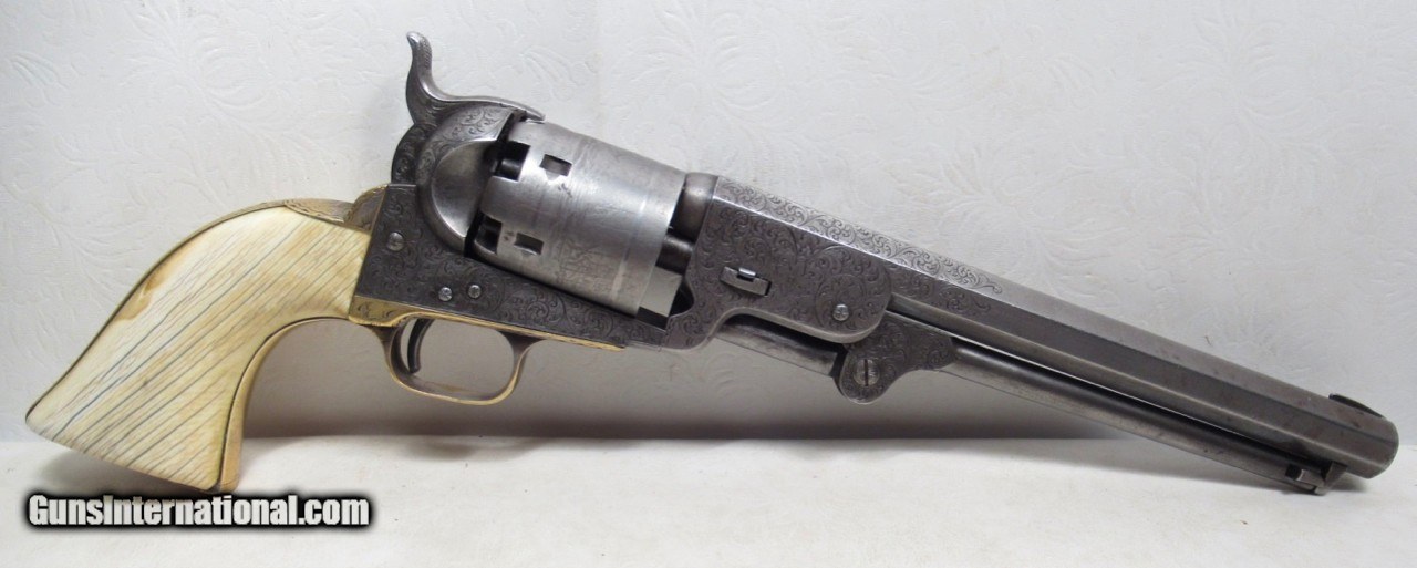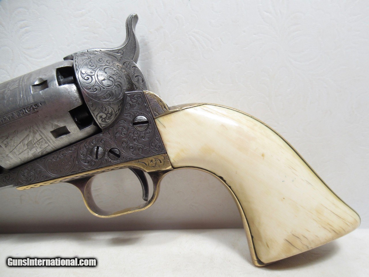 BEAUTIFUL ANTIQUE COLT 1851 NAVY REVOLVER from COLLECTING TEXAS – DELUXE FACTORY ENGRAVED – IVORY GRIPS - MADE 1853