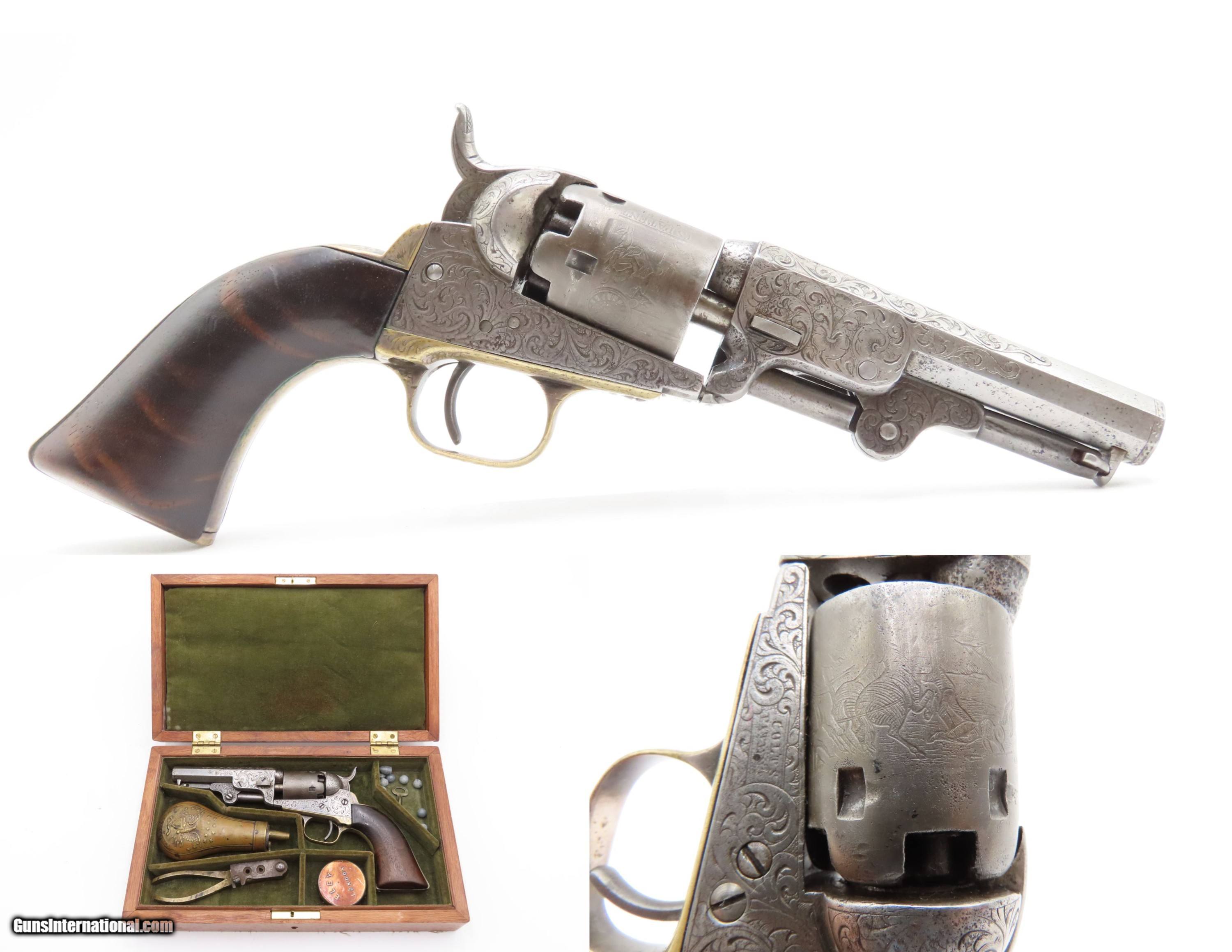 CASED 1852 GUSTAVE YOUNG Era Factory Engraved COLT M1849 Revolver CIVIL WAR Antique .31 PERCUSSION Pocket Revolver ACCESSORIES