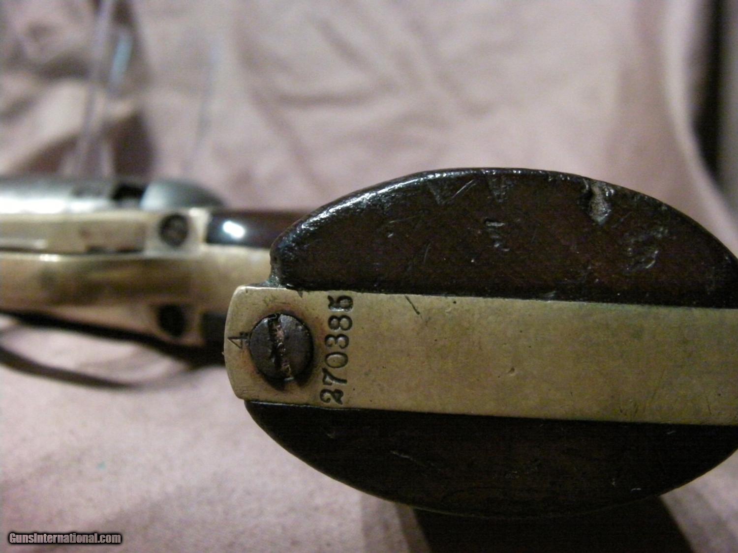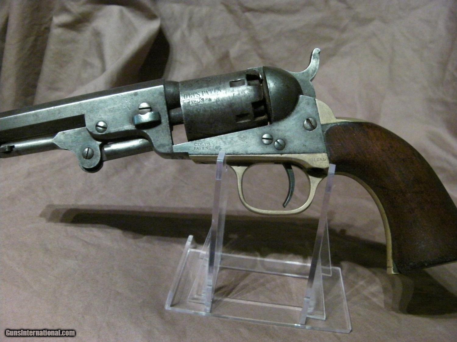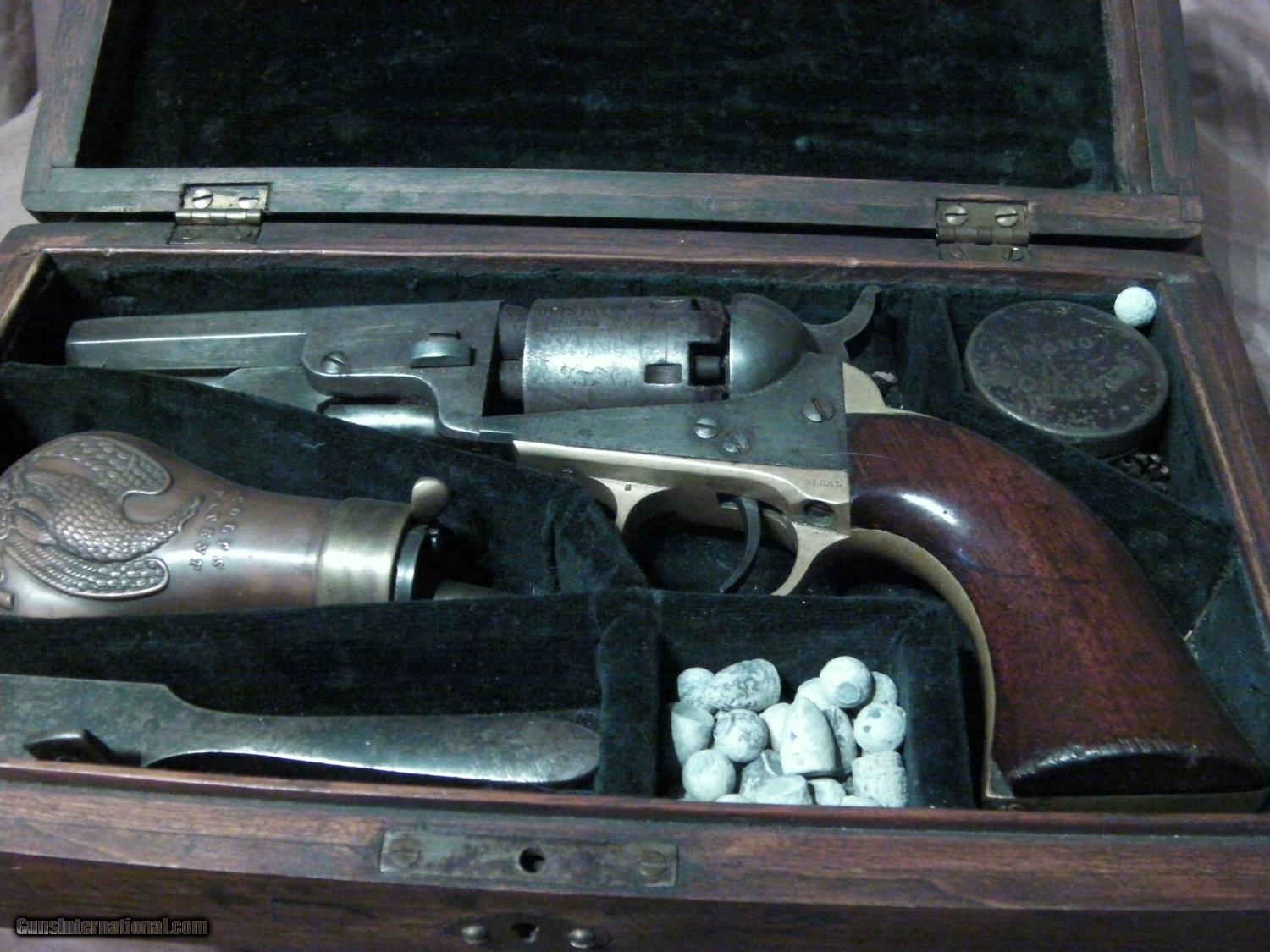 Description: OFFERS CONSIDERED. CASED COLT 1849 POCKET PERCUSSION REVOLVER WITH FLASK & ACCESSORIES PLEASE NOTE: We are not experts in everything we list but try, to the best of our knowledge, to provide useful info. If you can provide any further information that would be useful, please do so. Should you have any questions about a listing please contact us. Have tried to highlight condition as much possible with pics. SEE PICS – but contact should you need further info. If I am correct serial number indicates manufactures date between 1865 & 1866. SOLD Manufacturer: Colt Model: 1849 Pocket Revlover Serial Number: 270385 Caliber Info: .31 |