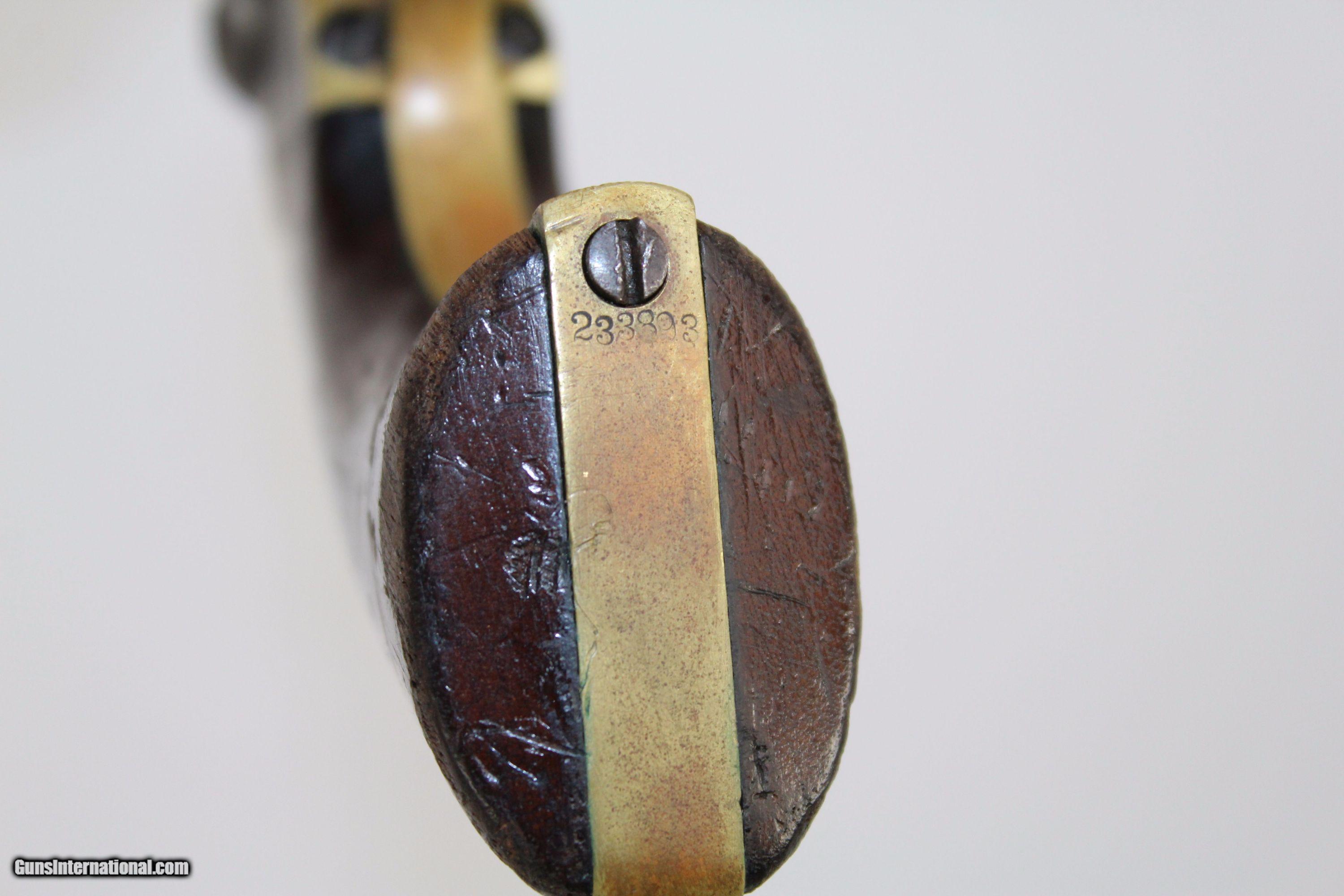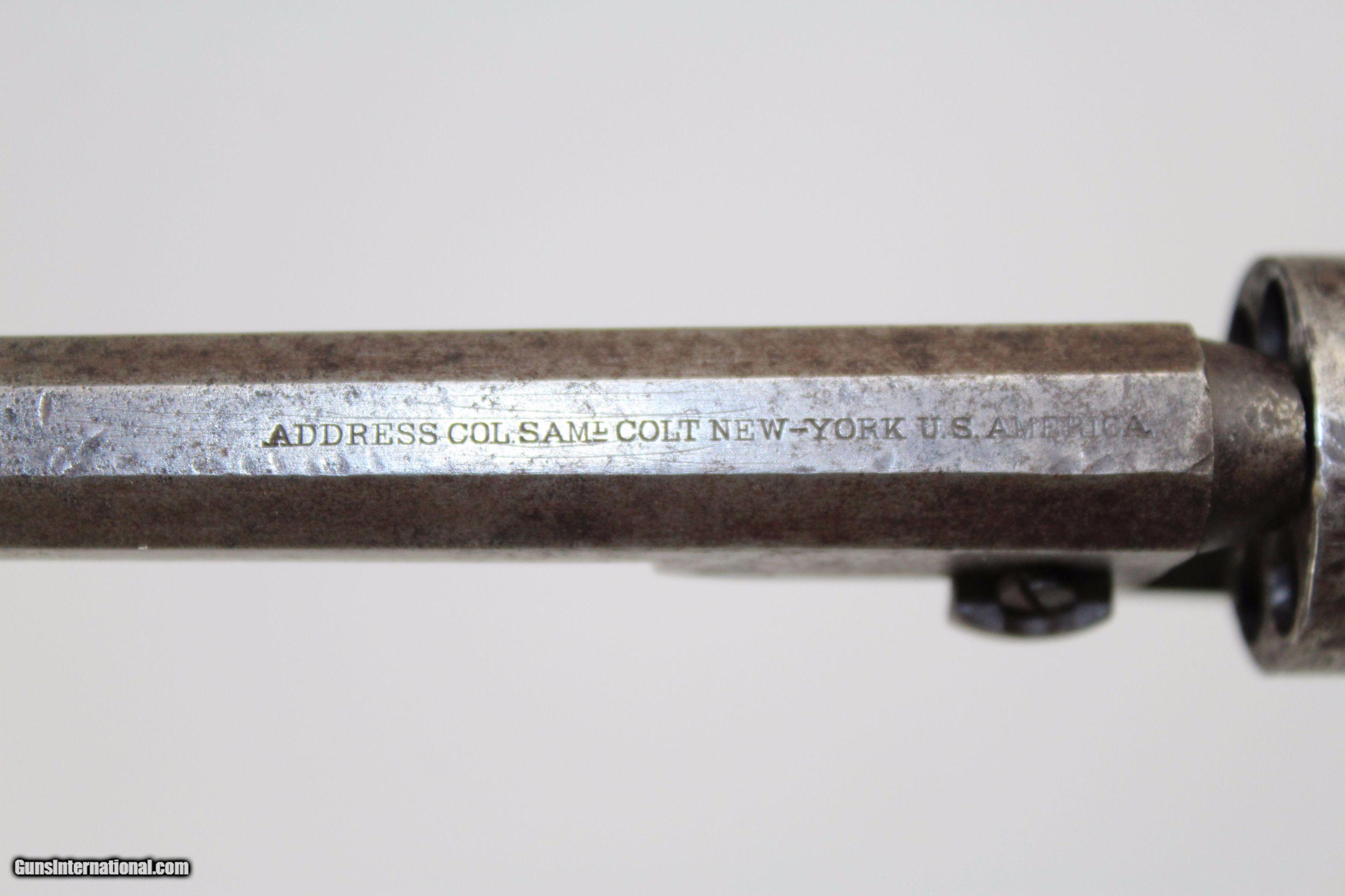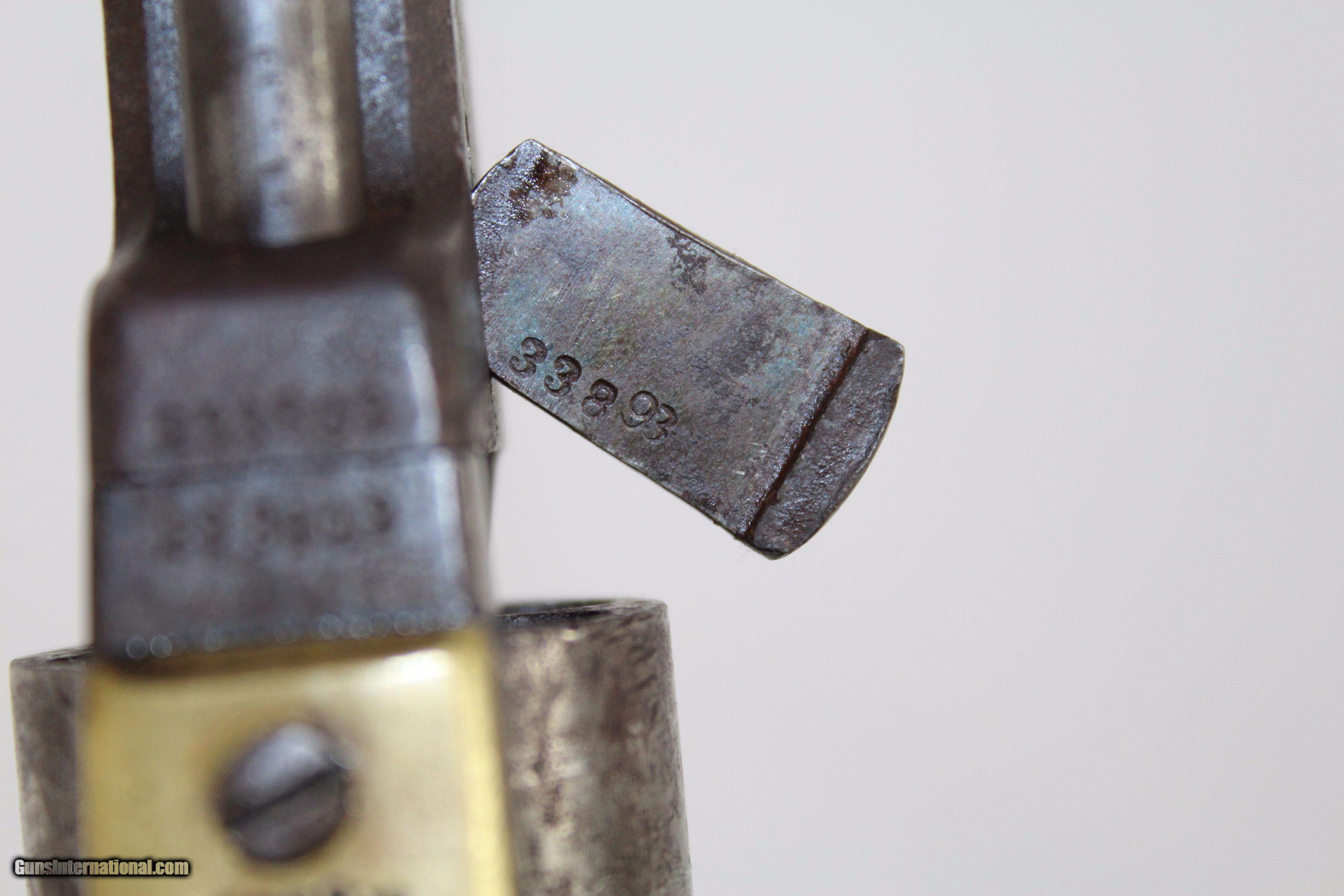 Description: CIVIL WAR Antique COLT 1849 Pocket Revolver Made During the War in 1863 Here we present an antique Colt 1849 Pocket Revolver, made in 1863 in Hartford, Connecticut. Over 280,000 of these were produced by Colt’s factory at Hartford by the end of the American Civil War in 1865. These were very popular and saw a lot of use on the battlefield, on the home front and in the West. These were some of the smallest, handiest pocket revolvers of the time. Though not a primary military arm during the American Civil War, handguns were commonly privately purchased by soldiers for use on the battlefield. Whether legend or fact, it is interesting to note something commonly read about pocket revolvers of the day: that while they could be used for self-defense against the enemy, many soldiers kept them on their person to defend themselves against an unwanted amputation in the primitive field hospitals that were notorious, even in their day. The overall condition is good. The metal surfaces have a dark patina. The markings are clear and legible. The serial numbers match. The grips show a good amount of wear and are solid. The bore is in very good shape. The action is strong. Here is a great example of a Civil War Colt Revolver! Own the original! This is a legitimate antique and not a reproduction. Barrel is 5 inches. Caliber: .31 Percussion Overall condition as seen in photos. Very Fast. Very Safe. FREE SHIPPING WORLDWIDE. Delivered directly to your door by express mail! Guaranteed AUTHENTIC & Includes CERTIFICATE OF AUTHENTICITY. ancestryguns $1200 #5274 SOLD Antique: Yes |