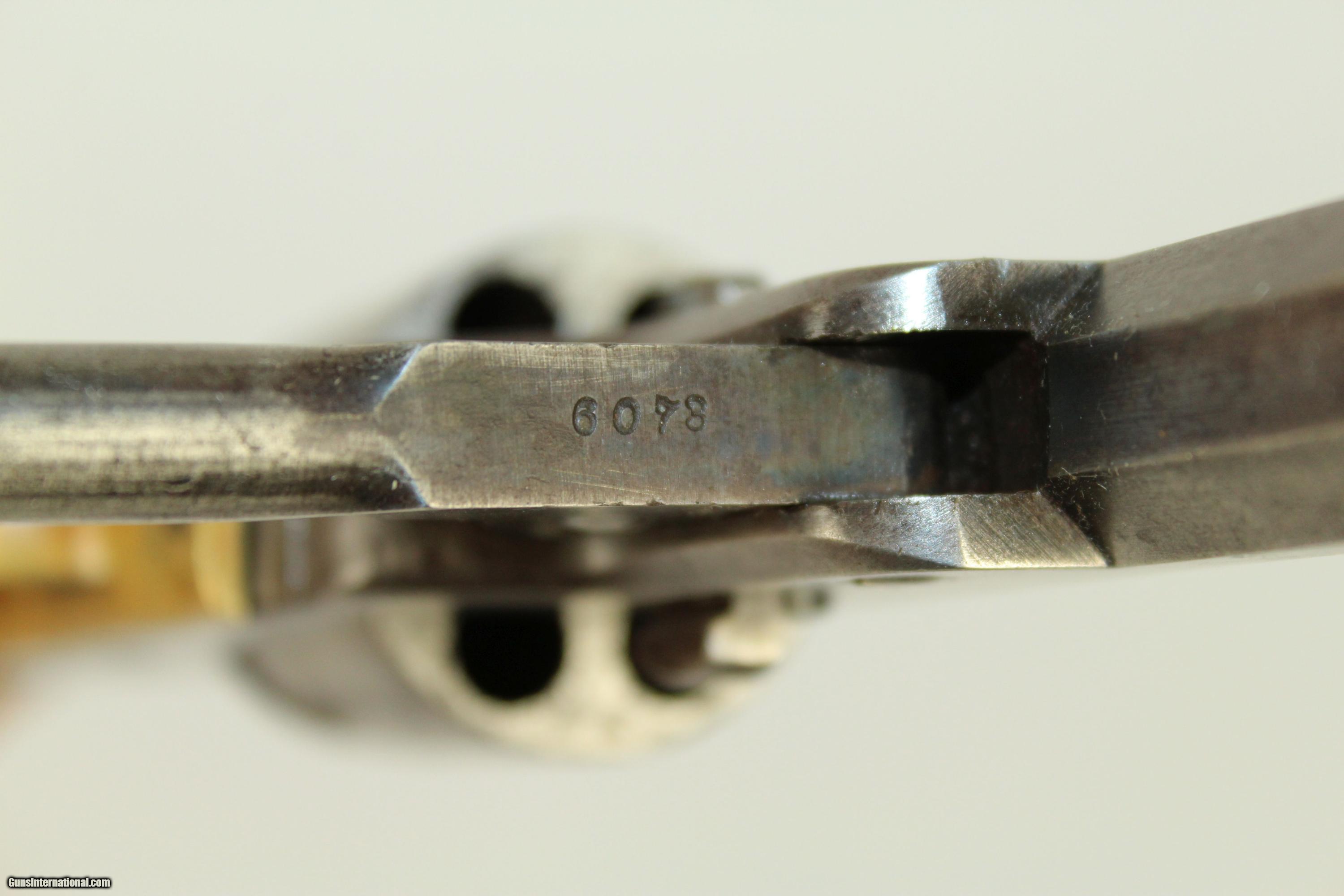 Description: CIVIL WAR Antique COLT 1851 NAVY Revolver Made During the Civil War 1863 Here we present an antique Colt 1851 Navy Revolver, made in 1863, in Hartford, Connecticut. The 1851 Navy was one of Colt’s most famous and successful lines, reaching a production total of 257,348 from 1850 to 1873 (right up to the time of SAA production) from both Hartford and London factories. From Hartford alone, 185,000 were made by the end of the American Civil War. Many of these saw service during the conflict on both sides. There were some military purchases and lots of private purchases by soldiers going off to war. In addition, the Model 1851 was a favorite of “Wild Bill” Hickok, who carried two of these most famously in his red sash. The cylinder roll engraving on the 1851 Navy features a scene from the Battle of Campeche executed by American engraver Waterman Ormsby. The engraving pays homage to Texas in their fight with the Mexican government for independence. During this particular battle, the Mexican Navy wielded two ironclad steamers, while the Texans were armed with a variety of wooden ships, led by Commodore Edwin Moore. The scene also appears on the cylinders of the Colt 1860 Army and 1861 Navy Revolvers. This specimen is in very good condition. The metal has a nice aged patina. Some case colors still visible on the loading lever. The markings are clear and legible. The cylinder scene is partially visible. Serial numbers match. The original walnut grips are well-used and solid. The bore is very good, with strong rifling. The action is functional. Own the original! This is a legitimate antique and not a reproduction. Barrel is 7-1/2 inches in length. Caliber: .36 percussion The bore is in very good condition, and the firing mechanism is functional. Overall condition as seen in photos. Here is a very nice Civil War production Colt 1851 Navy Revolver for your collection. Very Fast. Very Safe. FREE SHIPPING WORLDWIDE. Delivered directly to your door by express mail! Guaranteed AUTHENTIC & Includes CERTIFICATE OF AUTHENTICITY. ancestryguns $1800 #21888 SOLD Antique: Yes |