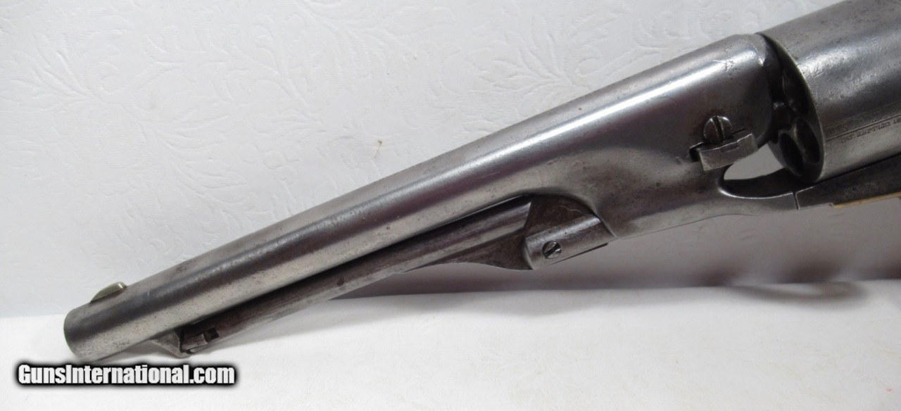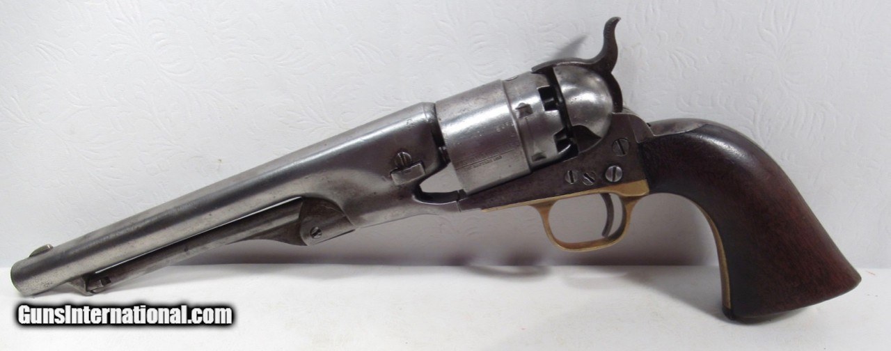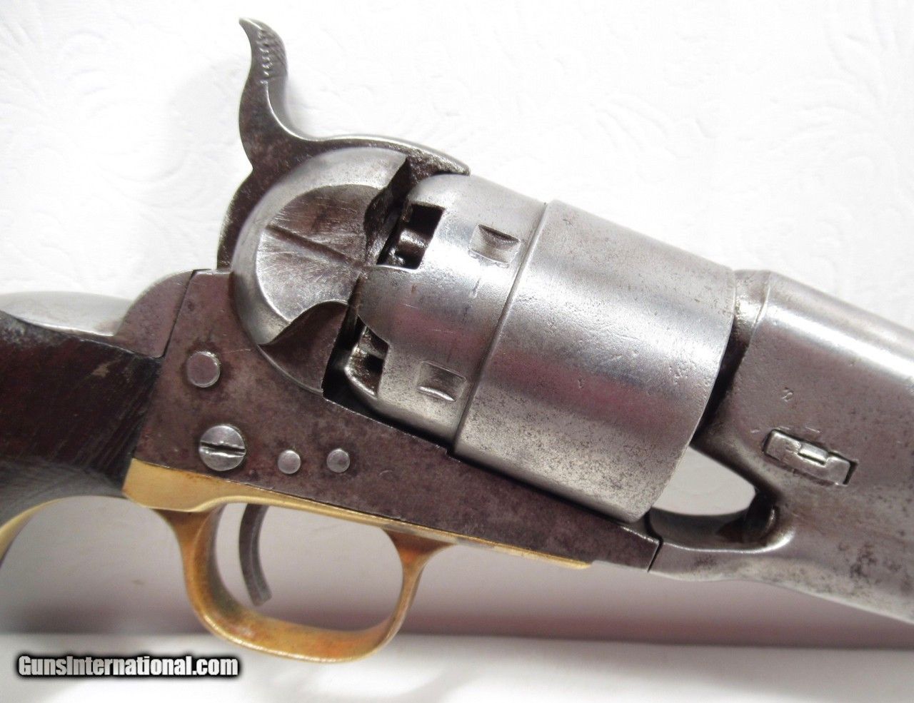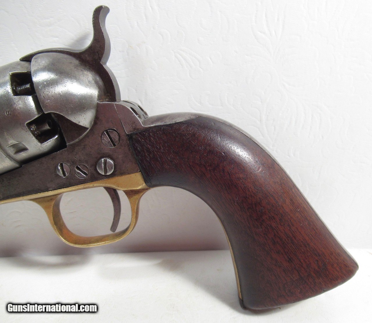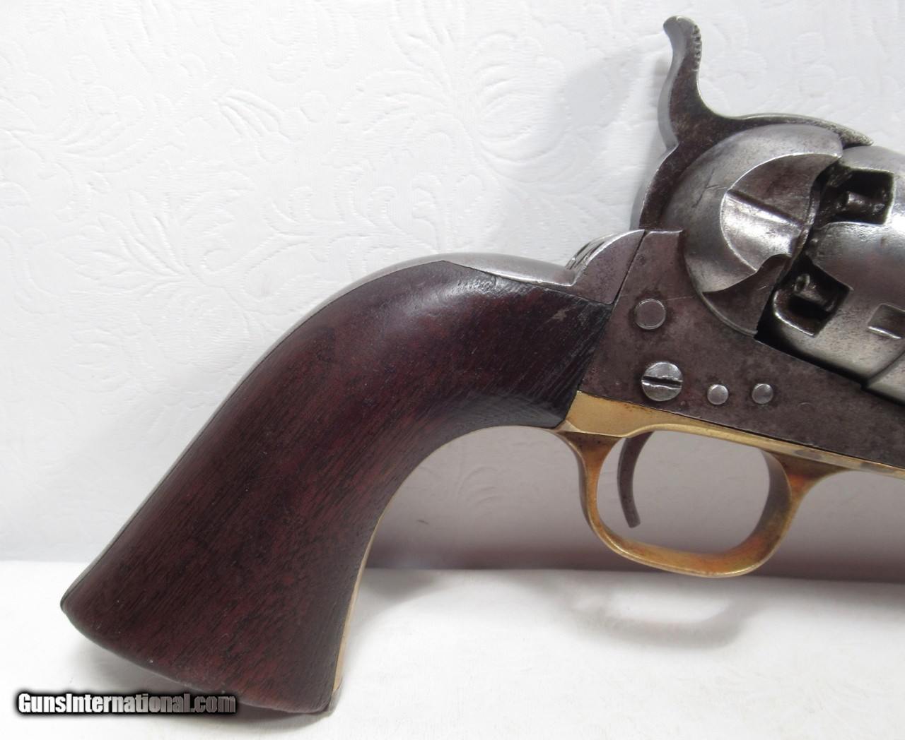 Description: SALE PENDING--Colt 1860 Revolver; Serial No. 21164; .44 Caliber with 8” Barrel; 4 Screw Variation; Cut for Shoulder Stock; Military Inspector Markings Present; All Numbers Match Including Wedge, Except Cylinder Numbered 1054; Good Action and Bore; Really Nice Grips; Civil War Used – Made 1861; See All Photos for Condition; No Texts. Call or Email Only; PERSONAL PROPERTY of Harold Wieser; Price: $1,275 + $45 S&H Via FedEx Express; Price includes insured shipping; return policy: three days inspection from the date the item is received; full refund of shipping both ways ONLY IF THE ITEM IS MISREPRESENTED. SOLD Antique: Yes Manufacturer: Colt Model: 1860 Army Serial Number: 21164 |