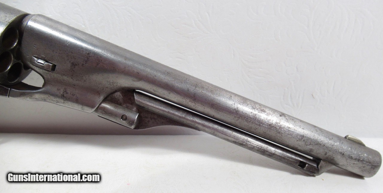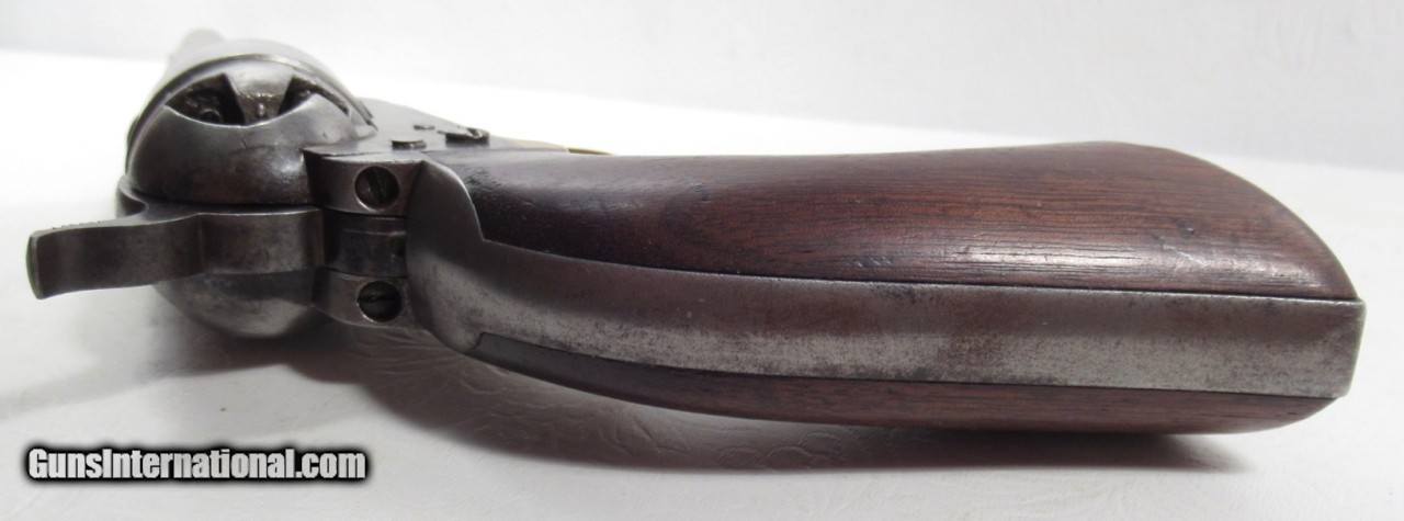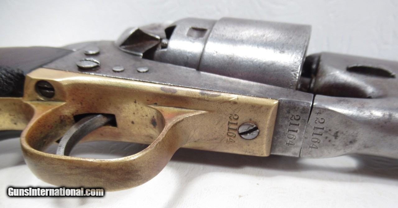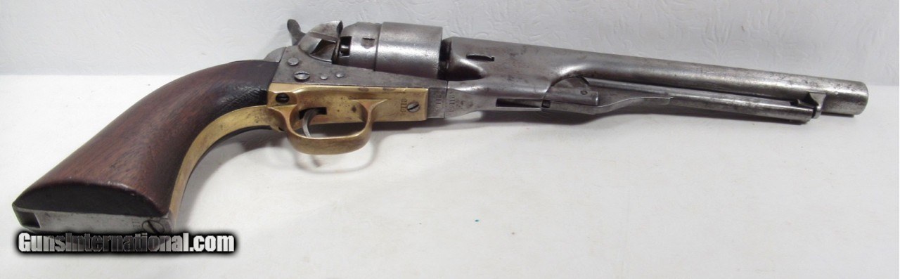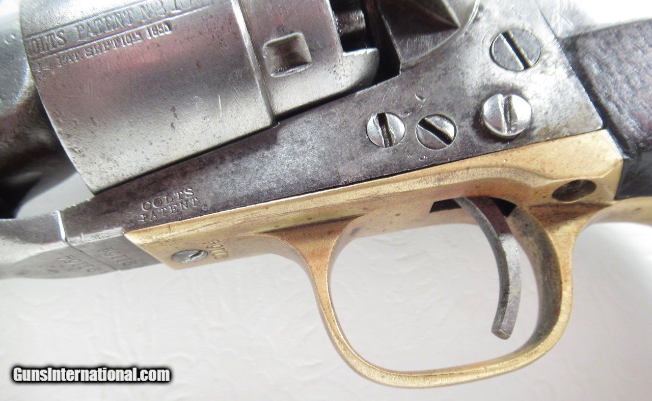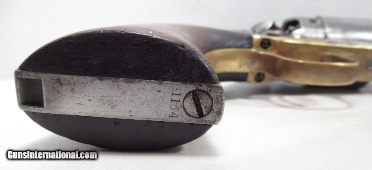 Description: SALE PENDING--Colt 1860 Revolver; Serial No. 21164; .44 Caliber with 8” Barrel; 4 Screw Variation; Cut for Shoulder Stock; Military Inspector Markings Present; All Numbers Match Including Wedge, Except Cylinder Numbered 1054; Good Action and Bore; Really Nice Grips; Civil War Used – Made 1861; See All Photos for Condition; No Texts. Call or Email Only; PERSONAL PROPERTY of Harold Wieser; Price: $1,275 + $45 S&H Via FedEx Express; Price includes insured shipping; return policy: three days inspection from the date the item is received; full refund of shipping both ways ONLY IF THE ITEM IS MISREPRESENTED. SOLD Antique: Yes Manufacturer: Colt Model: 1860 Army Serial Number: 21164 |