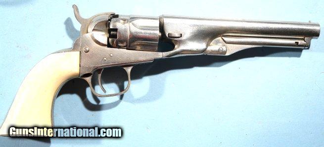 CIVIL WAR ERA COLT 1862 POLICE .36 CAL. PERCUSSION FACTORY NICKEL PLATED 5 ½” REVOLVER CA. 1862.