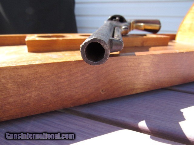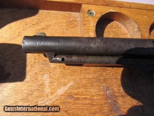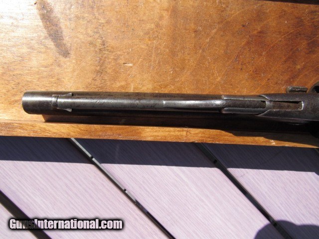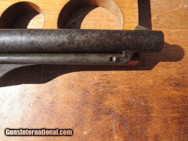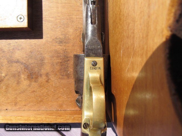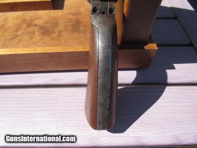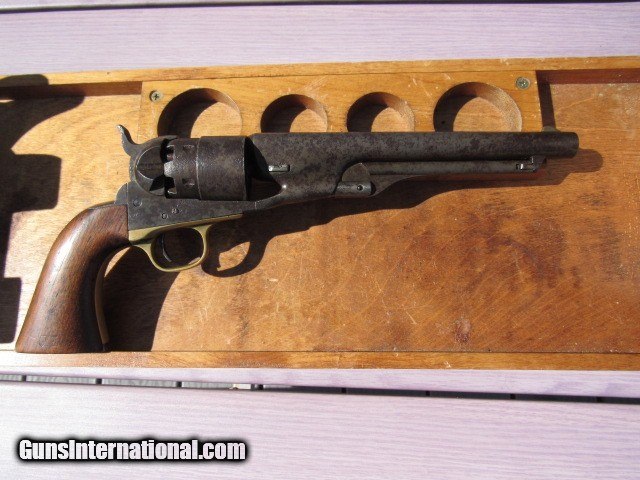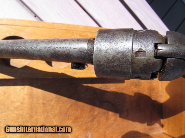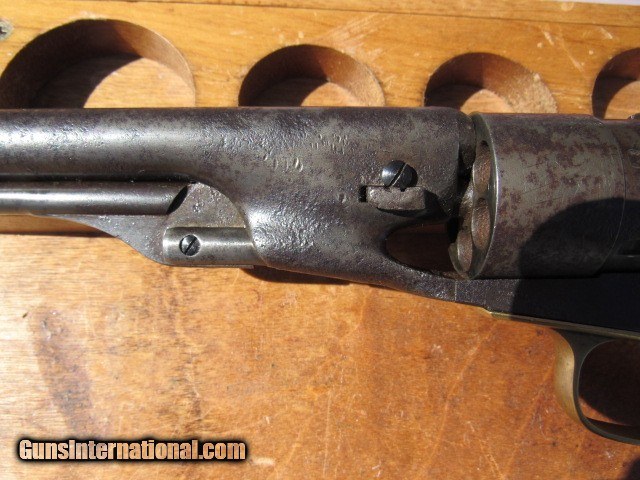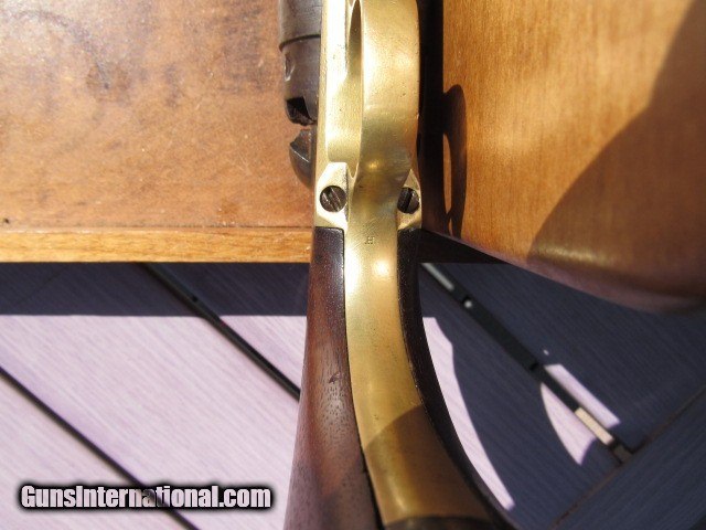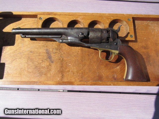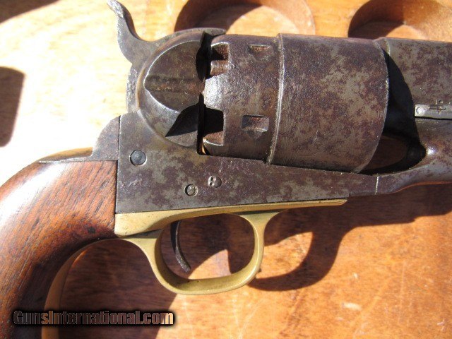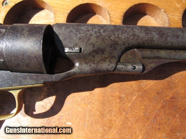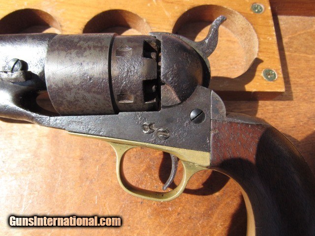 Description: Colt Model 1860 Army 44 caliber percussion revolver serial number 128334 made 1863. Although not a direct hit on the SRS list, there are about 20 other Colts nearby that were issued to the 4th Kentucky Cavalry; there's a good chance it stayed there after the war. The condition is common of firearms from the humid Southeast - darker color, pitting and staining. All the numbers match except for the wedge, which has the last 3 digits of 225. Hammer screw, wedge screw and loading lever screws are replacements. Action is tight but hangs at times on the cylinder stop. Bore has good rifling and needs the accumulated junk of time removed. Cylinder has some scene remaining. End of muzzle shows holster wear. Sub inspector initials include an "H" on the trigger guard and back strap, a single "C" on the barrel and "CC" on the cylinder. The main inspector cartouches are of Robert H. K. Whiteley on the left grip and John Taylor on the right grip. Grip shows light wear and a small chip loss at the lower left front corner. Cylinder is missing one nipple. Representative Civil War 1860 Army that certainly spent some time with a Union Trooper. TERMS: Shipping to the Continental US States will be a flat $25 with insurance optional and additional if requested. We do ship to California! No international sales. Antique so it can ship directly to you assuming your local laws allow it. Please know what is legal for your state. 3 day non-firing inspection. Buyer pays return shipping. Payment by major credit cards only with no convenience fee added. Ships by UPS Ground with tracking. Always interested in Civil War items, as well as used long guns and used antique handguns so please contact me if you have anything for sale or trade. 315.251.4799 with questions or concerns. Please keep in mind that I work a part time job afternoons during the week and may not be able to immediately respond to your text, phone, or email message. Thanks for looking! Reasonable offers are entertained and welcomed. SOLD Antique: Yes Handgun Caliber: .44 Manufacturer: Colt Model: 1860 Army Serial Number: 128334 Barrel Length: 8" round Condition: Fair Metal Condition: Fair Wood Condition: Good Bore Condition: Good Action: Single Action Revolver Triggers: Standard/plain Stock: Walnut Sights: Standard Manufacture Date: 1863 Item Location: New York |