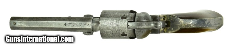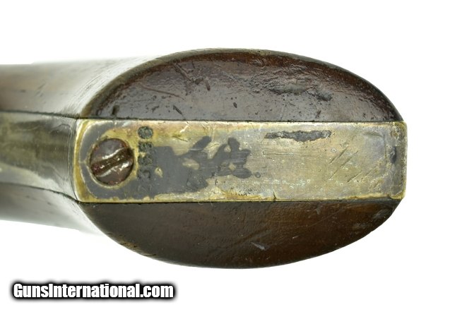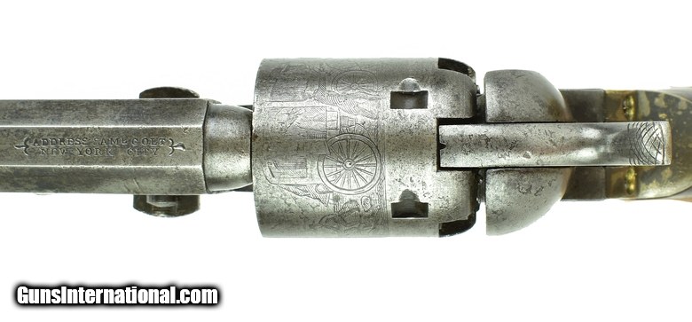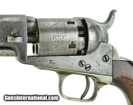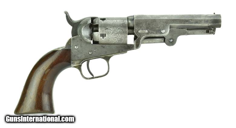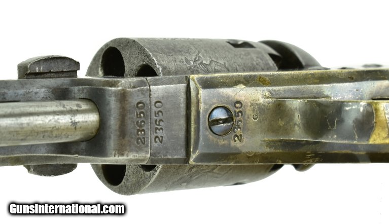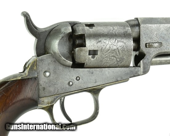 Description: Colt 1849 Pocket Revolver. Early gun made in 1851. .31 Caliber with a 4” barrel. Nice early gun in the 23,000 serial range. Barrel is nice and sharp with 15% of the original blue. Cylinder has excellent cylinder scene. Trigger guard and back strap still have most of the silver. Grips are excellent. Very nice early gun! SOLD Antique: Yes |