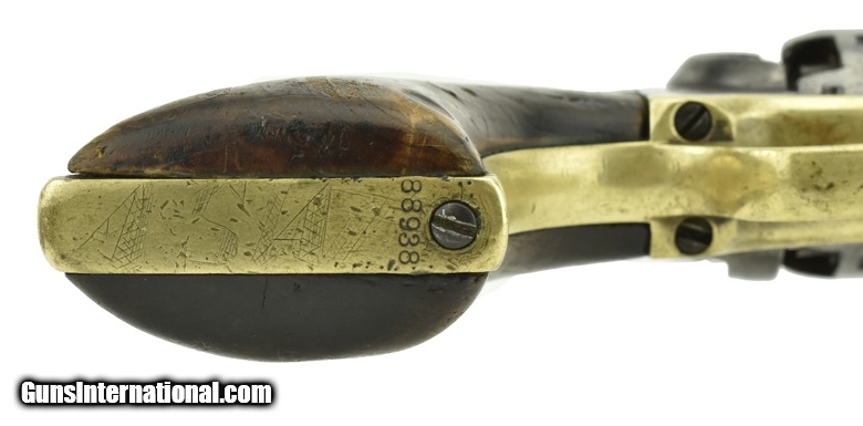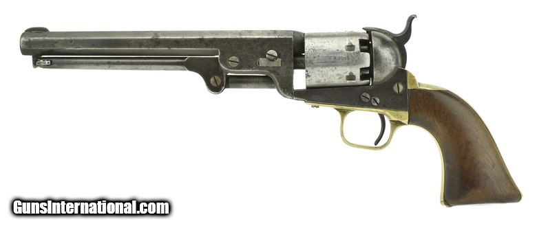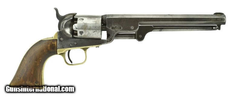 Description: Colt 1851 Navy .36 caliber revolver. Made in 1858. Action indexes. Cylinder is matching. Good overall condition. A reasonably priced 1851 Navy. Barrel has Hartford address. All numbers are matching. Bottom of butt strap is faintly but still visible “ASA”. This Colt Navy has seen some real action. All things considered, to have all the numbers still matching is very unusual. SOLD Antique: Yes |