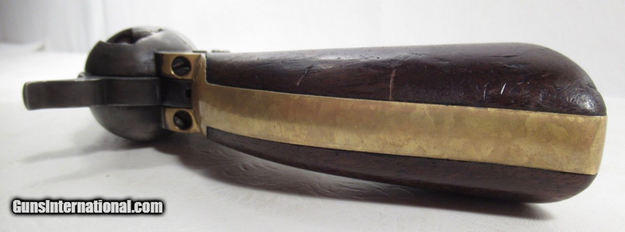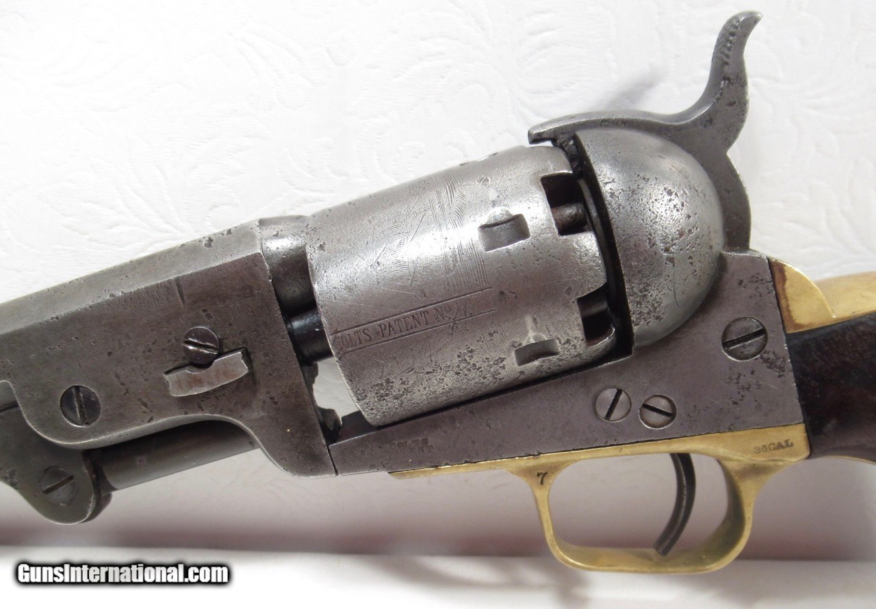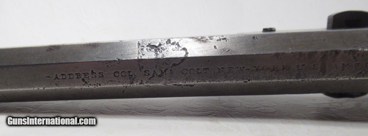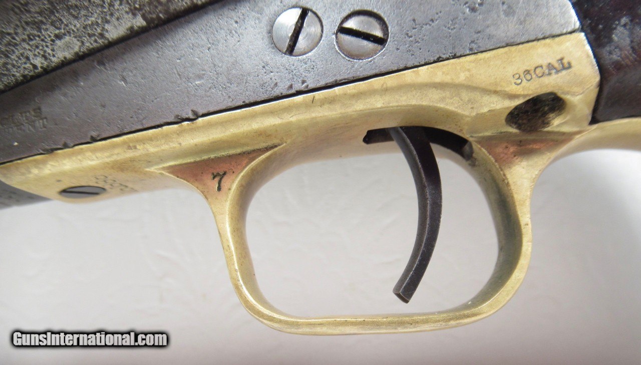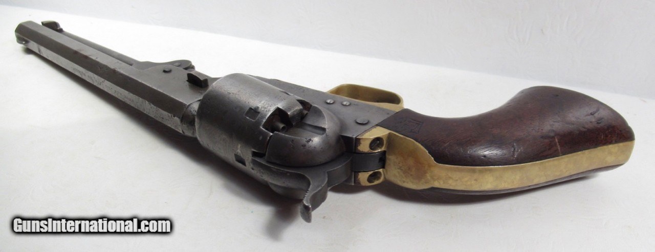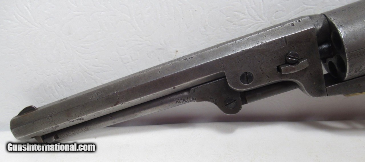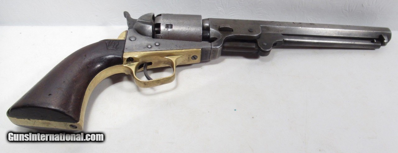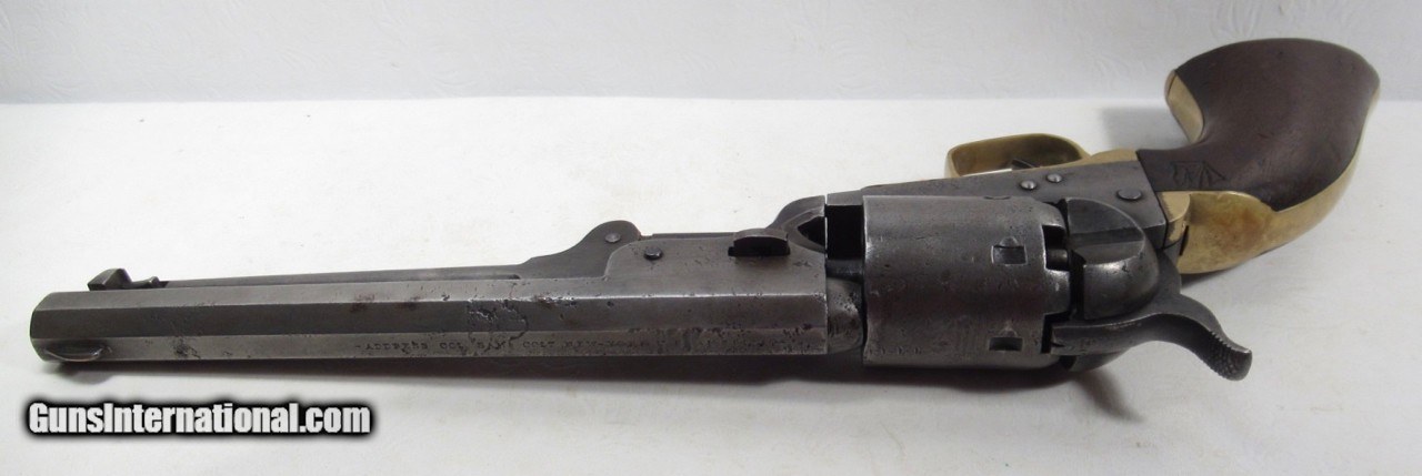 Description: ON HOLD--Colt 1851 Navy 36 Cal. Revolver; Serial No. 151888; Made 1863; Civil War Era; All Numbers Match except un-numbered wedge; Exterior pitting due to poor storage; Excellent Action; Very Strong Bore; Nice Grips; See All Photos for Condition; No Texts. Call or Email Only; PERSONAL PROPERTY of Harold Wieser; Price: $775 + $45 S&H Via FedEx Express; Price includes insured shipping; return policy: three days inspection from the date the item is received; full refund of shipping both ways ONLY IF THE ITEM IS MISREPRESENTED. SOLD Antique: Yes Manufacturer: Colt Model: 1851 Navy Serial Number: 151888 |