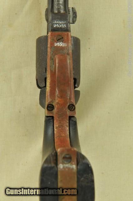 Description: REDUCED!!! ANTIQUE COLT 1851 NAVY REVOLVER MADE IN 1860 IN HARTFORD, CONN. AND USED EXTENSIVELY IN THE CIVIL WAR. BARREL ADDRESS IS STILL CLEAR. ACTION STILL WORKS IN COCK AND HALF COCK. GRIPS ARE ORIGINAL. CYLINDER AND BARREL ARE A LITTLE LOOSE, BUT NOTHING MAJOR. ALL MATCHING NUMBERS EXCEPT THE WEDGE. THIS REVOLVER WAS FOUND BY A GENTLEMAN NAMED BAKER IN A CIVIL WAR CAVE IN GEORGIA IN 1950 ALONG WITH VARIOUS CONFEDERATE CIVIL WAR ARTIFACTS. THAT IS THE REASON FOR THE DARK GOLD LOOKING FINISH ON THE METAL. THE REVOLVER REMAINED IN THEIR FAMILY UNTIL I PURCHASED IT FROM THEM. THIS GUN IS A GREAT PIECE OF AMERICAN CIVIL WAR HISTORY. IT'S NOT IN THE GREATEST SHAPE, BUT IS A GENUINE PIECE OF CIVIL WAR HISTORY. I HATE TO LET IT GO, BUT I AM SELLING MY ANTIQUE GUN COLLECTION. SHIPS FREE TO BUYER. NO FFL. IF ANY QUESTIONS: 417-294-1603. I CAN DO LAY-A-WAY. NO TRADES. SOLD Antique: Yes Manufacturer: COLT Model: 1851 NAVY Serial Number: 96088 Caliber Info: .36 Condition: USED Metal Condition: ROUGH Wood Condition: OK Bore Condition: ROUGH Barrel Type: OCTAGON Action: SINGLE Sights: FIXED Manufacture Date: 1860 Case: YES Item Location: MISSOURI |