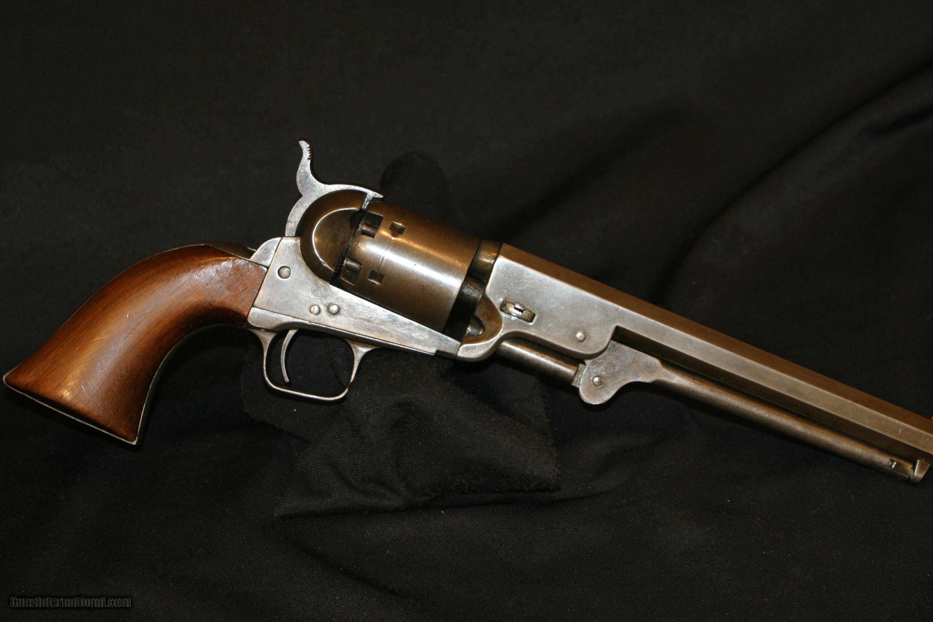 Description: COLT NAVY MARKED 1851 .36 BP, 7 1/2" BARREL,ONE LINE NEW YORK ADDRESS "USN" STAMPED ON STEEL BUTT WITH "US" ON LEFT RECEIVER. GOOD BORE,ACTION LOCKS UP WELL S/N 619XX SOLD Antique: Yes |