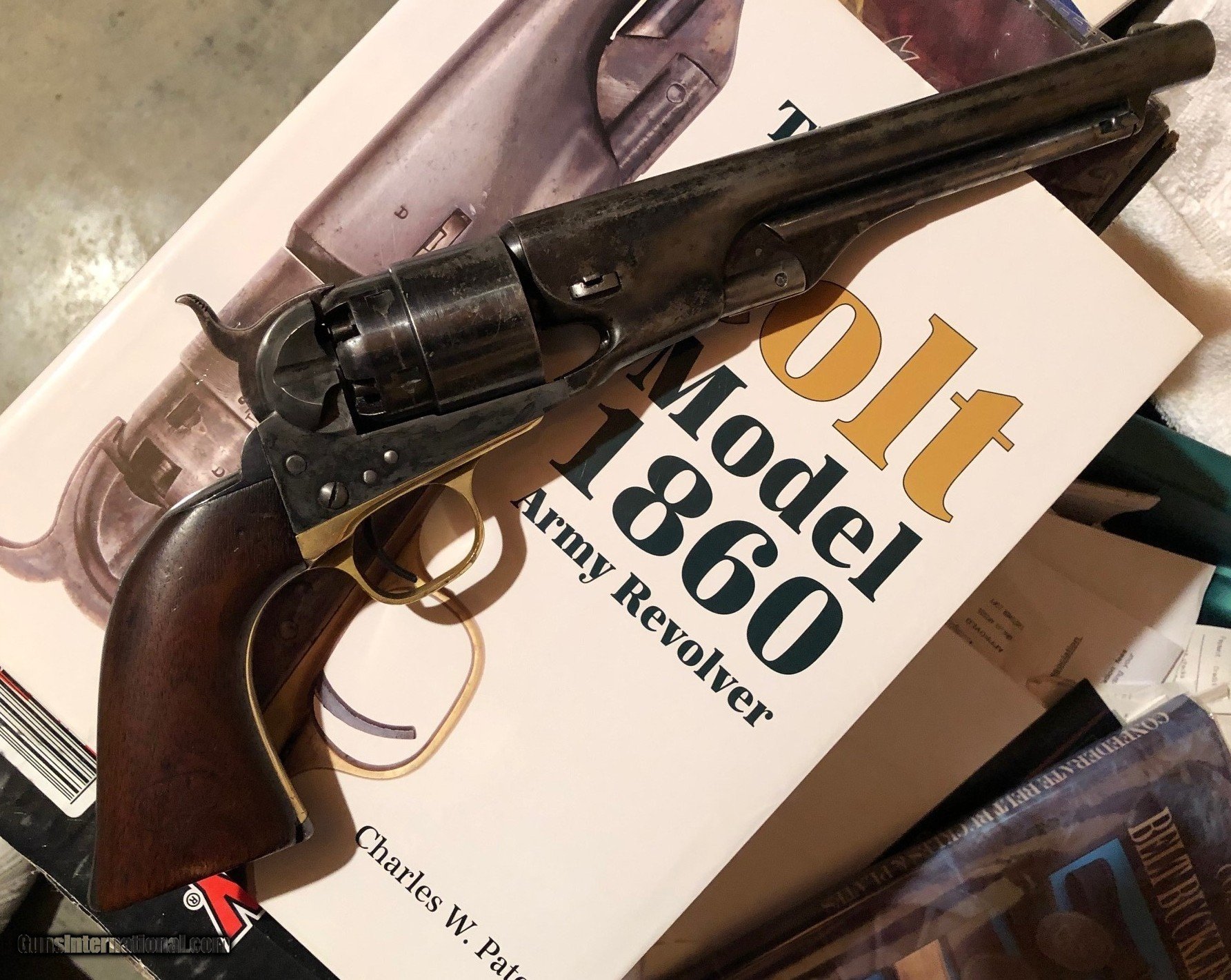Colt 1860 Army .44 Cal 4 Screw Sharp Edges-Lots of Originsl Finish-2 Cartouches-Sub Inspection Marks-As New Mechanically-Nice Scene