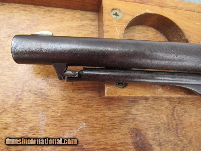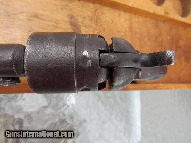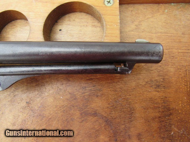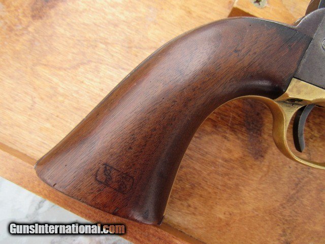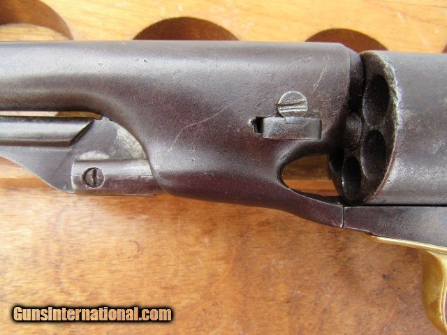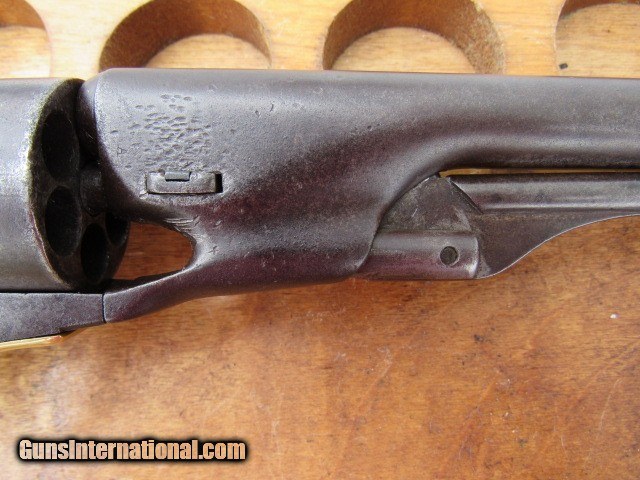 Description: Colt Model 1860 Army 44 caliber percussion revolver, 6 shot cylinder, 8" round barrel with brass front sight, walnut grips, single action, serial number 72075, made 1862, blued and case hardened finish with steel back strap and brass trigger guard. Sub inspector markings include a "K" on the back strap just behind the hammer, an "H" on the trigger guard just behind the trigger bow and an "A" on the cylinder. The left grip cartouche is not legible. The "JT" cartouche of inspector John Taylor is clear on the right grip. "W W Davidson" is lightly signed in period font on the bottom of the left grip. There are two possibilities for this name per the Civil War Geneology database, considering it is a Cavalry revolver. The first would be William W Davidson, Private, Company H of the 15th Pennsylvania Cavalry (Union Army), who enlisted 8/30/1862 and mustered out 2/22/1863 due to disability. The other option is William W Davidson, Private, Company C of the Mississippi 2nd Partisan Rangers (Confederate Army), who enlisted 9/2/1862 with no discharge date given. Obviously having full martial markings, this revolver started out in the hands of an Union Cavalry soldier. The 15th PA operated mostly in Tennessee, North Carolina and Virginia, and would never have crossed paths with the 2nd Mississippi, because after skirmishing in Mississippi it saw action in various conflicts in North Georgia and Alabama. Some of the men were captured in the fight at Selma, and only a remnant surrendered with the Department of Alabama, Mississippi, and East Louisiana. Per the Springfield Research Survey, the closest recorded 1860 Army to this one is serial number 72043 issued to Company L of the 1st Alabama (Union) Cavalry. It is also known that Union troops were not allowed to mark their names on their weapons and would be fined for "destruction of government property" if they did. Conversely, the Confederates quite often marked their names and/or initials on weapons they gleaned from the Union to show ownership and prevent their buddies from stealing them. Thus I am going to put the puzzle together in this way: this revolver was initially issued to a member of the Union 1st Alabama Cavarly, which did come into direct contact with the 2nd Mississippi in Mississippi and Alabama, was captured by W W Davidson during some altercation, and used by him for whatever length of time he remained with the 2nd Mississippi. The overall condition leans toward Southern use as well - Deep South humidity often turned the blued finishes of any firearm to a dark chocolate color, which this revolver has. There are multiple dings around the wedge on the right side of the barrel. The grips are smooth and have been lightly cleaned. The action does function properly, locking up tightly and indexing correctly at full cock but having slight play with the hammer at rest. Likewise the brass was lightly cleaned at one point and is starting to regain its patina. All the original nipples are intact and undamaged. Except for traces of one, the cylinder stop pins are completely worn away. The loading lever has side-to-side play. The wedge is mismatched from a "campfire swap" and is numbered 7339, fitting loosely and easily removed, otherwise all the numbers match in whole or part on the cylinder, bottom of grip, trigger guard, frame, and cylinder pin. The bore is good with scattered typical black powder pitting but no rings or bulges and no deep pits, fairly decent rifling. All in all it grades NRA Antique Very Good and will make a nice addition to any Civil War and/or Colt firearm collection. This is basically a no finish revolver with all metal surfaces now gray, traces of blue on protected underside of barrel and very light hints of case colors on frame when the sun is shining. Very good walnut grips showing normal use but no abuse and no splits or cracks. Mellow, uncleaned brass. For the most part, the markings are still clear except for the barrel addrees, which shows wear due to being holstered (as does the muzzle, which shows wear on left edge). Serial number matches in whole or in part everywhere it should - bottom of grip, trigger guard, frame, cylinder, cylinder pin. No number on wedge. Bore is fair with consistent rifling but typical wear and light scattered black powder pitting, no rings or bulges. All nipples are intact and undamaged. Cylinder stops are mostly worn down from use. Action is tight with positive clicks and no slop, indexes correctly each time the hammer is cocked. Cylinder retains 50% of the original scene. Wedge screw has a small piece broken off but the slot is still good and it still can be removed. All in all grades NRA Antique Good and is an honest example of a desirable Colt 1861 Navy revolver. TERMS: No international sales. Antique so it can ship directly to you assuming your local laws allow it. Please be aware of what is legal in your state. 3 day non-firing inspection. Buyer pays return shipping. Payment by bank check, personal check or money order. Also now accepting payments through Zelle. All major credit cards accepted with 4% convenience fee added. Ships by UPS Ground with tracking. Always interested in used long guns and used antique handguns so please contact me if you have anything for sale or trade. 315.251.4799 with questions or concerns. Please keep in mind that I work a full time job during the week and may not be able to immediately respond to your text, phone, or email message. Thanks for looking! SOLD Antique: Yes Handgun Caliber: .44 Manufacturer: Colt Model: 1860 Army Serial Number: 72075 Barrel Length: 8" round Condition: Very good Metal Condition: Very good Wood Condition: Very good Bore Condition: Good Action: Single Action Revolver Triggers: Standard/plain Stock: Walnut Sights: Standard Manufacture Date: 1862 Item Location: New York |