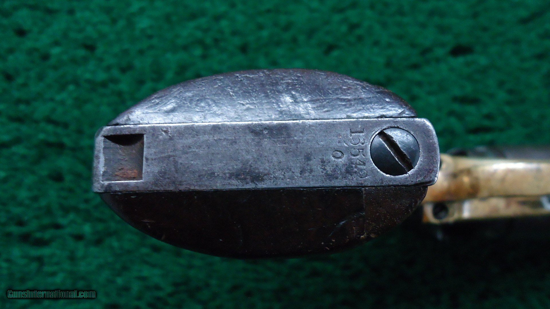 Description: Overall metal is a plum brown with good markings. About 75% of the cylinder scene still intact. Early 16k serial range with all matching numbers including the cylinder. Traces of case colors on the receiver. 4 screw frame. Grips are very good. Nice clean original gun. Leroy Merz Antique Firearms specializes in antique and vintage Winchesters and other fine American firearms. Since 1965 Mr. Merz has taken part in the world of firearms and has been a contributor to many well known reference books. Just recently we mailed the 129th edition of our privately-published catalog. We have hundreds of additional guns in every price range at our home online. Search for Merz Antiques in google. SOLD Antique: Yes |