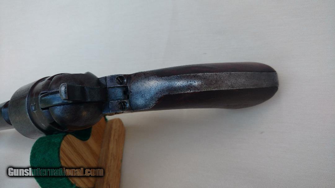 Description: HERES A FINE EXAMPLE OF A COLT 1860 ARMY MARTIAL. ALL NUMBERS MATCH EVEN THE WEDGE. THE ORIGINAL MARTIAL GRIPS ARE EXCELLENT AND HAVE CARTOUCHES ON BOTH GRIPS. METAL IS SHARP. ALL NUMBERS AND MARKINGS ARE SHARP. GUN LOCKS UP TIHGT AND IS IN EXCELLENT MECHANICAL CONDITION. THIS A UNTOUCHED ORIGINAL CIVIL WAR COLT 1860 ARMY MARTIAL. HAS ALL THE CORRECT INSPECTOR MARKS AND CARTOUCHES. GUN IS 100% CORRECT AND ORIGINAL. PLEASE REVIEW MY PHOTOS AND PLEASE EMAIL ME WITH ANY QUESTIONS ? 3 DAY INSPECTION. THANKYOU FOR LOOKING, LITTLE JO SOLD Antique: Yes Manufacturer: COLT Model: 1860 ARMY Serial Number: 111475 |