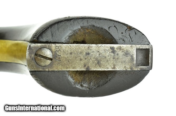 Description: Colt 1860 Army Model .44 Caliber U.S. Army Issue. This is a very colorful Army Colt. Notice the cut out holes in the bottom of the grips. This was for a leather thong for the soldier to cinch up to his wrist so as to not drop the pistol from his horse in the heat of battle. These “field” alterations were mostly for Cavalry as they were apt to be in a situation where he could drop or lose the revolver from the holster. We have sold at least a dozen or more 1860 Colts with the exact same field alteration. There are initials “C.J.” on the trigger guard, which has untouched patina. This revolver has a good bore with strong rifling. The action works and indexes perfectly. Numbers match except the wedge. Grip cartouches are worn but visible. Barrel address is excellent and sharp. Overall this is a well-cared for Colt with no abuse! Neat revolver with Cavalry use! SOLD Antique: Yes |
