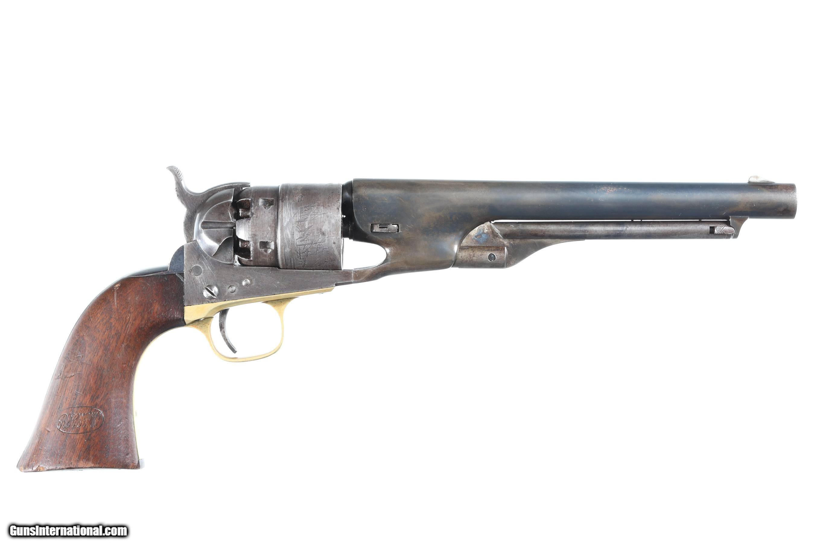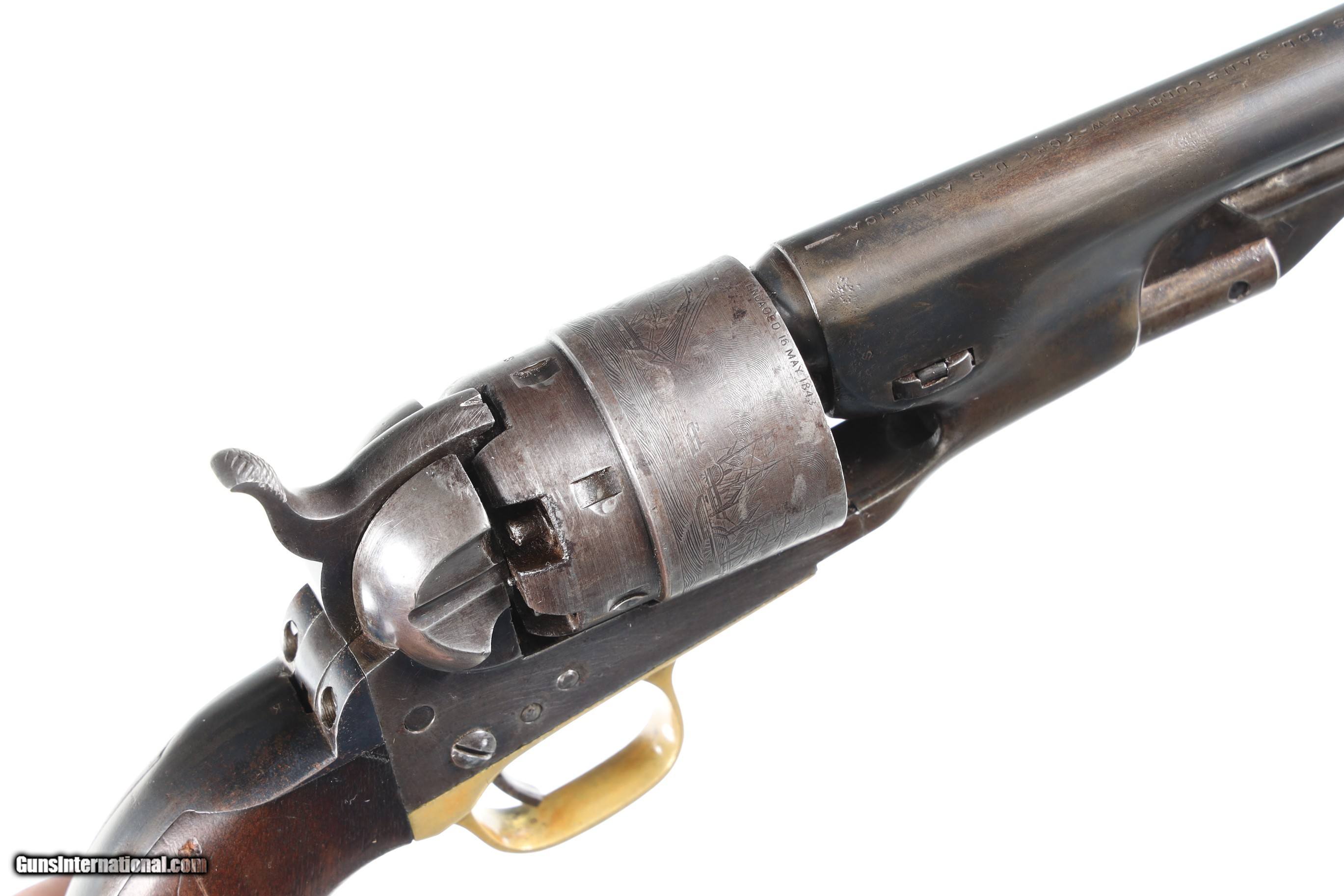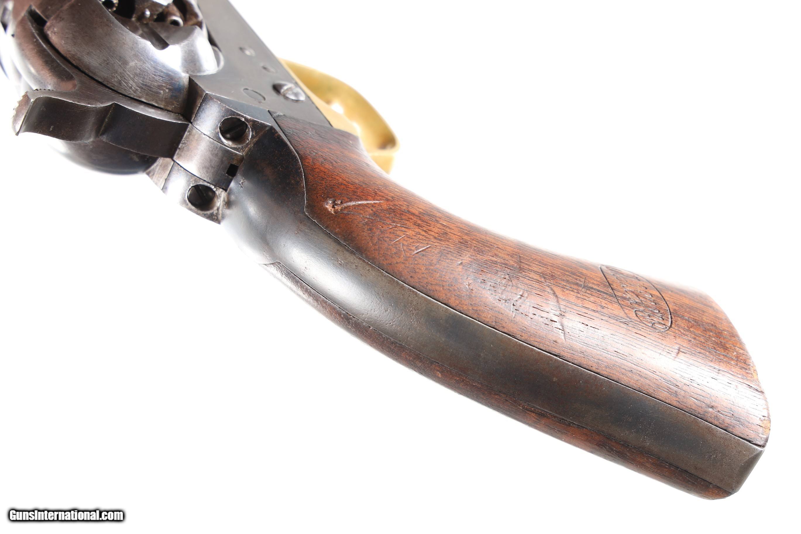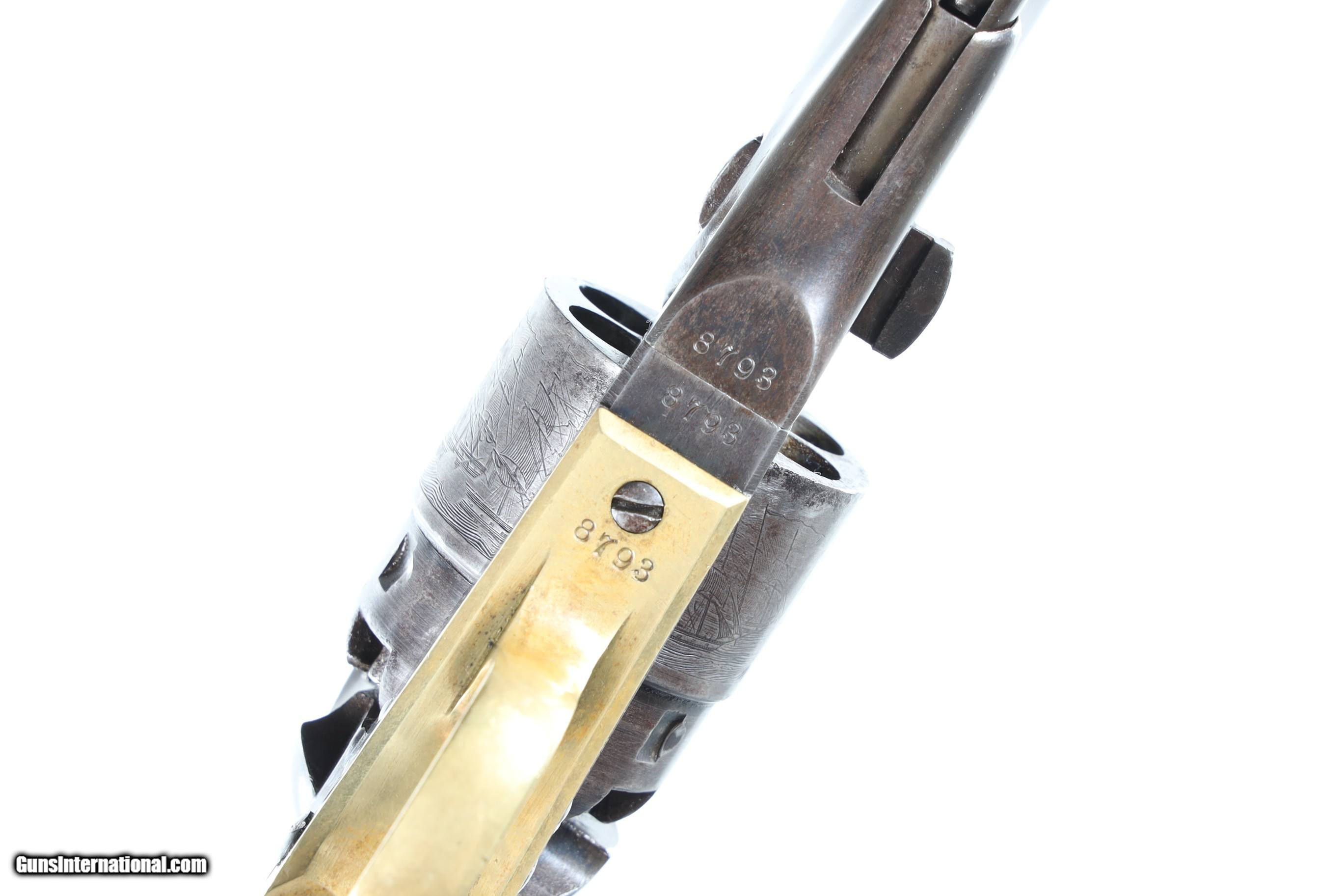 Description: Very good plus overall condition. Manufactured 1861, the breech end sides of the barrel and the trigger guard are stamped with the letter "S", a "K" on top of the back strap, and grip with "GGS" cartouche on the left side and "RHKW" on the right side. Matching numbers to include wedge. • Free Shipping, No Credit Card Fees. • Lay-a-way available for this firearm. • 1/3 Down, a 1/3 in 30 Days, 1/3 in 60 Days. SOLD Antique: Yes Manufacturer: Colt Model: 1860 Army Serial Number: 8793 Barrel Length: 8 |