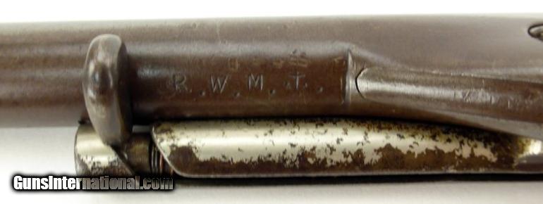 Description: Colt 1861 U.S. Navy Conversion. Gun has U.S.N. on the bottom of the butt and U.S. Naval Inspector initials under the barrel. R.W.M. and Anchor. These were a group of percussion revolvers returned to Colt for conversion. The frame is stamped with both the 1871/72 patent dates and the original Colt patents as well. In Bauce McDowells book, Colt Conversions and Other Percussion Revolvers, on page 261 he pictures the consecutive numbered conversion to this revolver. All numbers match except the cylinder which is correctly renumbered by Colt to match at the time of conversion. Bore is very good and the action works perfectly. The gun has an even patina and markings are all excellent. The grips are very good with 93-95% original varnish. This is a fine example of a Colt U.S. Martial 1861 Navy centerfire conversion. SOLD |