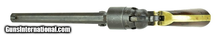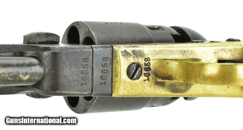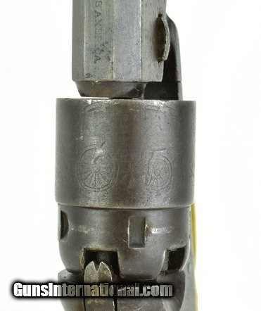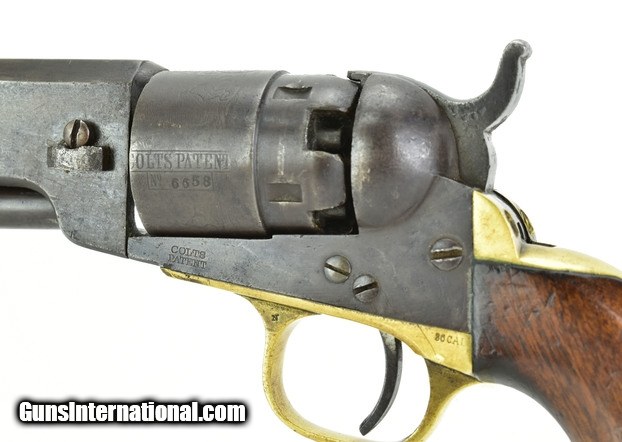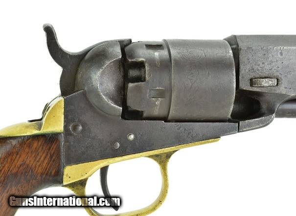 Description: Colt 1862 Pocket Navy Revolver. Made in 1863. 6 ½” Barrel. Nice sharp gun with dark gray patina. Cylinder has a good visible cylinder scene. Grips are very fine with original varnish on the grips. Action works well and locks up tight. Bore is very good!