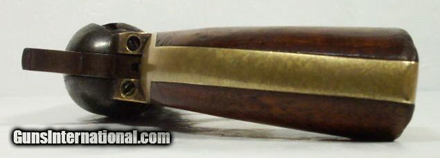 Description: LIQUIDATING PERSONAL COLLECTION!!! Nice 1862 Police 36 cal. percussion 5 Shot Revolver; Serial No. 5127; 4 ½” Barrel; Good amount of Original fading Blue present; traces of Original Silver on Brass Trigger guard and backstrap; Nice Original Grips with lots of Original Varnish; Good Action; Very Strong Bore with even frosting throughout. NOTE! Barrel number is 5137 (employee error, bad hangover); Nice 168 Year-Old Colt; antique, Price includes insured shipping SOLD Antique: Yes Manufacturer: Colt Serial Number: 5127 |