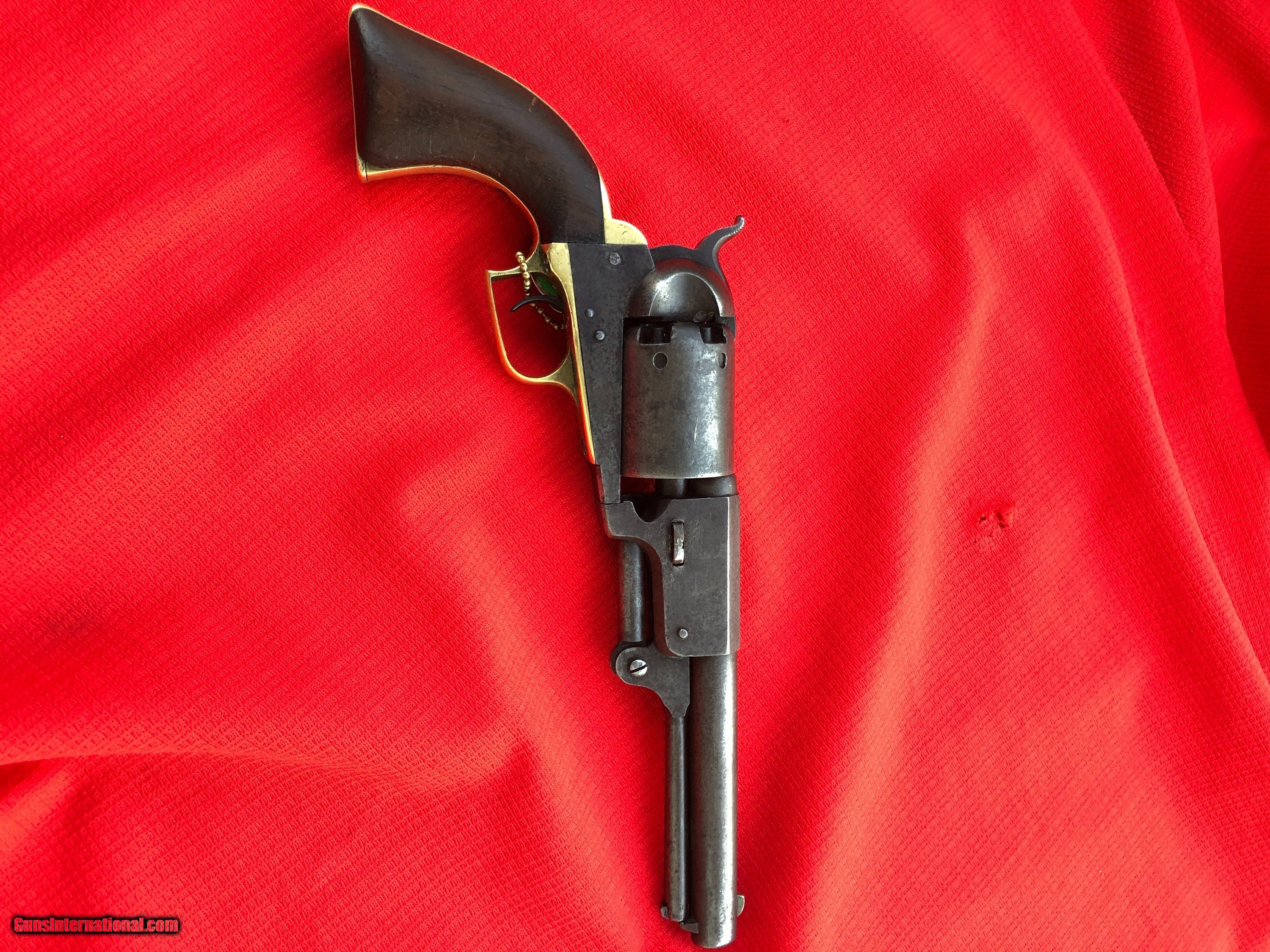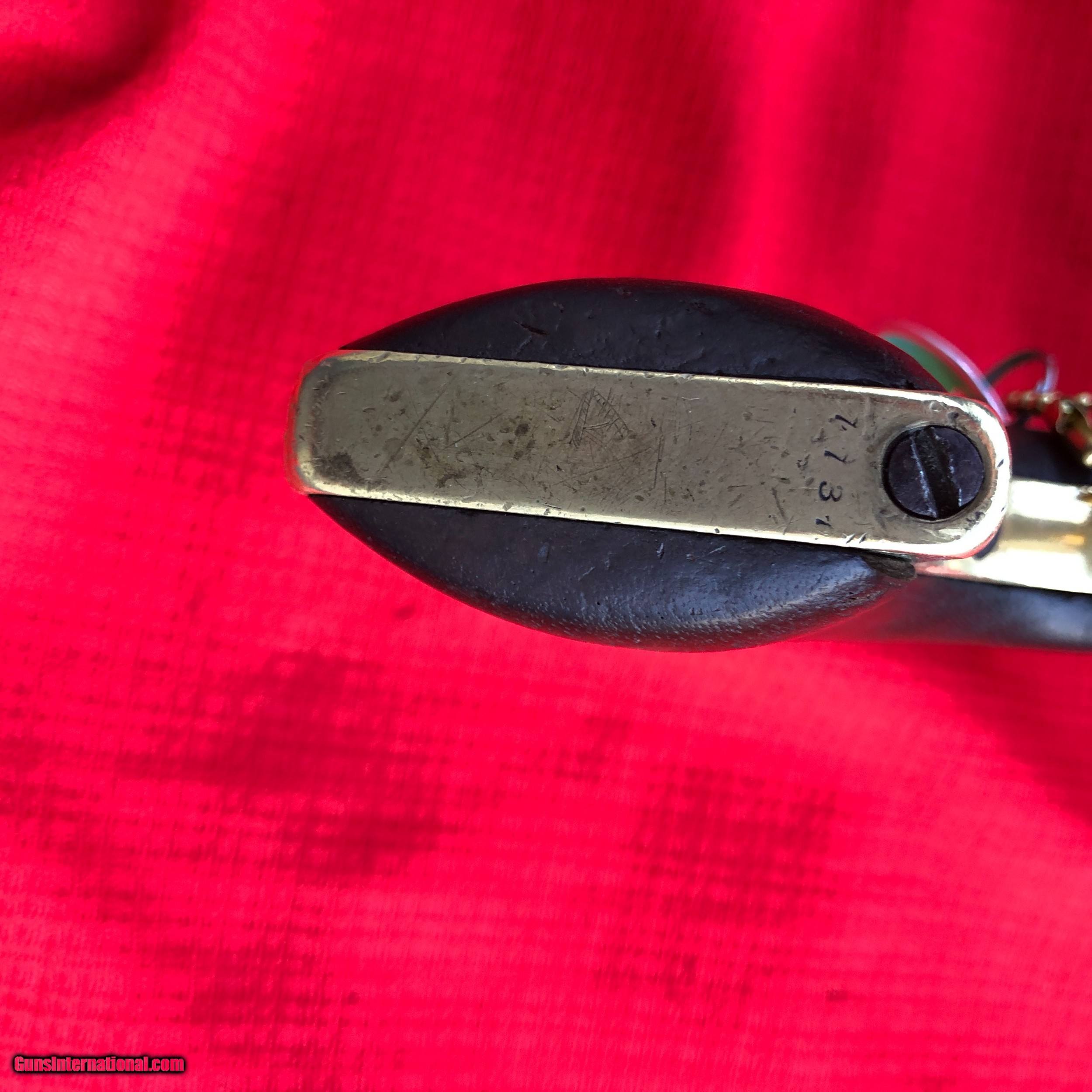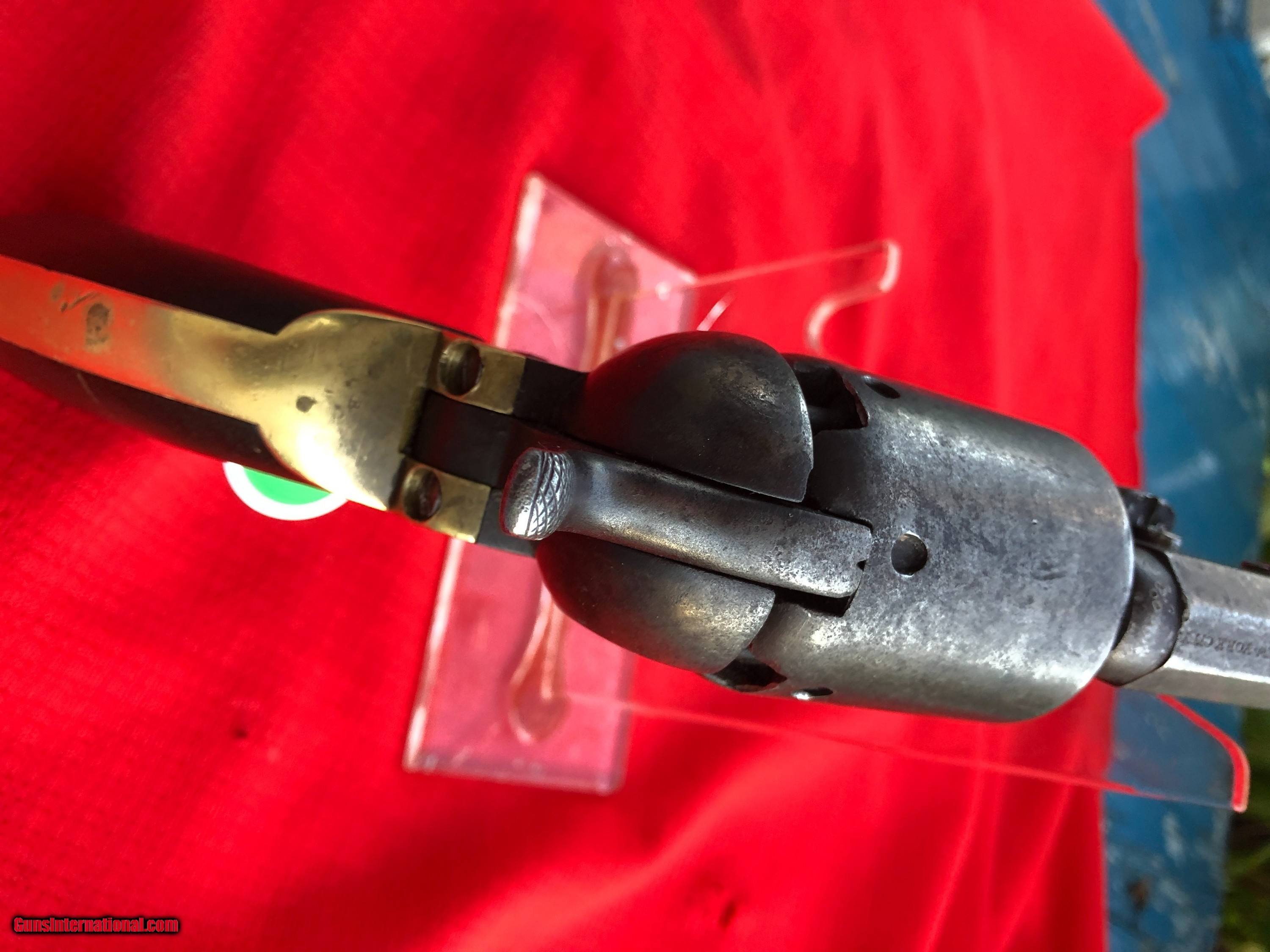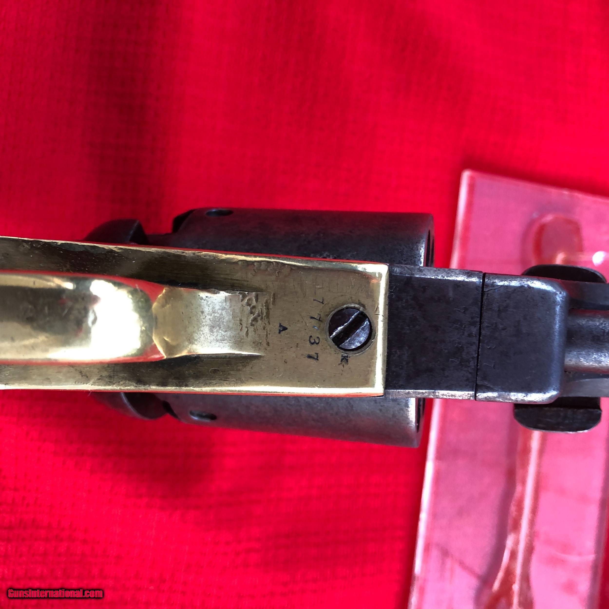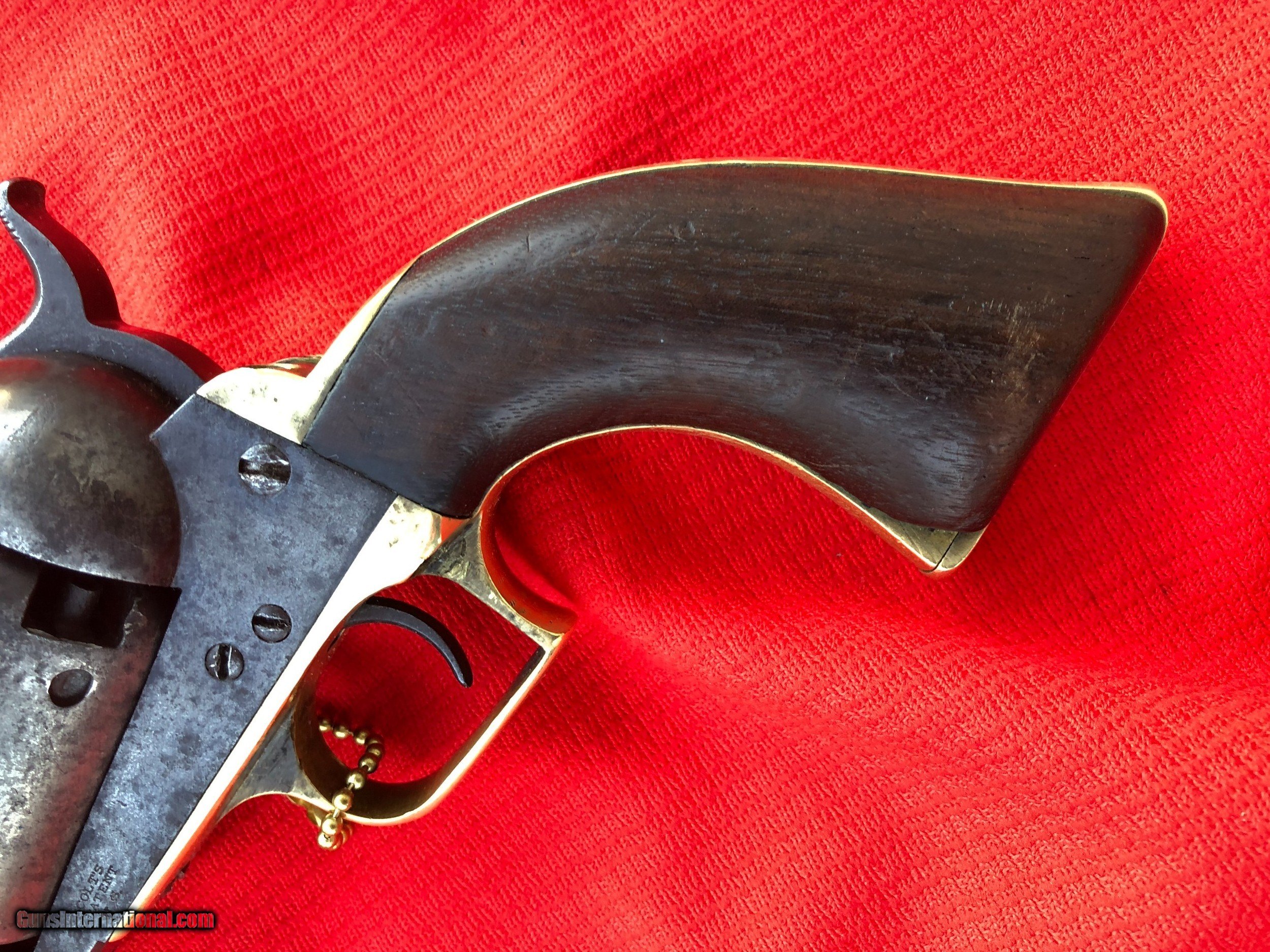 Description: Colt dragood has excellent mechanics and is all matching including the wedge. No cylinder scene remains and serial number is deep as is the barrel address. Grips either shurnk or were sanded a long time ago as frame is a little proud of the grip. Rifling is definite and bore is dark. Free Shipping. SOLD Antique: Yes |