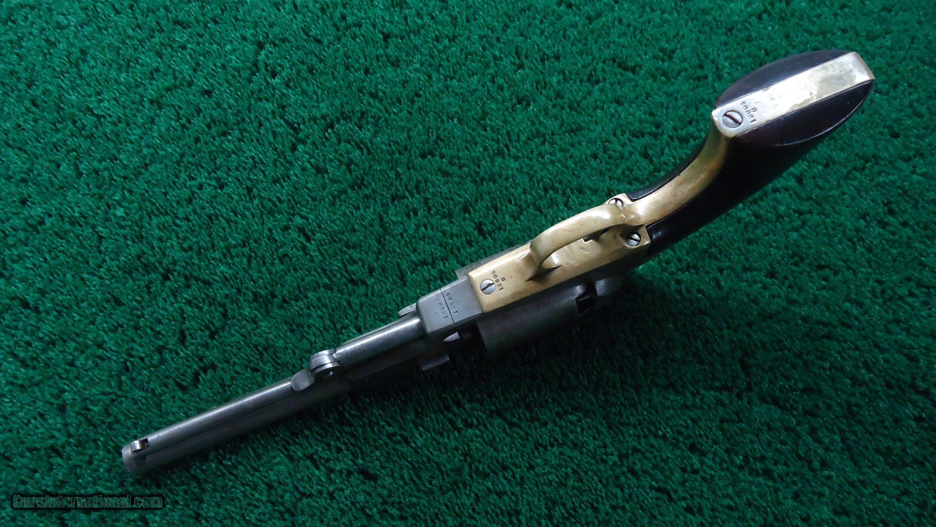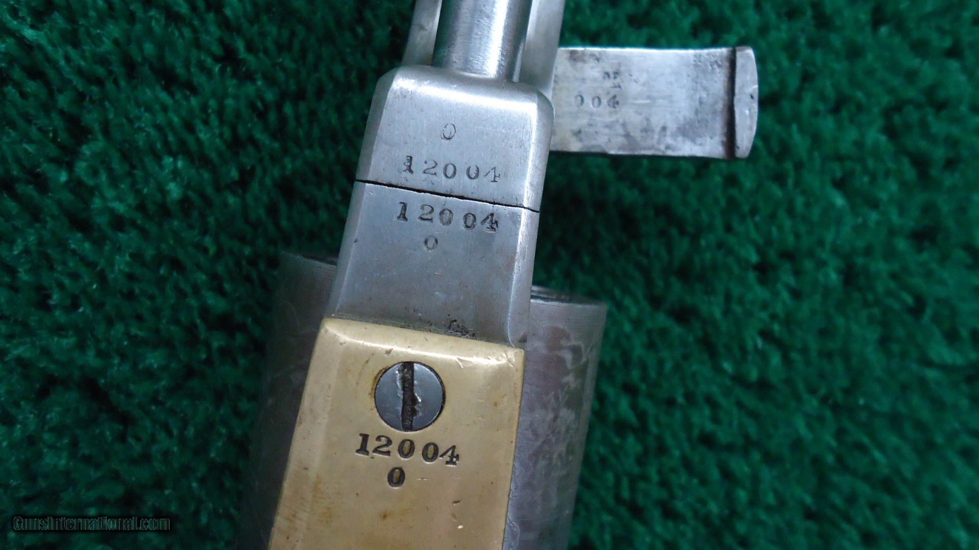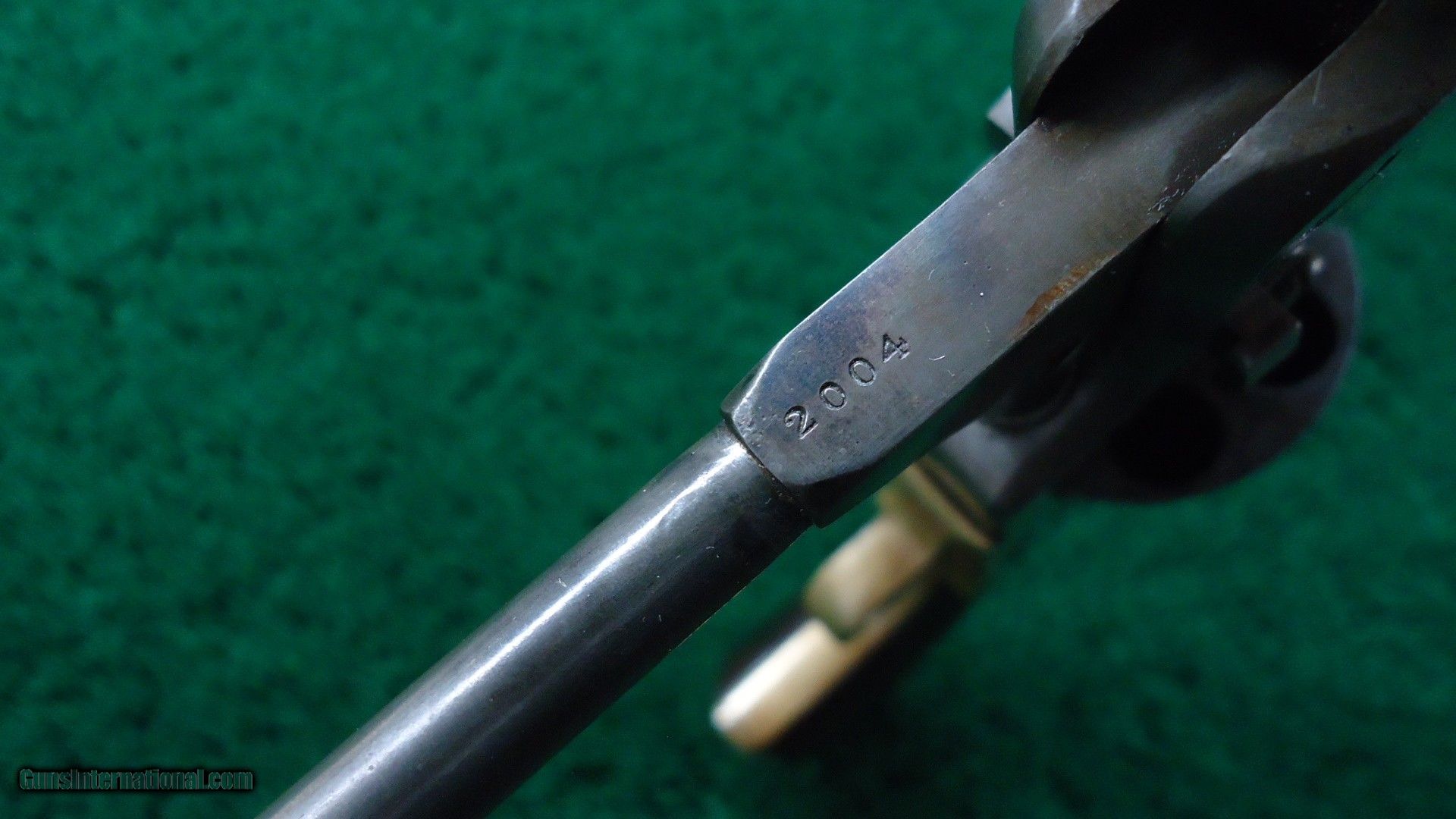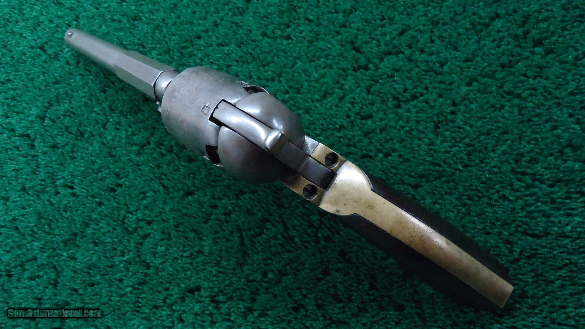 Description: 6 Shot Percussion Revolver with 7-1/2 inch round and part octagon barrel chambered in 44 caliber. Bore has gain twist rifling. Overall metal has been cleaned some time ago and has aged to a gray/brown patina. Good Texas Ranger and Indian fight cylinder scene. Brass backstrap. Nice action. Nice grips that appear to be original with a small piece grafted in on the right side. All matching numbers. These were made from 1851-1861. Leroy Merz Antique Firearms specializes in antique and vintage Winchesters and other fine American firearms. Since 1965 Mr. Merz has taken part in the world of firearms and has been a contributor to many well known reference books. We have hundreds of additional guns in every price range at our home online. Search for Merz Antiques in google. SOLD Antique: Yes Handgun Caliber: .44 |