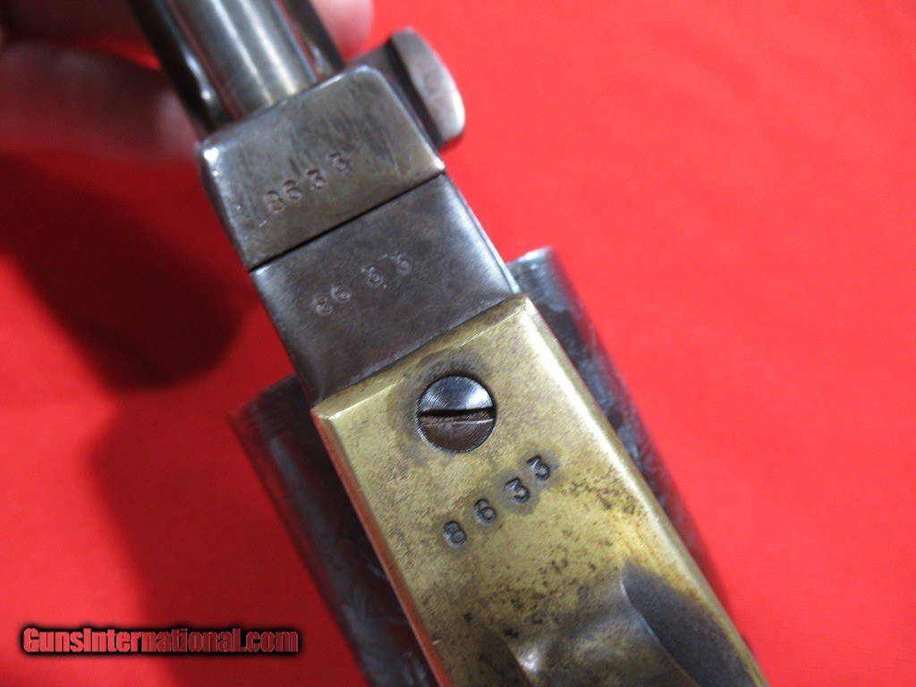 Description: 1850 Mfg Colt 2nd Model Dragoon: Appears to be in all original and very high condition for a 174 year old firearm. Appears to be an all numbers matching revolver. Cylinder indexes properly and is very clean, nipples are in great condition, bore is sharp. SOLD |