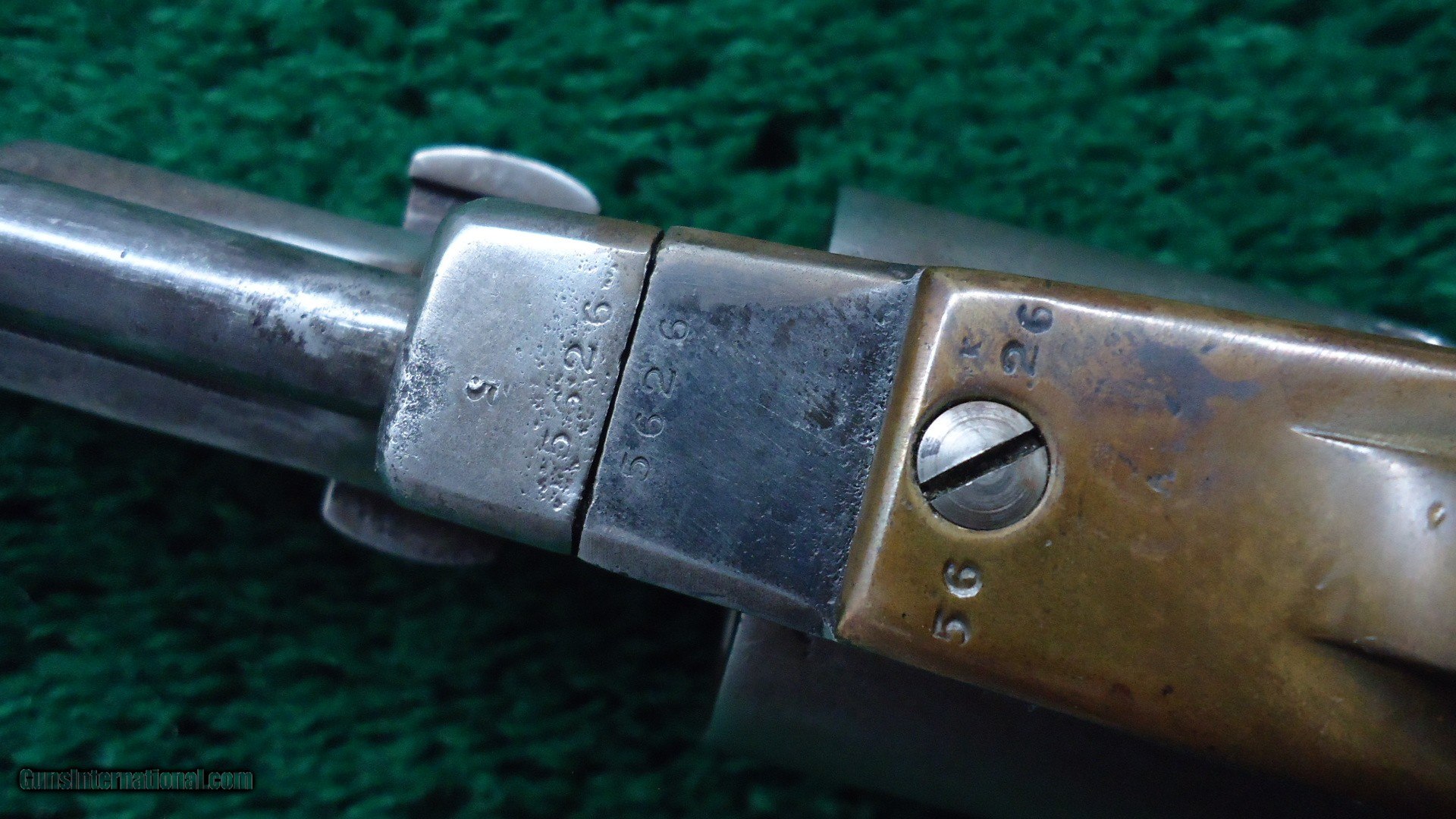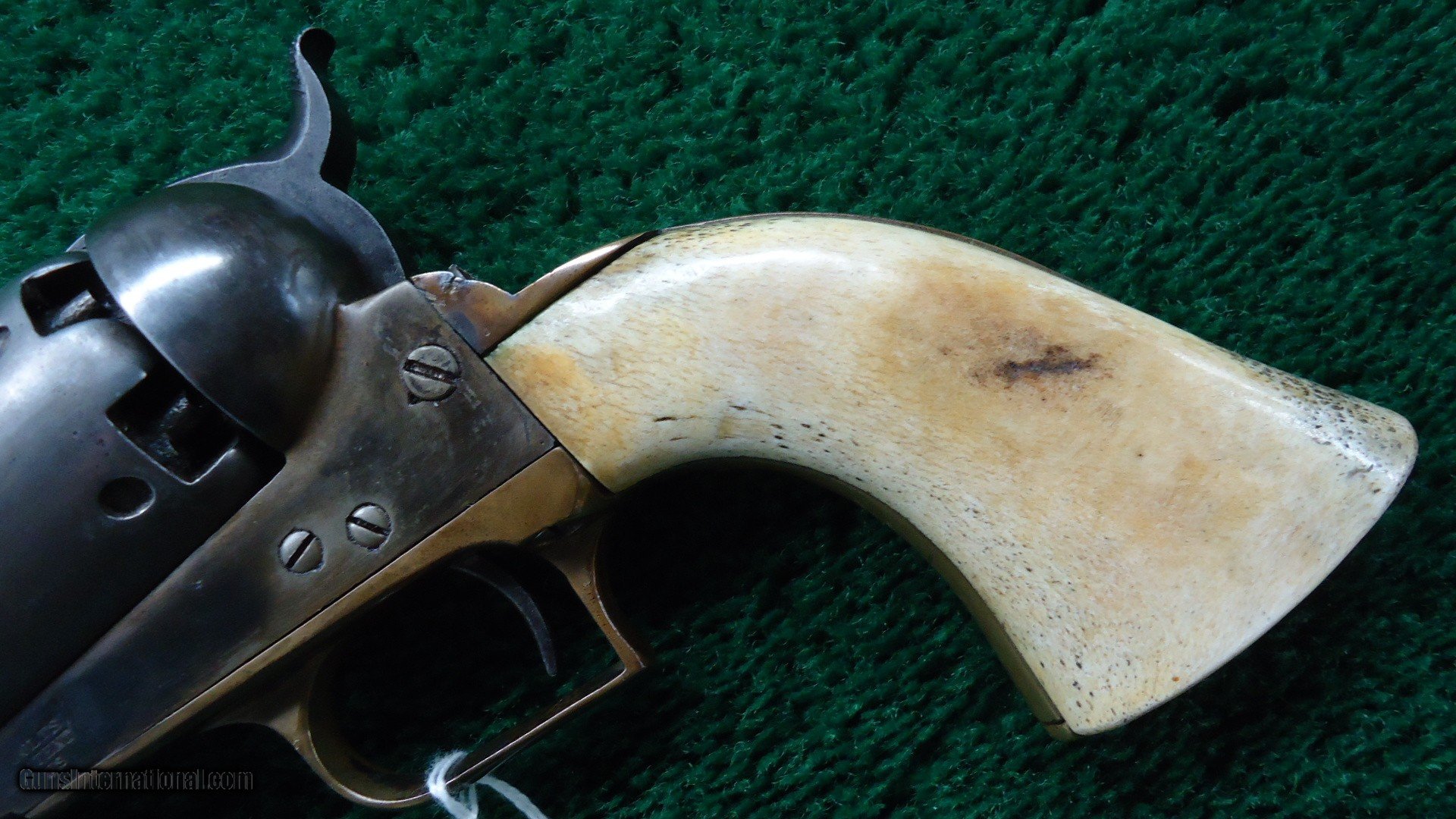 Description: This Dragoon has an excellent pair of bone grips that looked to be quite old. Metal is a light grey. Probably was cleaned some time ago. The numbers on the frame, barrel, backstrap and trigger guard all match. A replacement loading lever and lack of serial numbers on the wedge and cylinder. Mechanical condition is fair with a replacement spring that is a little stiffer than normally encountered. Overall the gun is just a light grey color. Not a bad looking gun. Comes complete with a lightly tooled of the period holster. Leroy Merz Antique Firearms specializes in antique and vintage Winchesters and other fine American firearms. Since 1965 Mr. Merz has taken part in the world of firearms and has been a contributor to many well known reference books. We have hundreds of additional guns in every price range at our home online. Search for Merz Antiques in google. SOLD Antique: Yes |