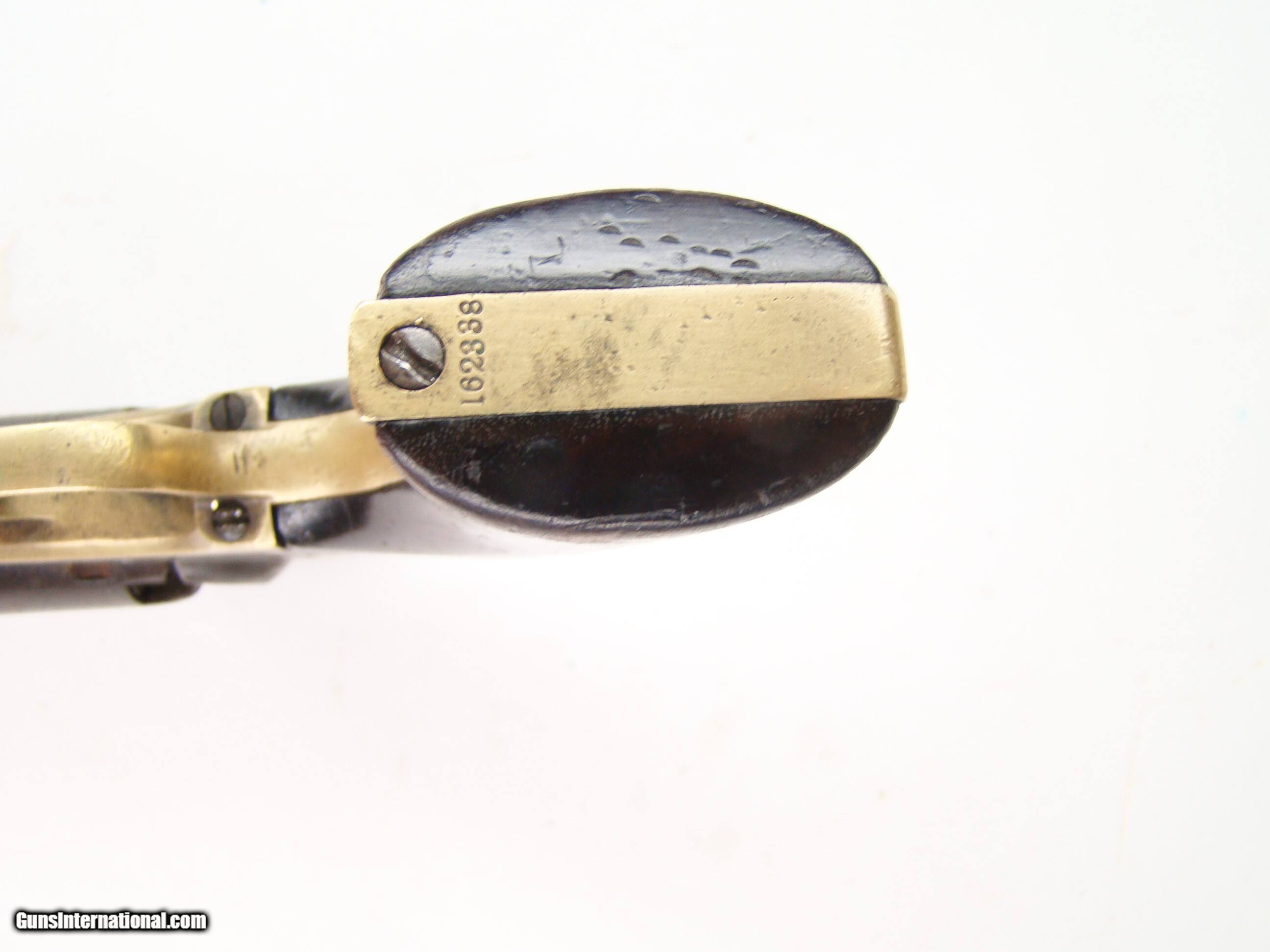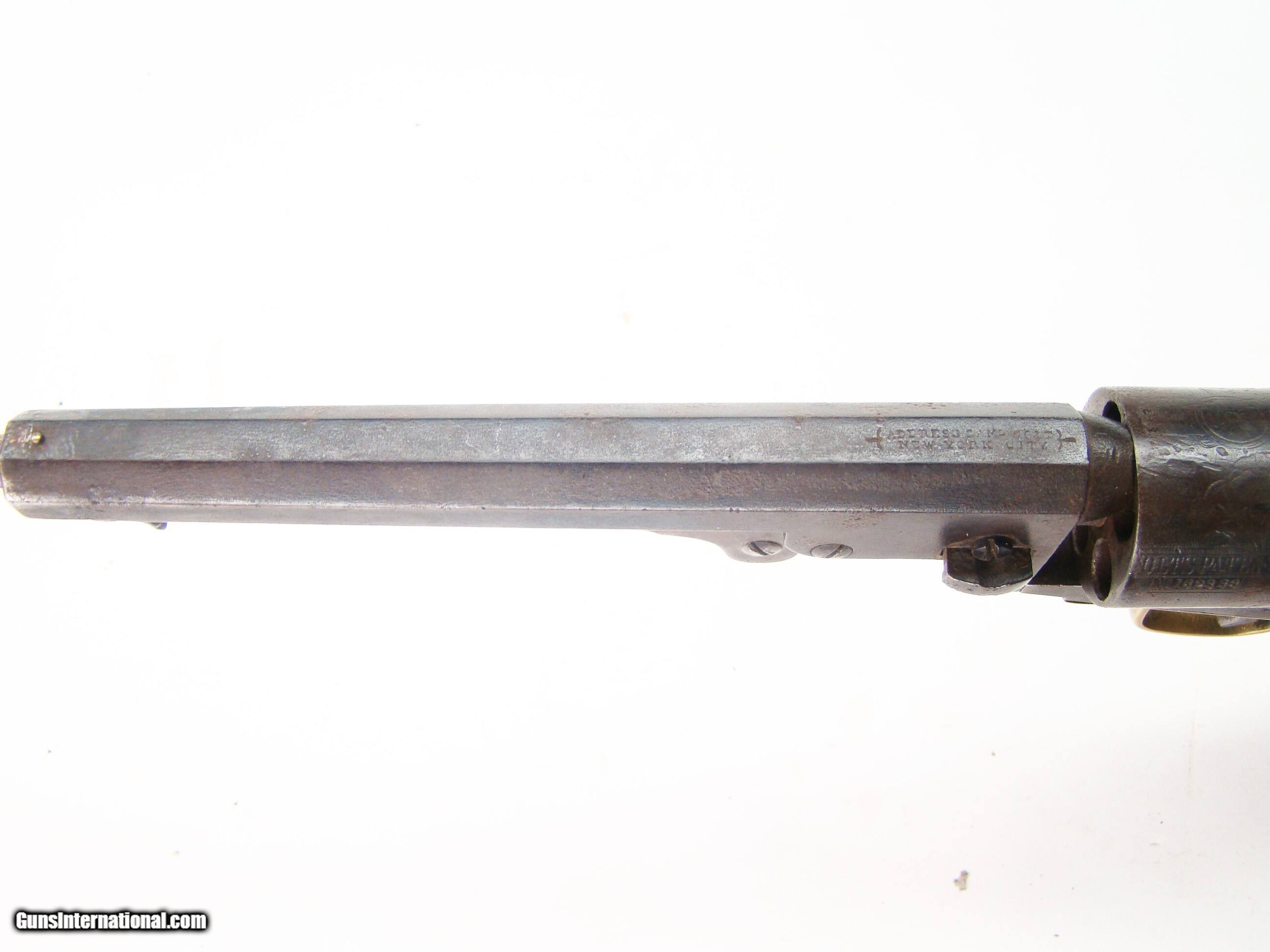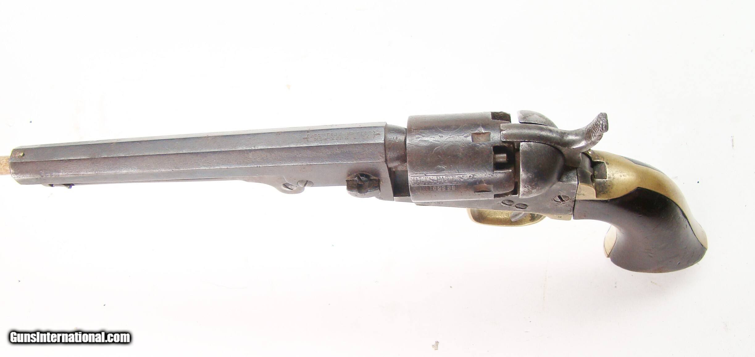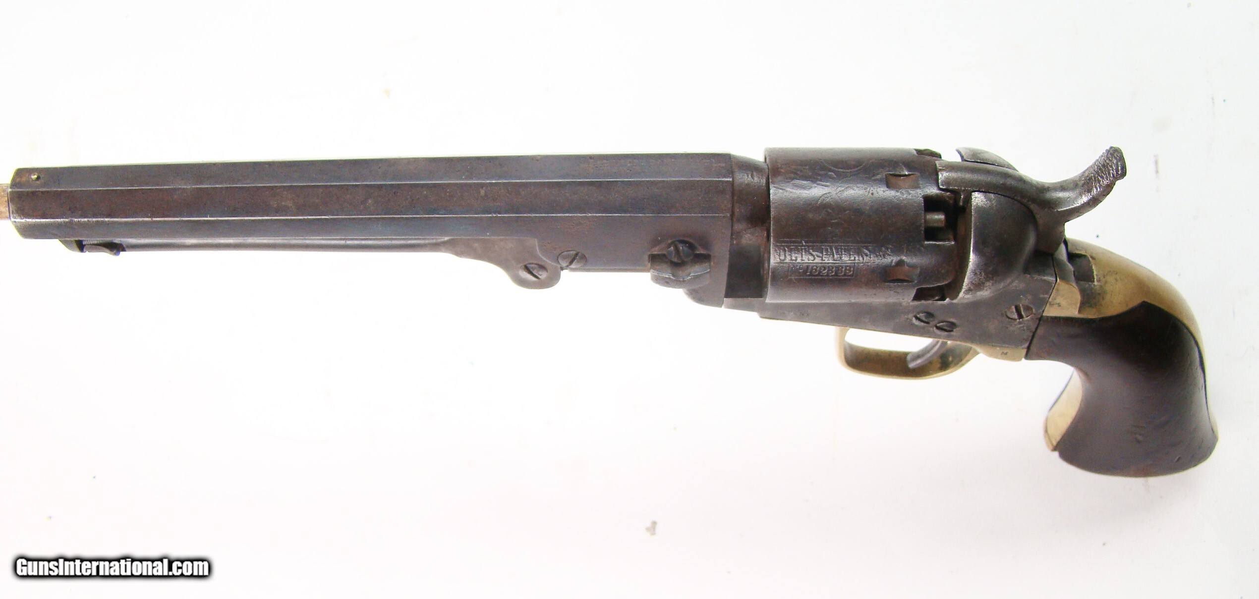 Description: Colt Model 1849 Pocket Percussion Pistol 6”bbl Mfg’d 1861 CIVIL WAR 31cal Bore VG, Mech Exc with tight lockup, Original wood grips with 75% original varnish. Has a 6” oct barrel with VG Colt address marking. The frame has the colts patent marking on the left side. The cylinder has 20% cylinder scene and matching serial#162338 Mfgd 1861. All numbers match including the wedge and ramrod. Metal overall has some fine pitting in areas ,a few dings on the cylinder showing it was used and has a dark aged patina finish.. The triggerguard has a couple inspector initials N and V on left side . Definitly Attic condition Antique: Yes Price: $995.00 Contact Seller |