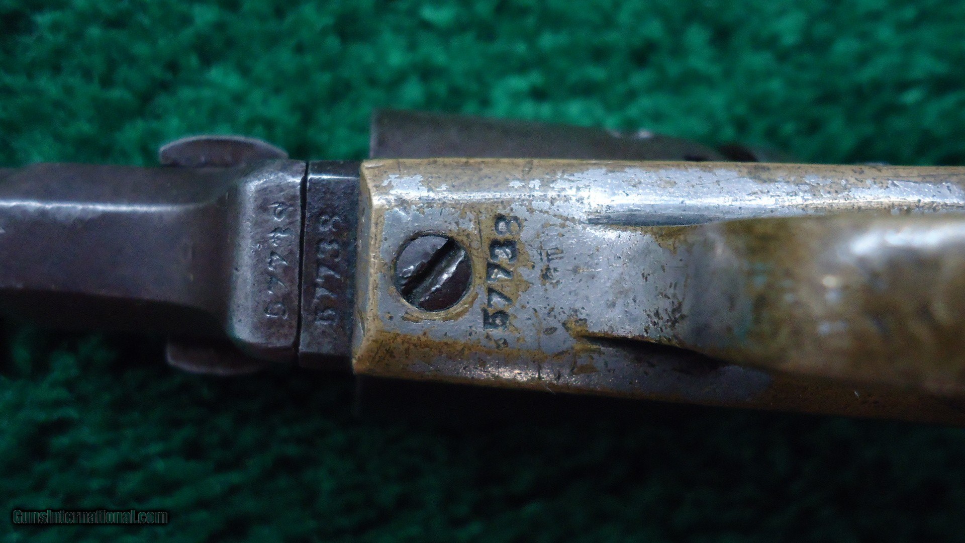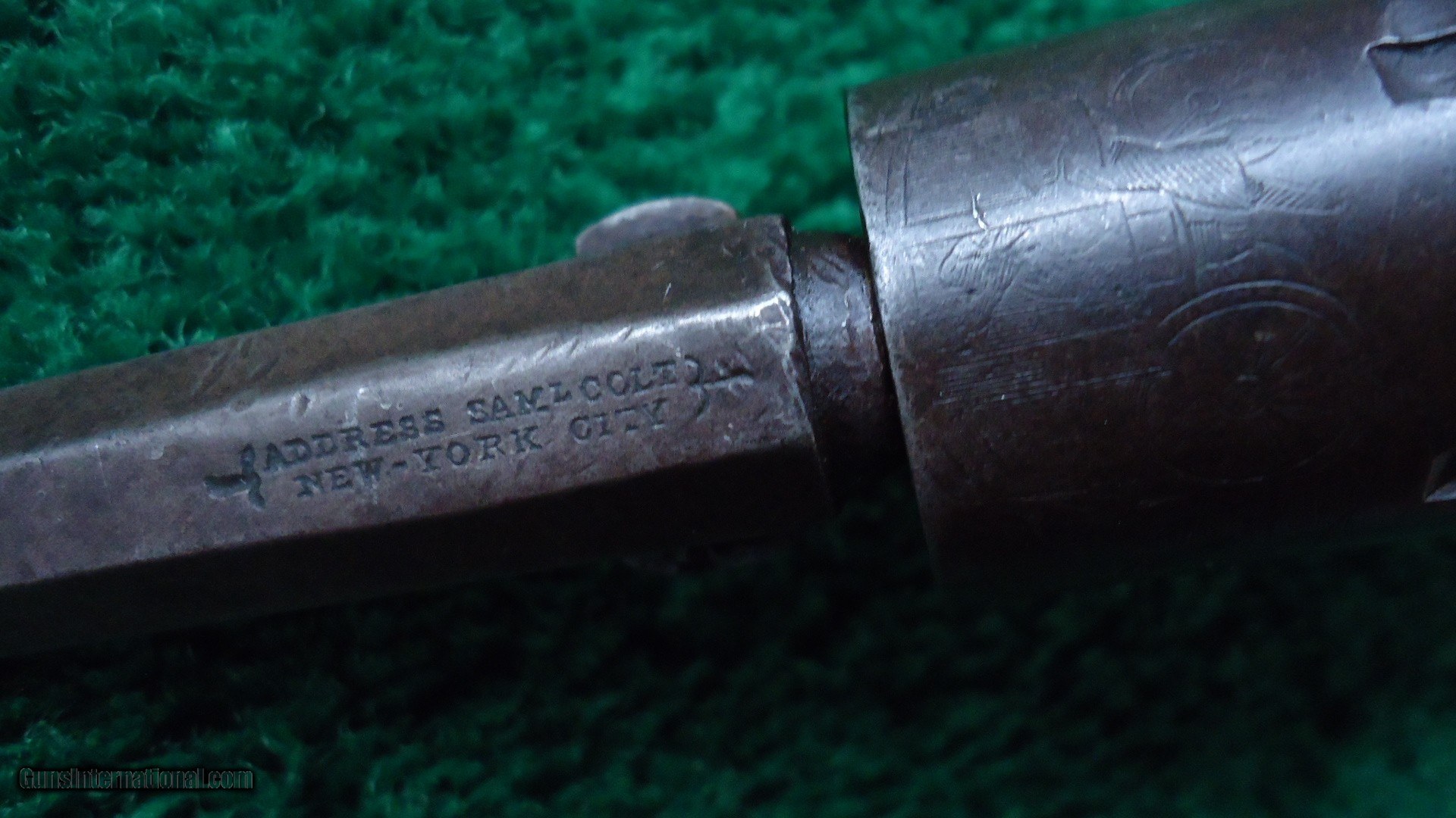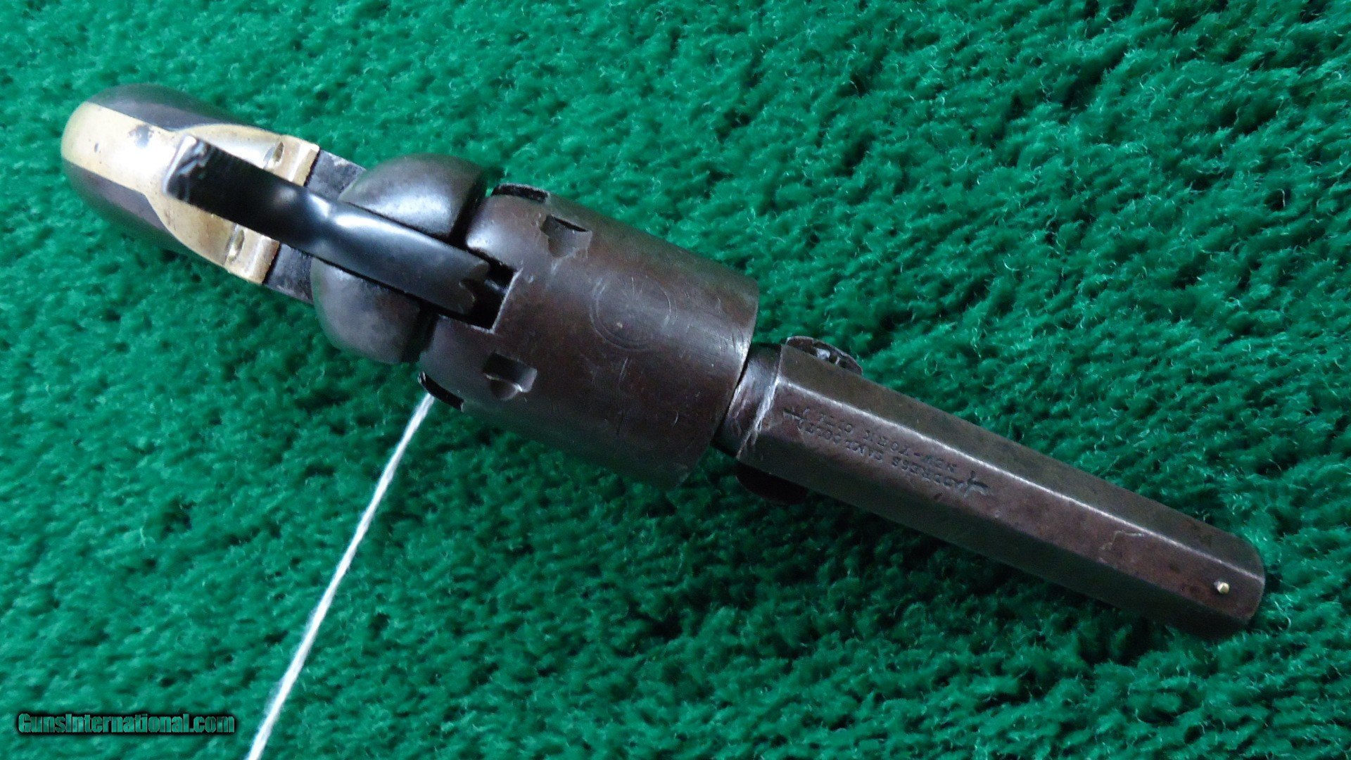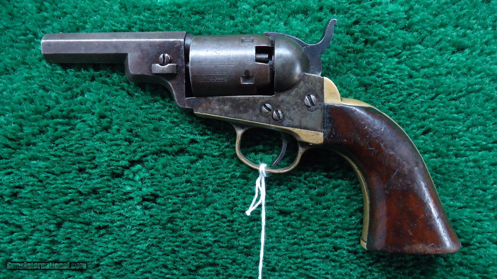 Description: Made without a ram rod. Interesting gun. It appears to have been together forever but there are several different numbers on it. Barrel and frame number are the same. Backstrap is another number and the cylinder yet another. This gun had to have been mis-matched 100 years ago because it looks to be all the same piece. Good traces of blue and case color. Good traces of original silver on the trigger guard. Correct 3 inch barrel. Cylinder retains nearly all of the scene. Good sharp little gun. Leroy Merz Antique Firearms specializes in antique and vintage Winchesters and other fine American firearms. Since 1965 Mr. Merz has taken part in the world of firearms and has been a contributor to many well known reference books. We have hundreds of additional guns in every price range at our home online. Search for Merz Antiques in google. SOLD Antique: Yes |