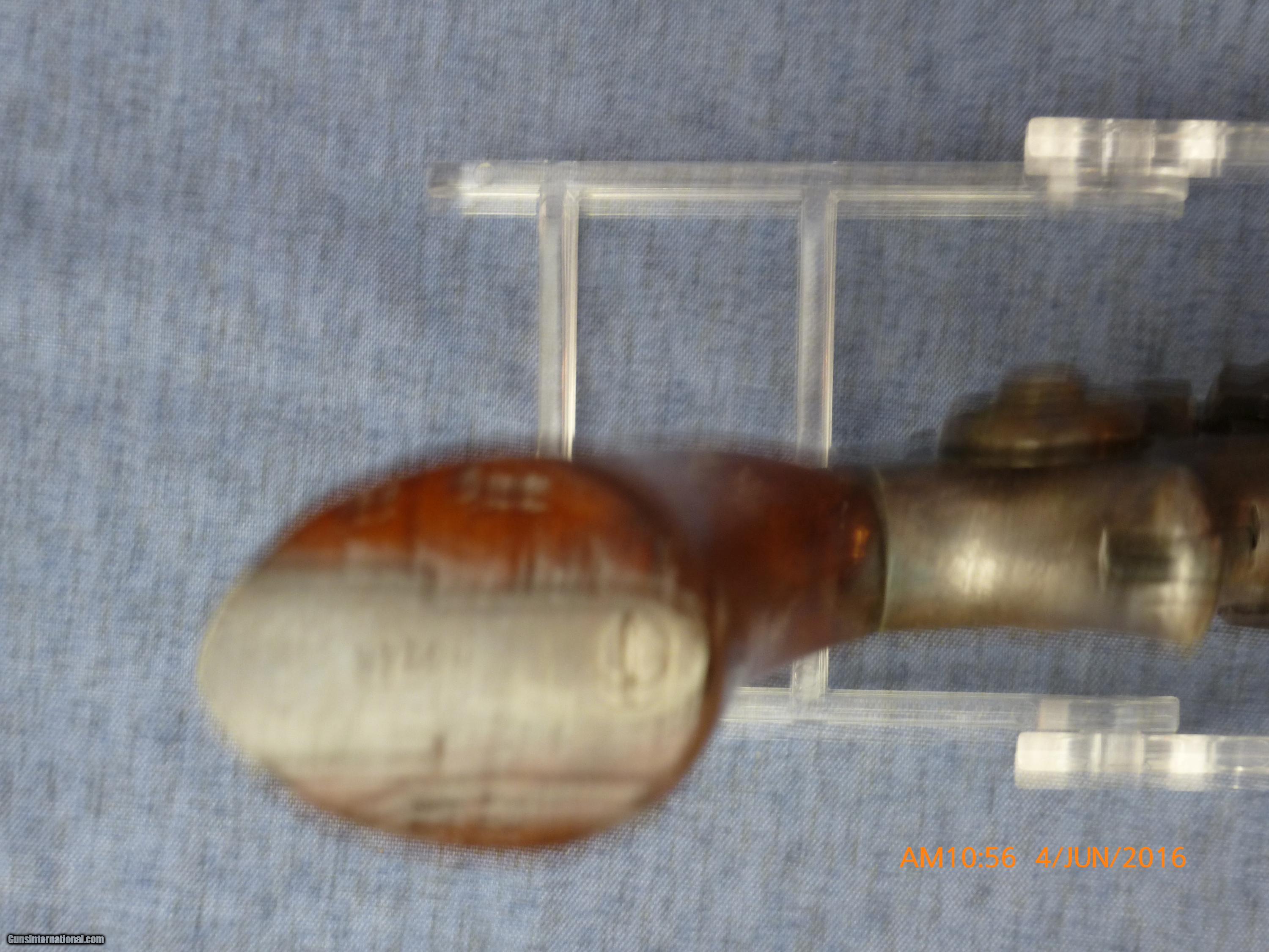 Description: Colt 1855 Model 3A-3 1/2” BBL, Hartford address. Serial #29248. Condition: fine plus condition. 60% Bright Blue Finish on frame; BBL & cylinder. Grips have 95% original varnish, works fine mechanically. A really nice, fine +/ excellent condition Colt Root for the advanced collector who wants the best. (16-56) $1800.00 Model 1855 Sidehammer Pocket Revolver. Most commonly known among collectors as the “Root Model” after Elisha K. Root, the noted Colt designer (although Samuel Colt himself actually was the inventor of this model). Entered into production in 1855 and discontinued c. 1870. Made in two distinct serial sequences, with the total quantity approximately 40,000. The model was Colt’s only percussion handgun build on the solid frame principle in contrast to the firm’s standard design of barrel and cylinder which are readily removable from the frame. Other features permitting the quick identification of Model 1855 pistols are the hammer mounted on the right side of the frame, the spur trigger, the cylinder pin’s entry into the frame from the rear, and the “wraparound grip” secured to the backstrap (no trigger guard strap is present SOLD Antique: Yes |