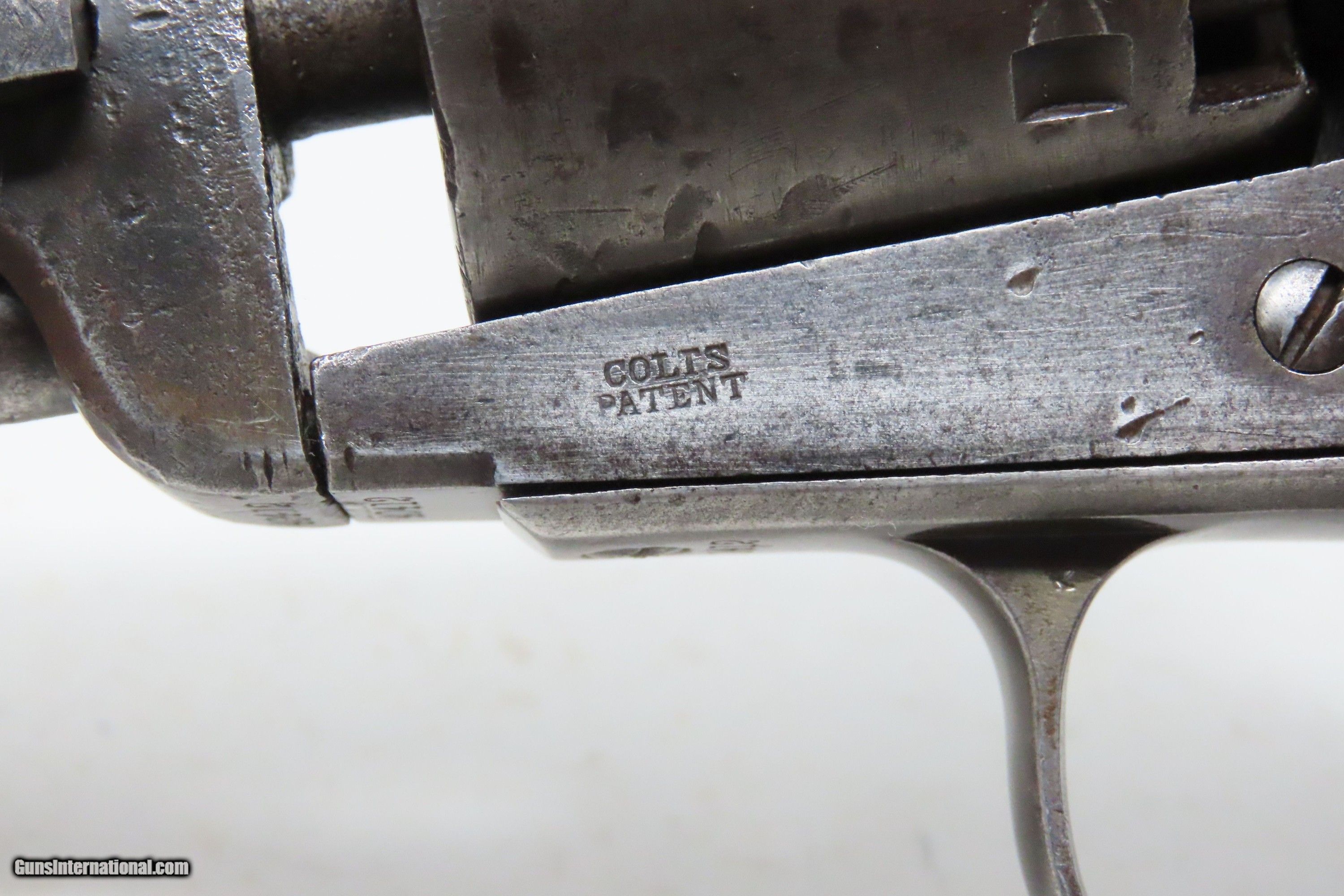 Description: CRIMEAN WAR Antique COLT LONDON Model 1851 NAVY .36 PERCUSSION Revolver BRITISH PROOFED with LONDON BARREL ADDRESS Here we present an antique British Proofed Colt Model 1851 Navy Revolver with the London barrel address, made circa 1855 in London, England. The U.S. Hartford factory was firmly established, and sales were exceedingly good for Samuel Colt. So, Colt's thoughts began to drift towards his possible share of the English gun market, and in 1853 he established a factory in London which produced thousands of examples of this model for the British forces in the Crimean War. The London factory closed in 1856. The 1851 Navy was one of Colt’s most famous and successful lines, reaching a production total of 257,348 from 1850 to 1873 (right up to the time of SAA production) from both Hartford and London factories. From Hartford alone, 185,000 were made by the end of the American Civil War. Many of these saw service during the conflict on both sides. The overall condition is very good. Dark patina throughout. The action is excellent. The bore is in good condition with strong rifling. The grip is solid. Numbers match. Own the original! This is a legitimate antique and not a reproduction. Barrel is 7-1/2 inches. Caliber: .36 Percussion Overall condition as seen in photos. Very Fast. Very Safe. FREE SHIPPING WORLDWIDE. Delivered directly to your door by express mail! Guaranteed AUTHENTIC & Includes CERTIFICATE OF AUTHENTICITY. ancestryguns $2800 #240094 SOLD Antique: Yes |
