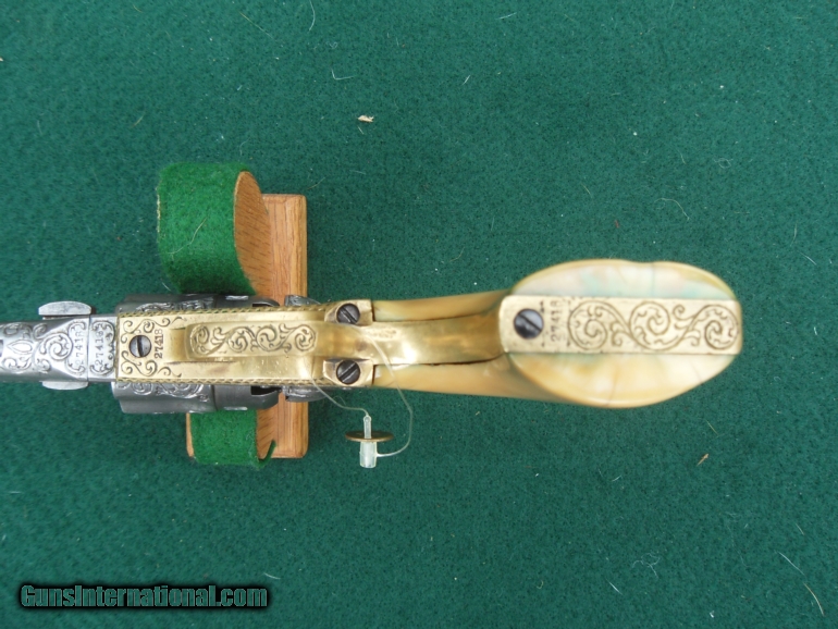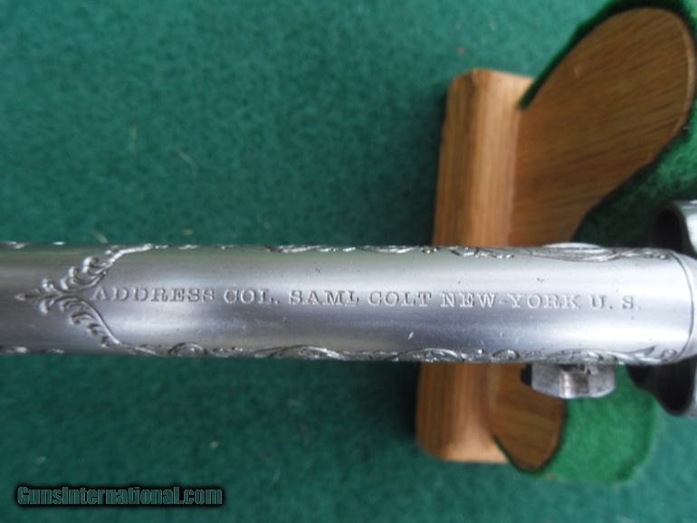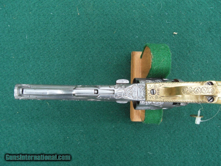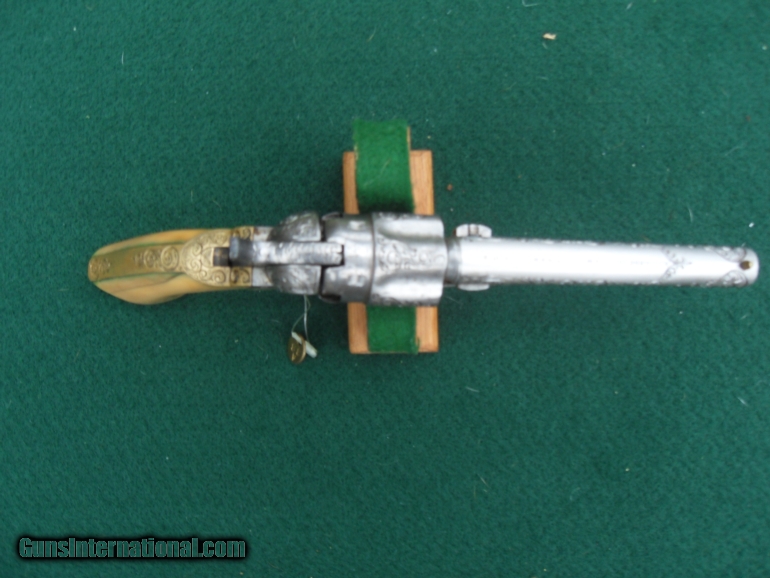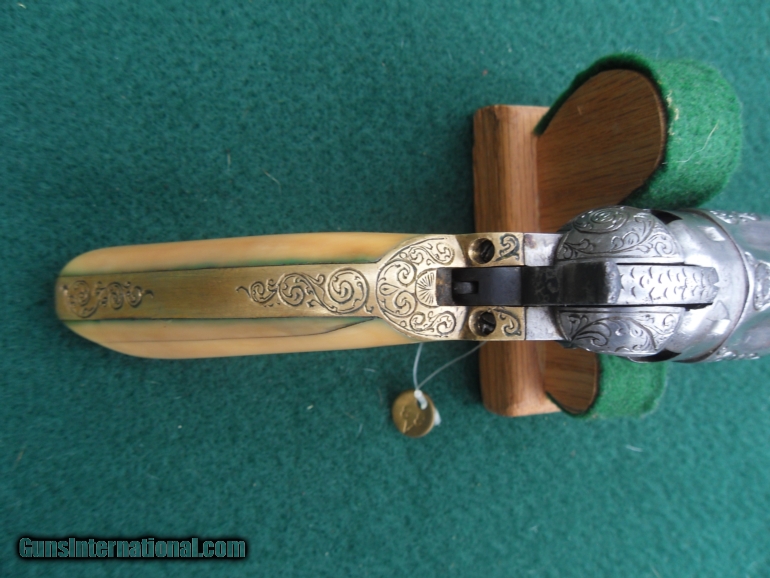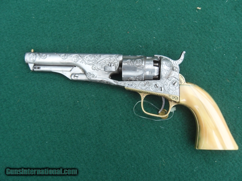 Description: Colt Model 1862 Police engraved revoler in 36 caliber 5 shot with a 4 1/2 inch barrel and half fluted cylinder. Ivory grips and completely engraved made in 1864. In very good working condition and looks like if wasn't fired very much. SOLD Antique: Yes |