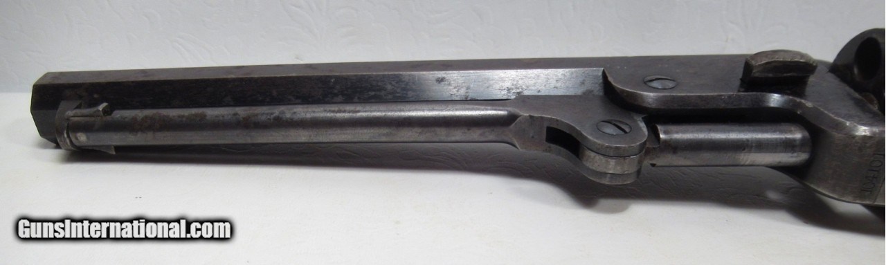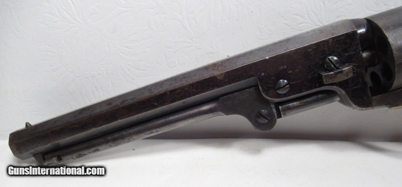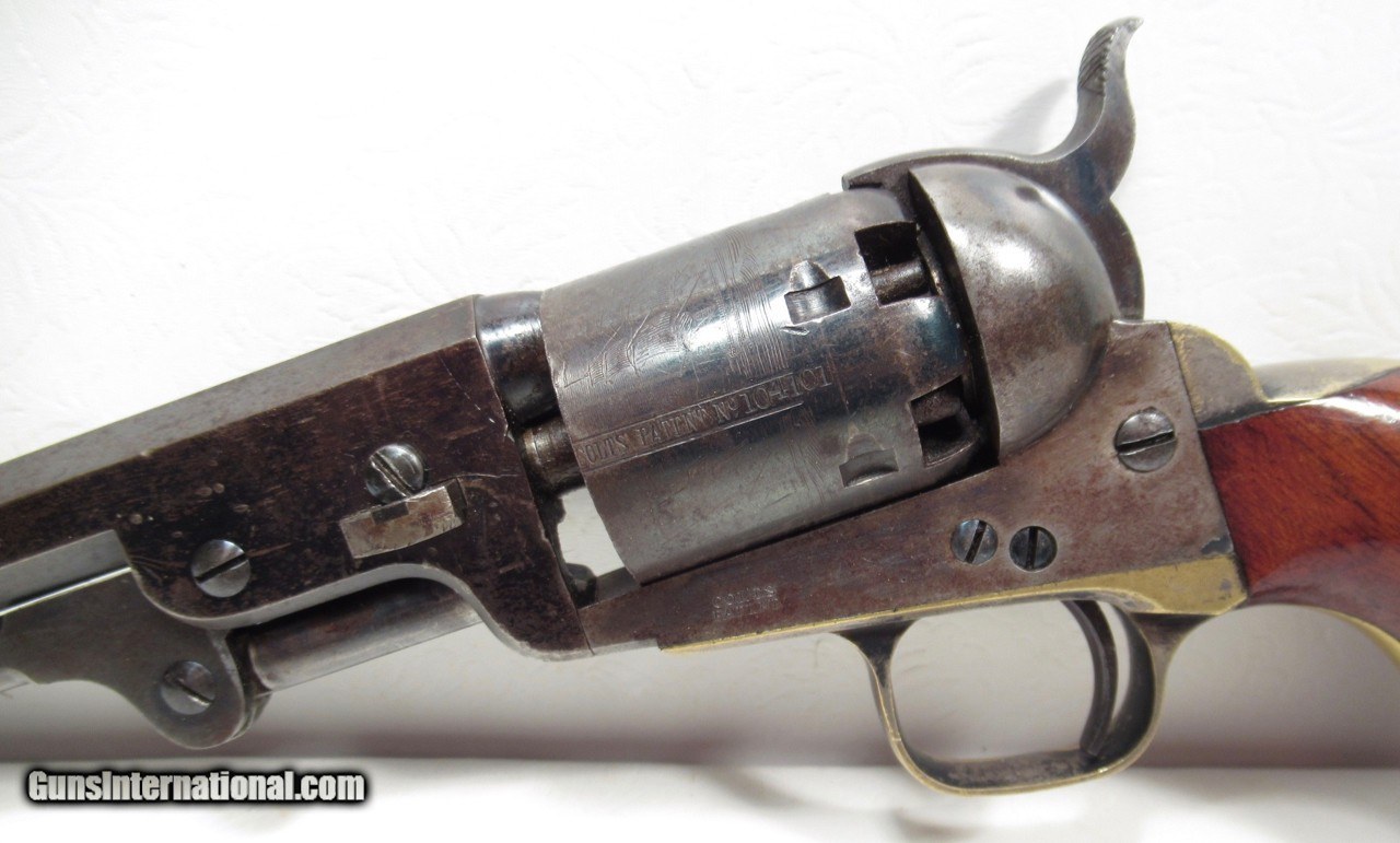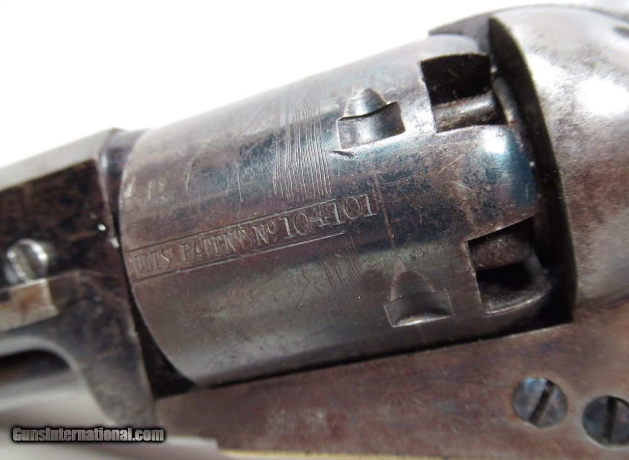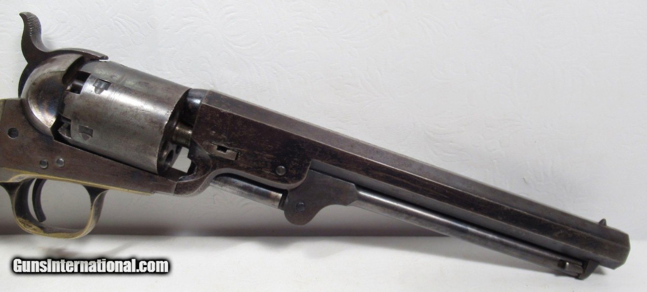 Description: Colt Model 1851 Navy Revolver; Serial No. 104101; .36 Caliber; 7 ½” Barrel; Blue Finish; Factory Letter Indicates a May 8, 1861 Shipment to Cooper and Pond of New York, NY; Most of the Original Metal Finish Remains; Fantastic Wood Grips with Nearly All Original Varnish Present; Excellent Action and Bore; 100% Correct, Original, and Matching; Great 160 Year-Old Colt 1851 Navy Revolver; See All Photos for Condition; No Texts. Call or Email Only; PERSONAL PROPERTY of Harold Wieser; Price: $7,975 + $45 S&H Via FedEx Express; PLEASE DO NOT SEND PAYMENT THROUGH U.S. POSTAL SERVICE; Price includes insured shipping; return policy: three days inspection from the date the item is received; full refund of shipping both ways ONLY IF THE ITEM IS MISREPRESENTED. EMAIL collectingtexashotmail. com PAYMENT ADDRESS- HAROLD WIESER-1466 US HWY 77-ROSEBUD,TEXAS 76570 SOLD Antique: Yes Manufacturer: Colt Model: 1851 Navy Serial Number: 104101 |