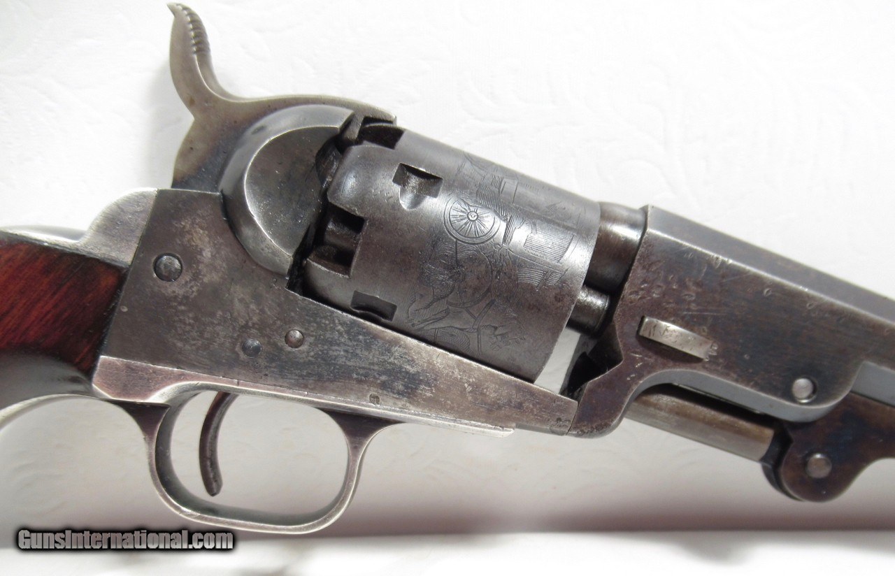 Description: Colt 1849 Pocket Model; Serial No. 76889; Made 1853; 6” Barrel; 31 Caliber; Colt Retains Nearly All Original Metal Finish; Grips Retain Nearly All Original Varnish; Perfect Action and Bore; 100% Correct, Original, and Matching – Including Wedge; In Very Interesting Case with Old Label on Lid “Hands Off!! Loaded Pistol…” – Perhaps Held at Bank, Store, Etc.; Unique 168 Year-Old Colt; Hard to Improve On!; See All Photos for Condition; No Texts. Call or Email Only; PERSONAL PROPERTY of Harold Wieser; Price: $12,795 + $45 S&H Via FedEx Express; PLEASE DO NOT SEND PAYMENT THROUGH U.S. POSTAL SERVICE; Price includes insured shipping; return policy: three days inspection from the date the item is received; full refund of shipping both ways ONLY IF THE ITEM IS MISREPRESENTED. SOLD Antique: Yes Manufacturer: Colt Model: 1849 Pocket Serial Number: 76889 |