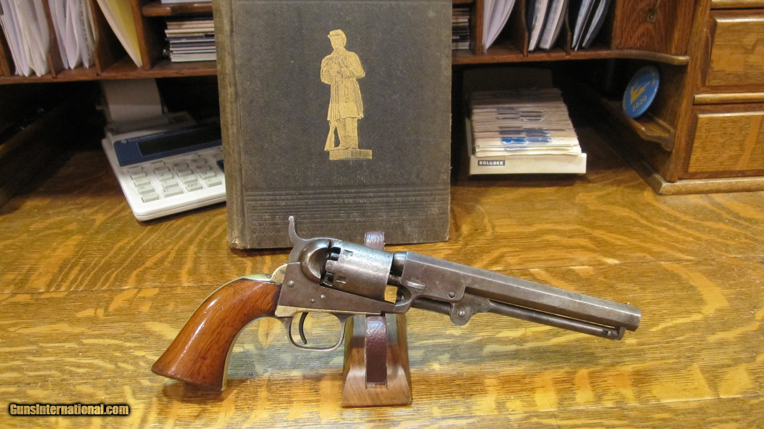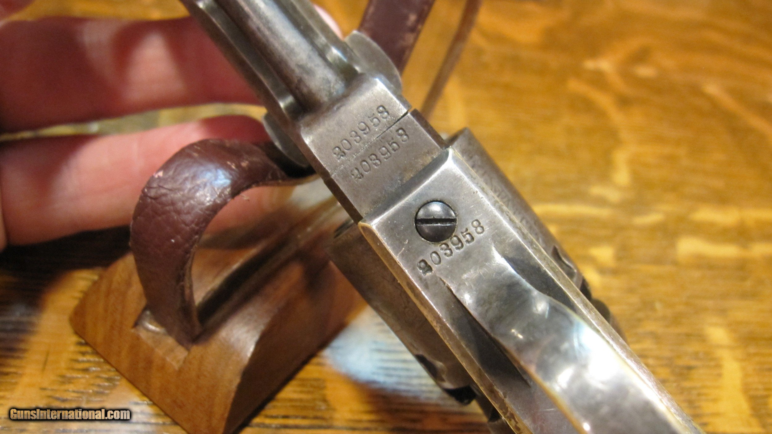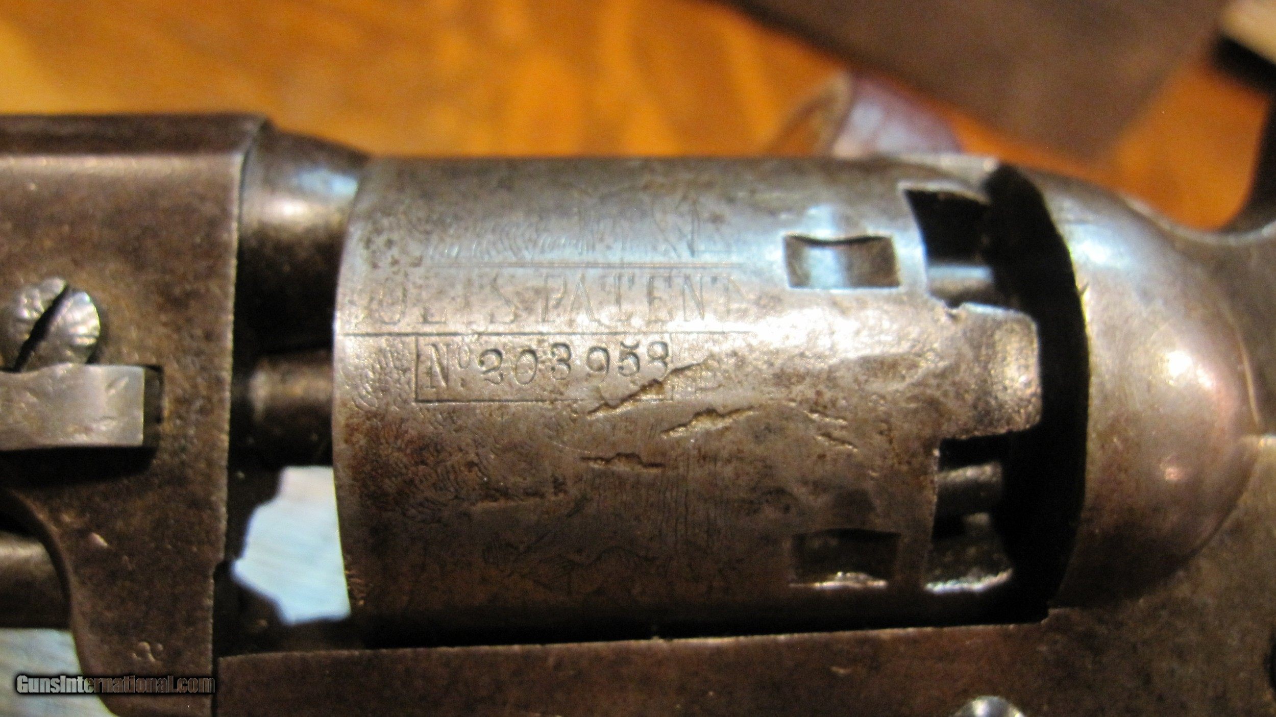 Description: "THE HARTFORD-HARTFORD".Colt 1849 6" Pocket Revolver. .31 Cal. Desirable Hartford barrel address.Very rare variation of the 1849 Pocket. Out of about 340,000 examples made, only about 620 had 6"barrels, in six shot (instead of 5), and the 2 line Hartford Address. Serial #203958. Manufactured in 1861. Inscribed to Corp. Gabriel B. Hartford of the 18th Connecticut Infantry KIA at Snickers Ford, Va. 18 July 1864. Hartford enlisted on 18 July 1862, exactly 2 years prior to his death. He was also captured on 15 June 1863 at Winchester, Va. Paroled a month later. Gun is all original. No original finish remains, just a beautiful natural patina. You'll love it! Has some silver left on trigger guard and backstrap. Most original varnish on grips. Action is fine. Gun was featured in the September 1980 issue of THE GUN REPORT. This is right after it was discovered by Tom LoPiano Jr. in Connecticut. Comes with a binder of military and pension records. Also an original copy of the 18th Connecticut Regimental. Thats rare! KIA inscribed revolvers are pretty scarce. Please call 973-214-3407 with questions SOLD Antique: Yes |
